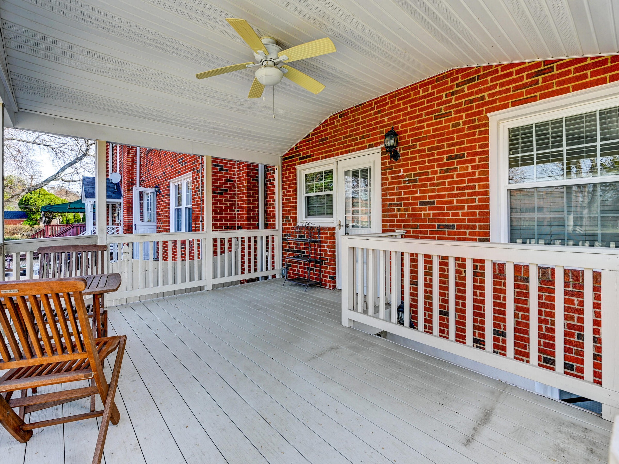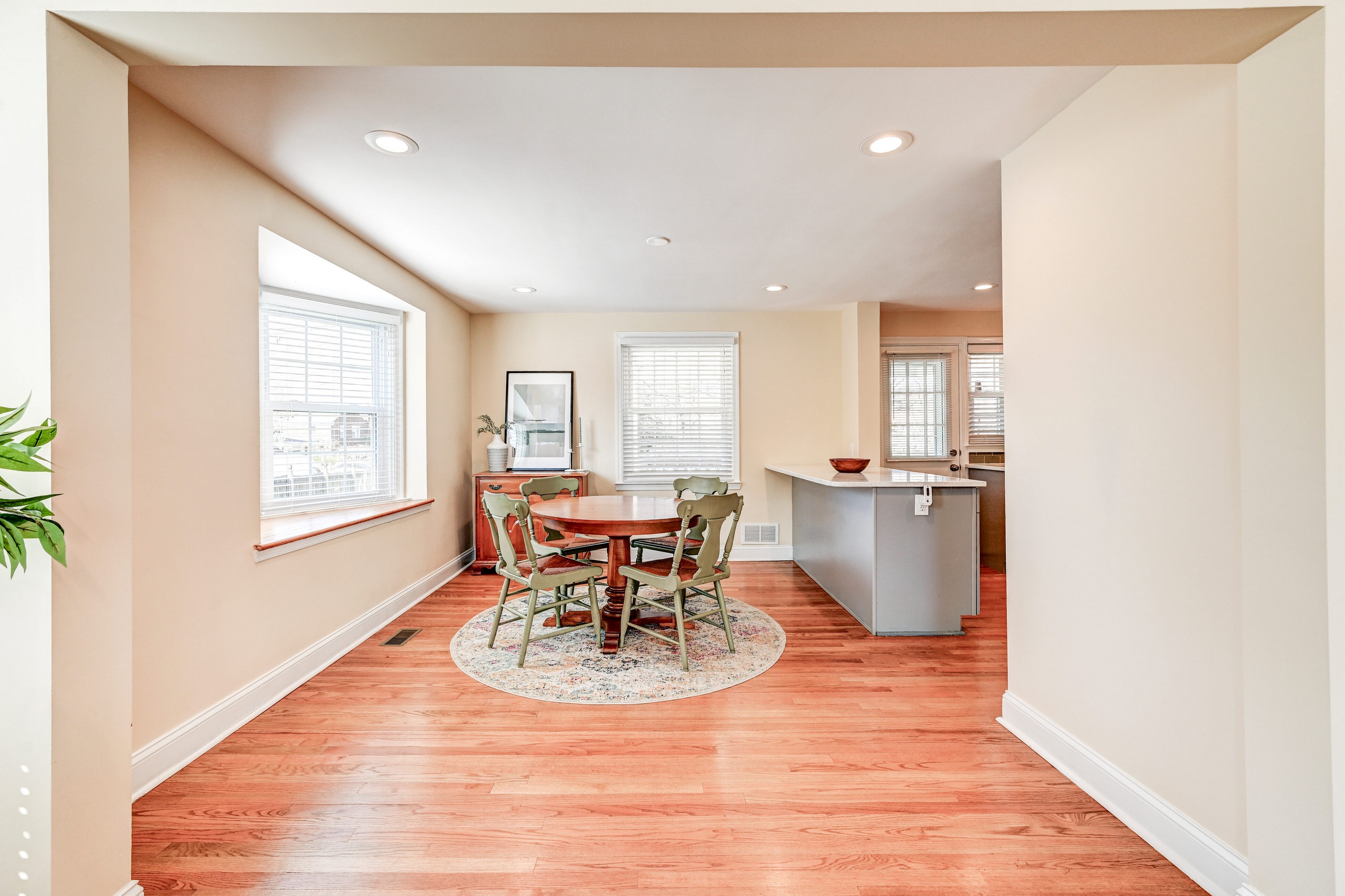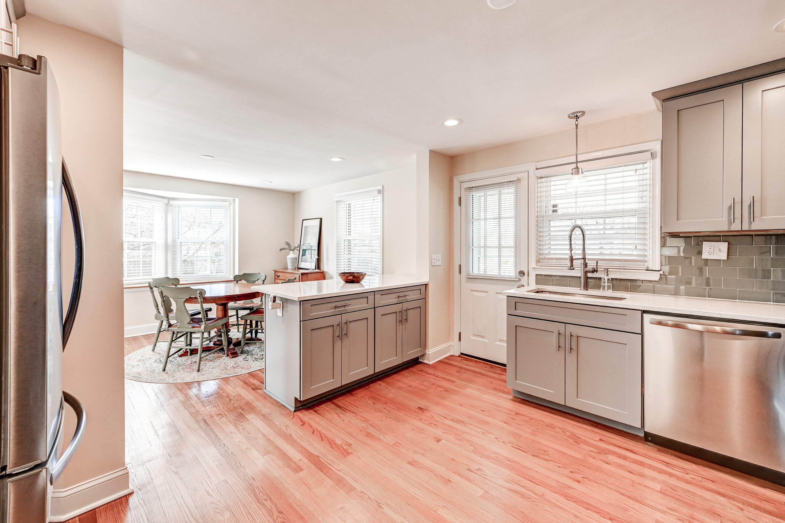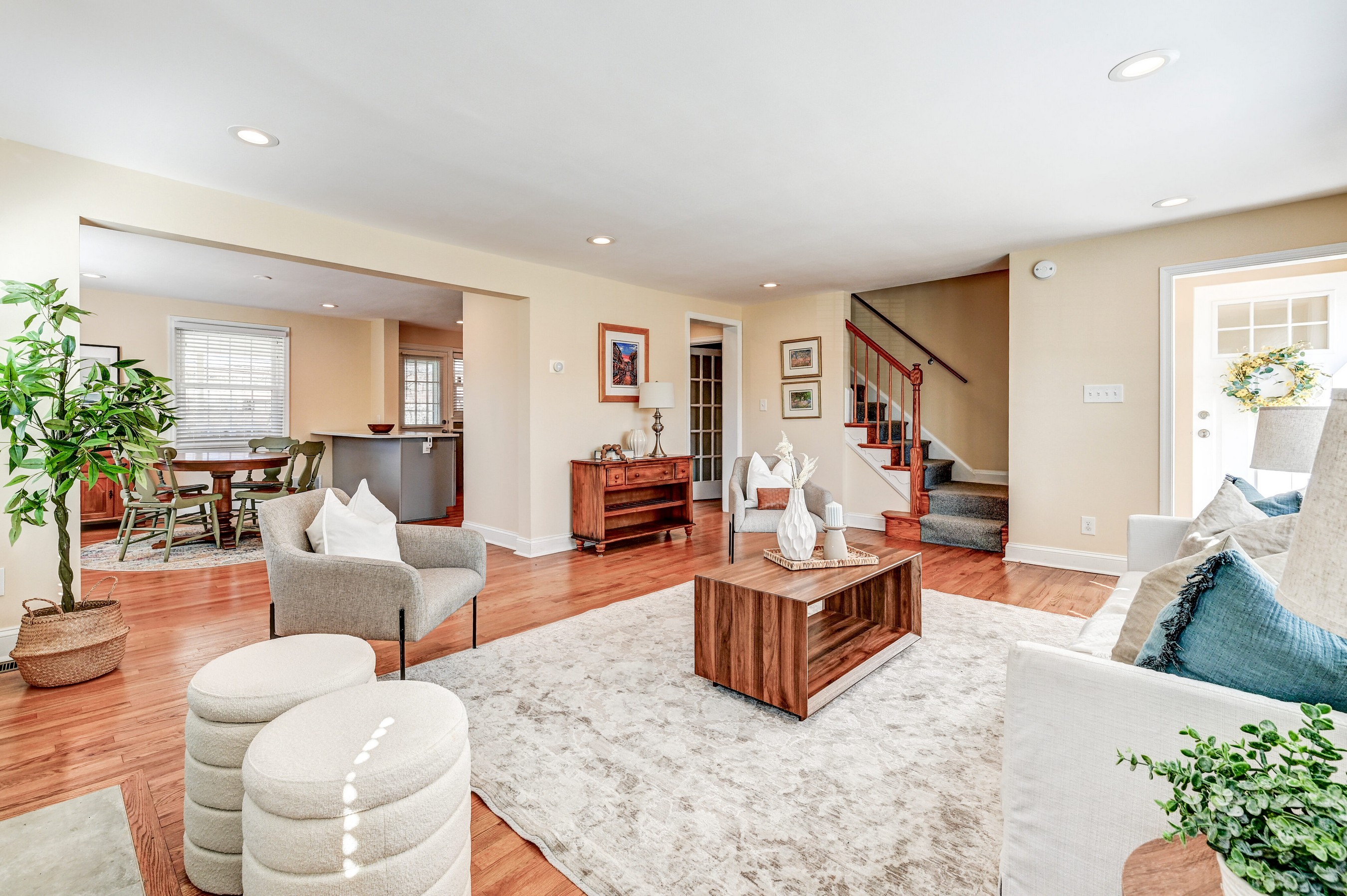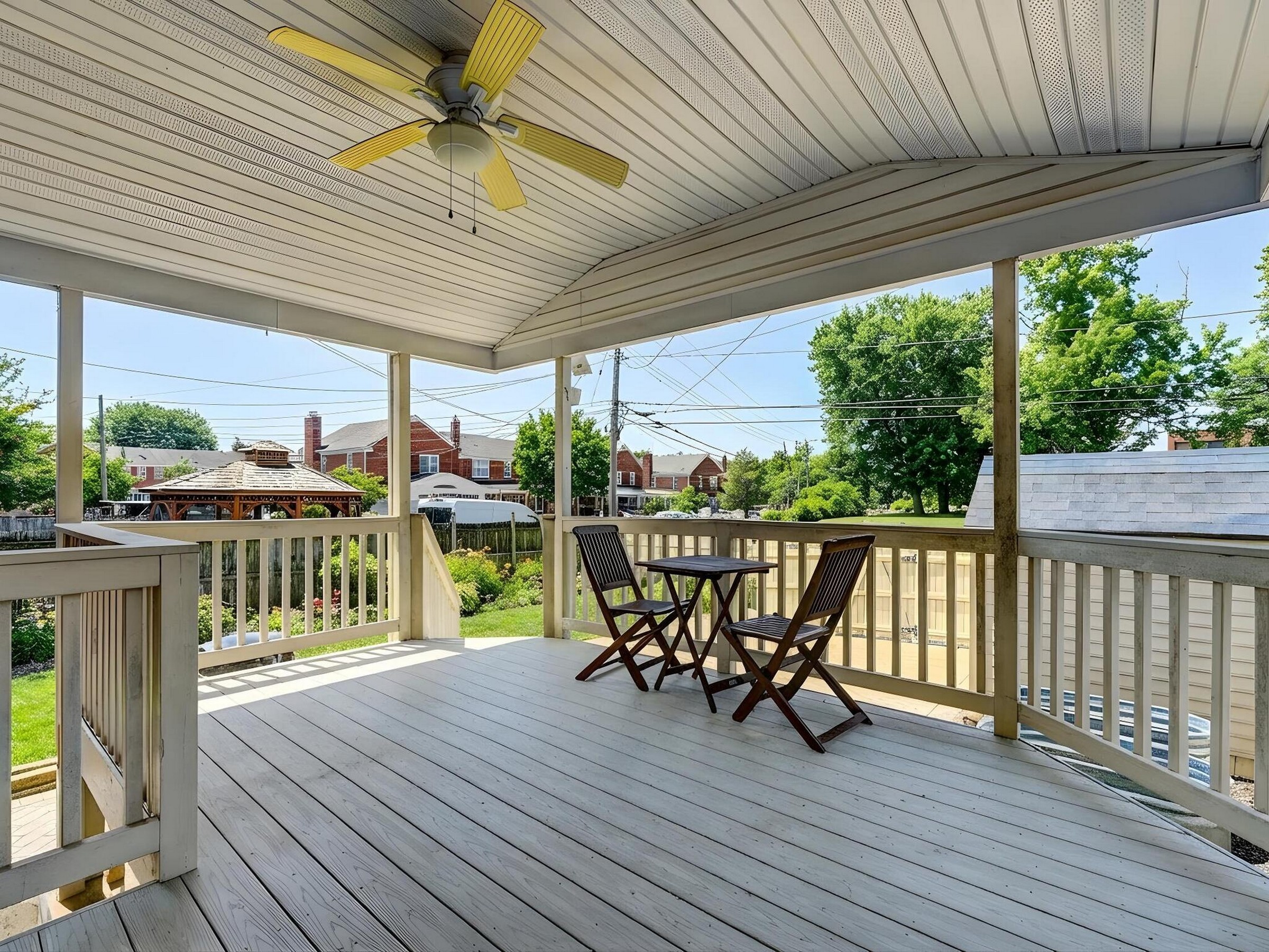 Completely Renovated in 2017, Very well maintained. Exceptional End of Group, Threee Bedrooms, 2 full bathrooms, open kitchen, and inviting living room opens into light filled dining room, with side bay window. Freshly Painted, Bright, clean and beautiful! Gleaming hardwood floors on the main level, and upper level. Full Finished Basement. .Kitchen includes quartz countertops, allowing extra seating space, under cabinet lighting, glass back splash, built-in Pantry, glass pendant lighting over sink, recessed lighting. From the open kitchen, step out onto the Large covered low maintenance Trex deck off the kitchen with ceiling fan. Hardscaped patio off of rear deck, Storage Shed within the Private fenced in back yard, garden space, beautifully landscaped with mature plants and dog wood tree. A second shed is large enough to store a lawn mower. New roof, HVAC, Hot Water Heater 2017, Replacement windows 2020, New Exterior Door 2025, New Carpet,!