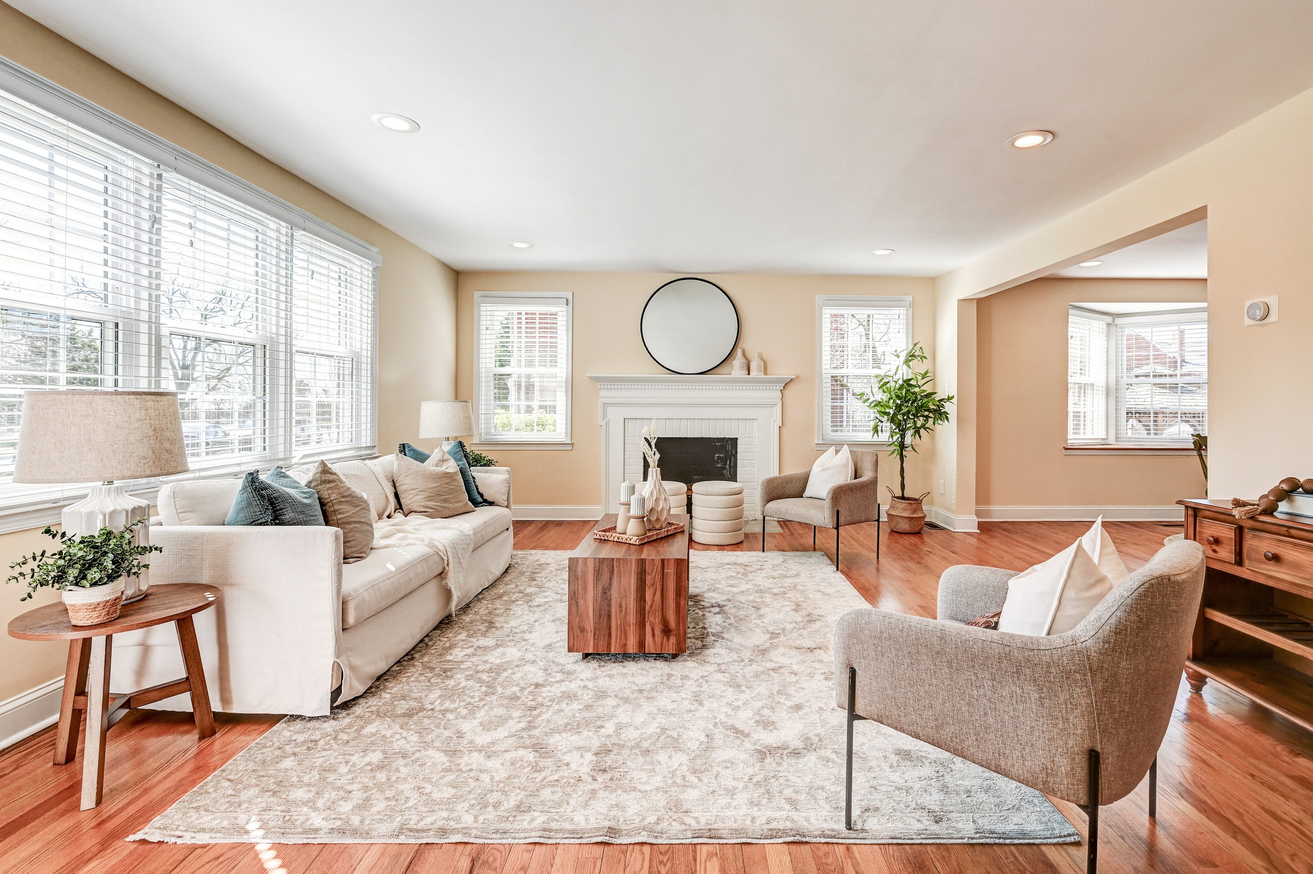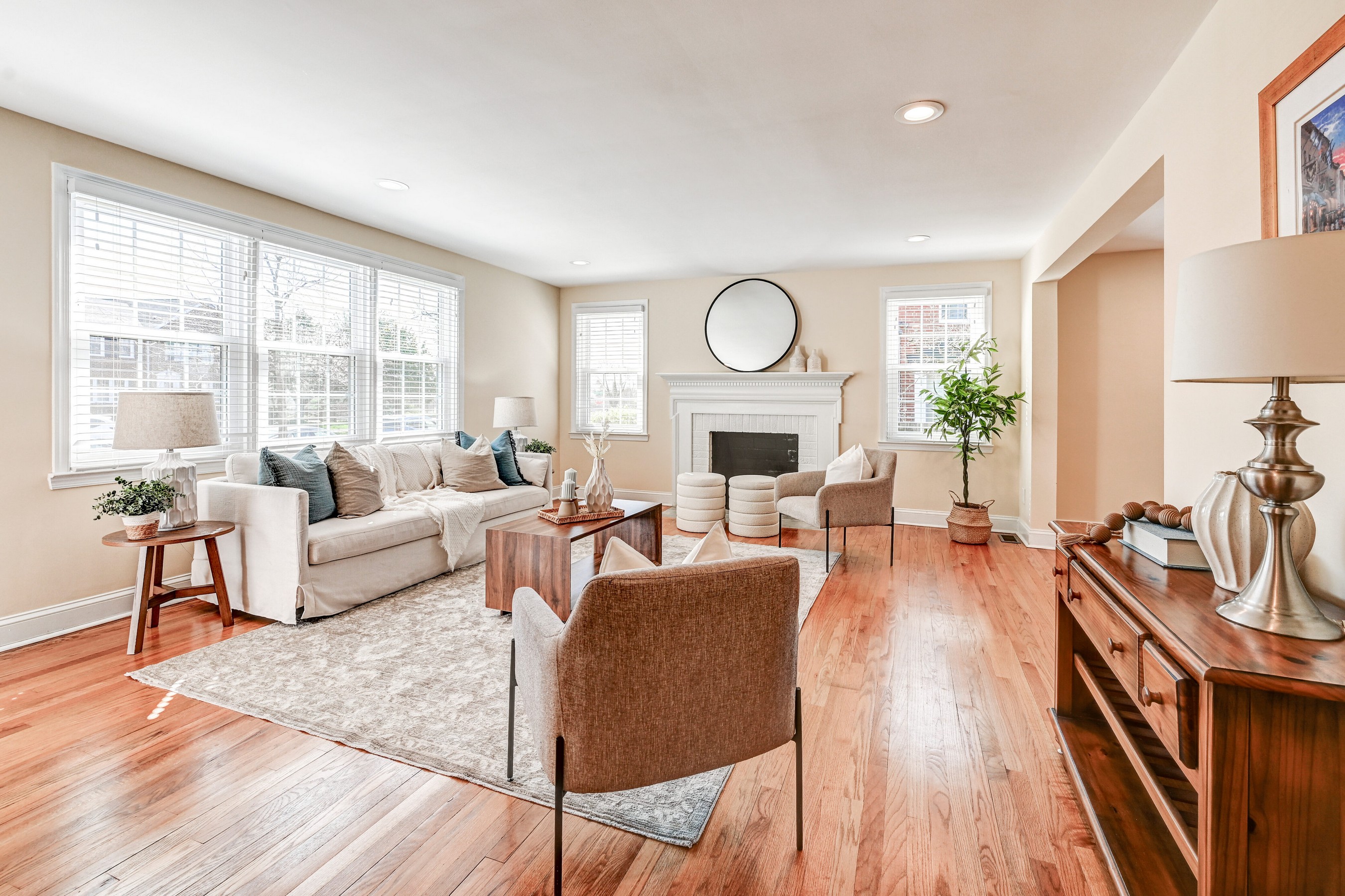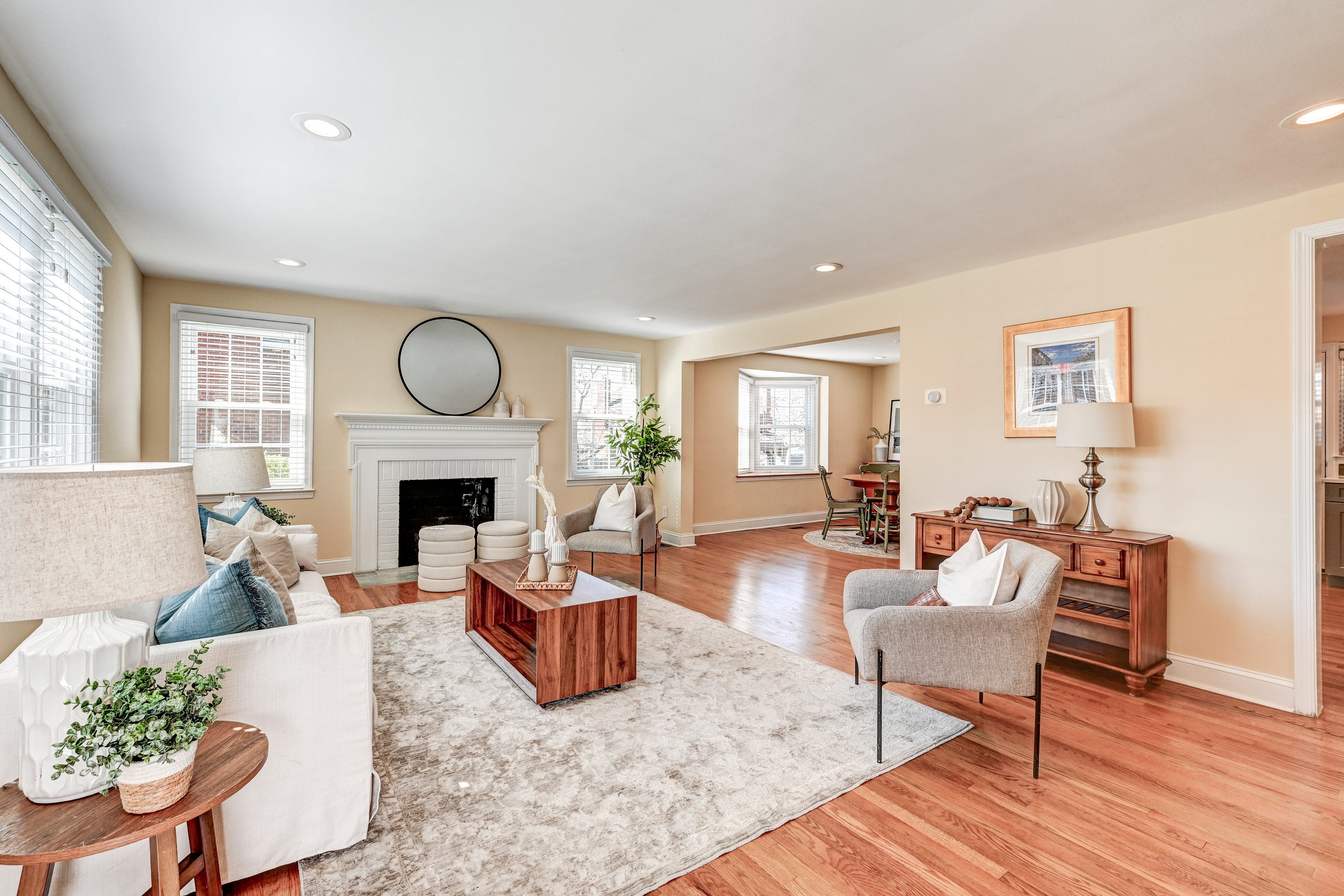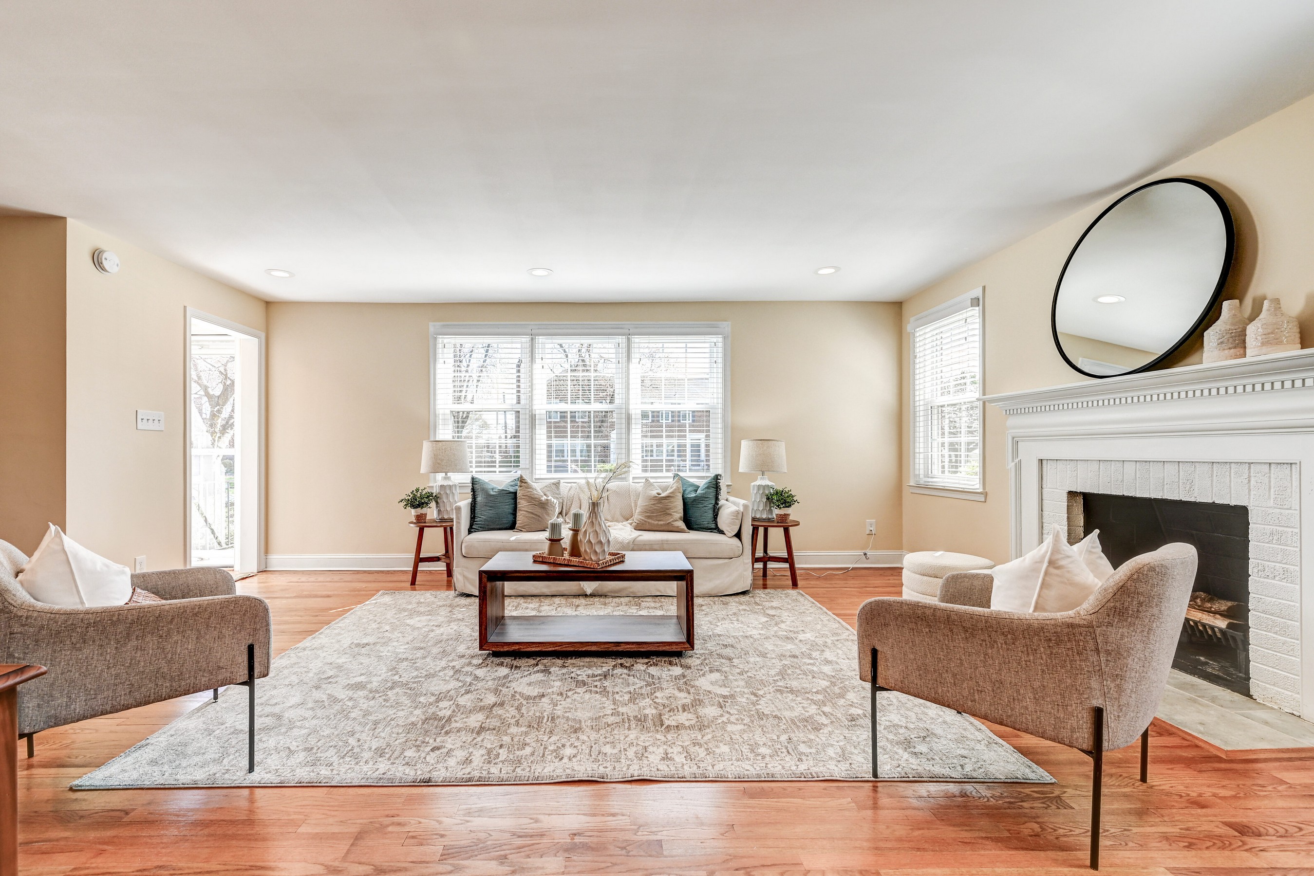Completely Renovated in 2017, Very well maintained. Exceptional End of Group, Threee Bedrooms, 2 full bathrooms, open kitchen, and inviting living room opens into light filled dining room, with side bay window. Freshly Painted, Bright, clean and beautiful! Gleaming hardwood floors on the main level, and upper level. Full Finished Basement. .Kitchen includes quartz countertops, allowing extra seating space, under cabinet lighting, glass back splash, built-in Pantry, glass pendant lighting over sink, recessed lighting. From the open kitchen, step out onto the Large covered low maintenance Trex deck off the kitchen with ceiling fan. Hardscaped patio off of rear deck, Storage Shed within the Private fenced in back yard, garden space, beautifully landscaped with mature plants and dog wood tree. A second shed is large enough to store a lawn mower. New roof, HVAC, Hot Water Heater 2017, Replacement windows 2020, New Exterior Door 2025, New Carpet,!