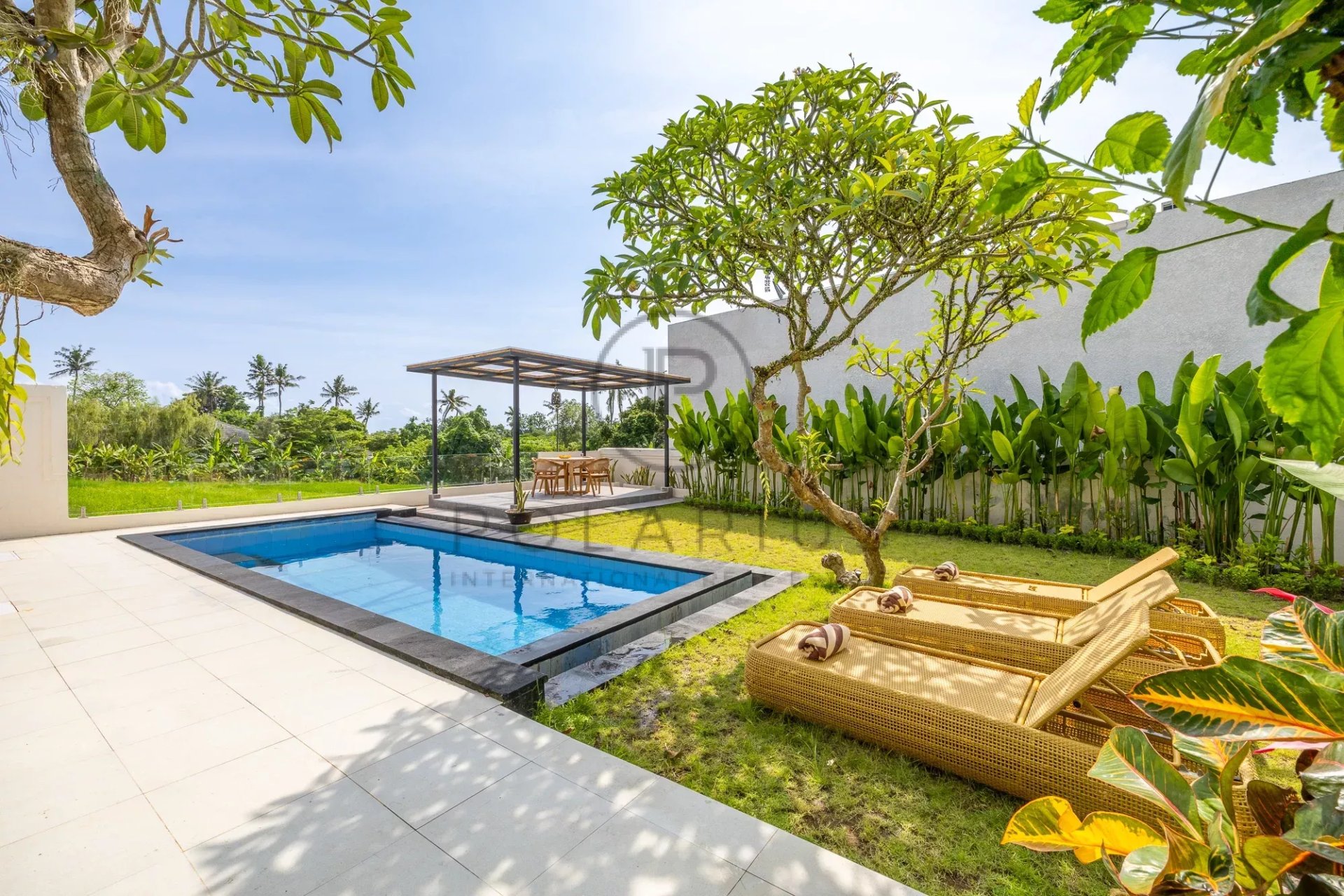 Your Private Tropical Retreat in Tumbak BayuhDiscover a modern tropical villa in the serene residential enclave of Tumbak Bayuh, Bali. Surrounded by protected greenery, lush rice fields, and pandan plantations, this villa combines ultimate privacy with the convenience of Bali’s most vibrant lifestyle hubs.Minutes from Canggu and Pererenan, enjoy easy access to international schools, premium restaurants, beach clubs, and wellness centers while returning home to a quiet, peaceful sanctuary. Perfect for families, entrepreneurs, and digital nomads seeking a refined Bali lifestyle.Modern Tropical Design & Contemporary ComfortThis villa features a modern tropical contemporary design, harmonizing natural materials with clean lines and expansive glass openings that fill the home with natural light.•
