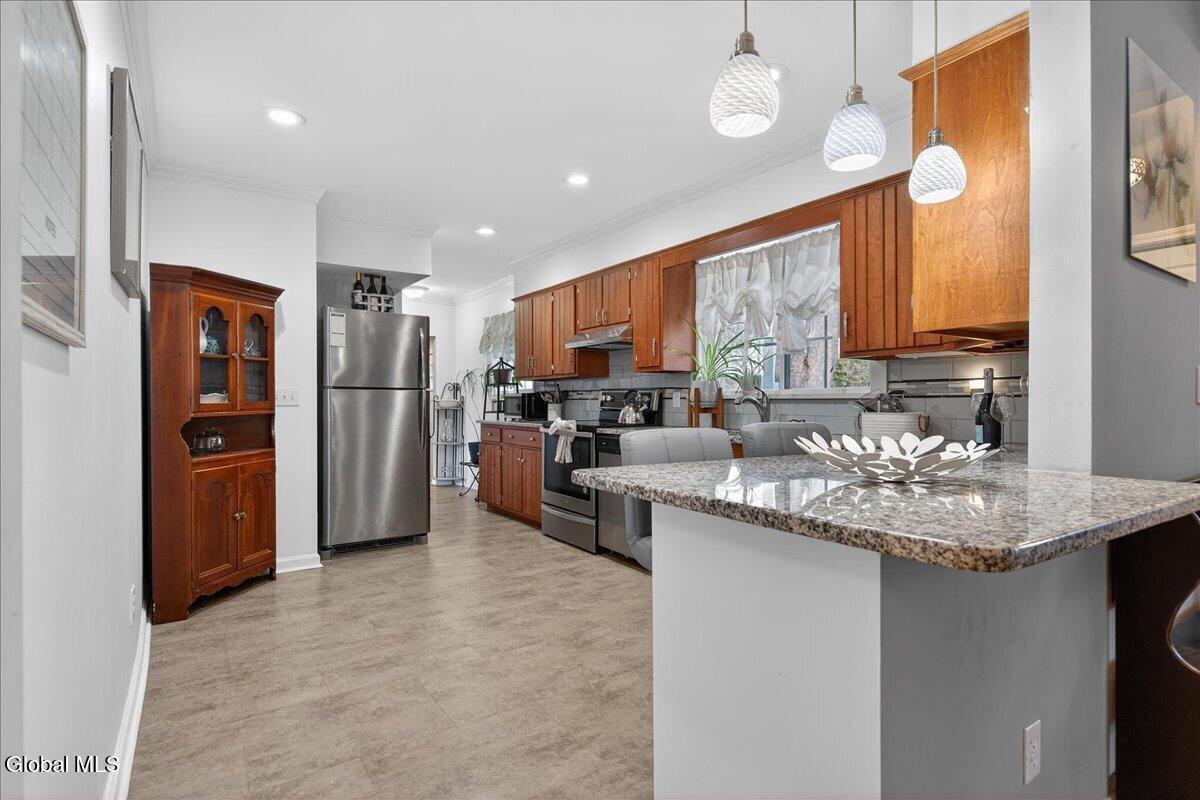 Welcome home to this thoughtfully updated ranch, set on a generous 1.2-acre parcel in the highly sought-after Niskayuna School District. Blending modern comfort with the ease of single-level living, this home offers both style and functionality. Bright and airy living spaces create a warm, inviting atmosphere, perfect for everyday living and effortless entertaining. The lovely primary features an en suite bath and walk-in closet, providing a cozy private retreat. Two additional bedrooms,one currently used as a family room, offer flexibility to suit your needs. The finished lower level expands your living space with an additional family room and convenient walk-out access to the backyard. Outside, the expansive lot boasts two decks and plenty of room to enjoy outdoor living, gardening, or simply relaxing in a peaceful, private setting.