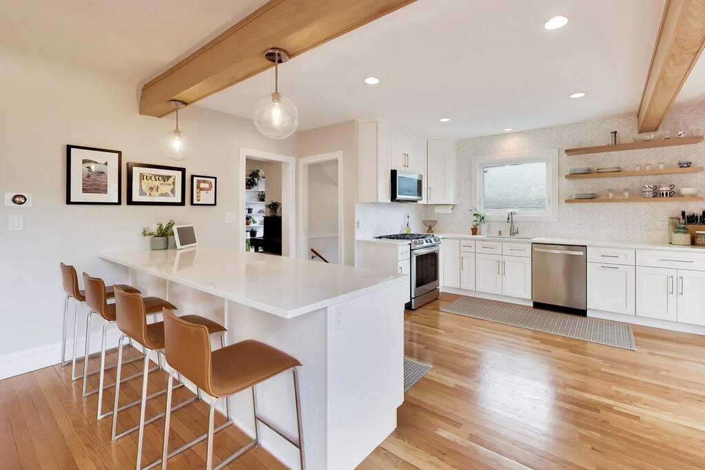 This charming Tudor offers the perfect blend of character, thoughtful design, and surprisingly expansive living space, all filled with an abundance of natural light throughout. Featuring 3 bedrooms and 3 1/2 baths, the home is filled with stylish updates, including a stunning fully renovated open kitchen (2024) with quartz countertops, stainless steel appliances, a dramatic peninsula with seating for four, open shelving, and a beautifully designed double door pantry with custom shelving and electric for effortless appliance storage. The inviting living room is centered around a charming gas fireplace, while upstairs the primary suite offers a walk-in closet, Juliet balcony, and beautifully finished bath. A fully appointed hall bath with tub and double vanity serves the secondary bedrooms, and the third level with new hardwood flooring and skylights provides exceptional flexibility as a family room, office, additional bedroom or lounge space with easy access storage. The finished basement adds even more versatility with a full bathroom, work nook, and an impressive laundry room complete with counter space, cabinetry, modern shelving, and Speed Queen washer and dryer all remodeled in 2024. Sellers have also had new drain tile system and sump pump installed. Thoughtfully updated throughout, the sellers made improvements with the intention of staying long-term, creating a home that is both functional and beautifully finished at every turn. A change in plans now presents a rare opportunity for the next owner to enjoy the care and investment already made. Ideally located just a short distance from schools, vibrant downtown Mount Prospect, and the Metra, this home offers both convenience and lifestyle. With timeless Tudor curb appeal and far more space than expected from the exterior, this is a home that truly stands out.