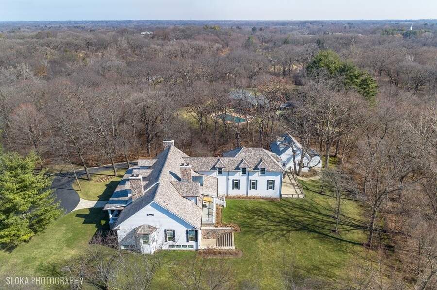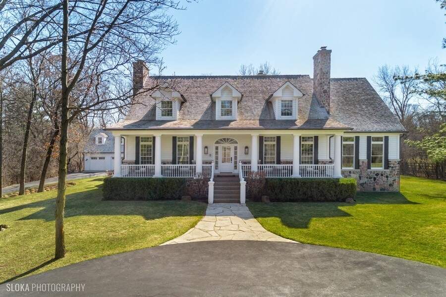 Nestled on a serene landscape in the heart of Barrington Hills, this charming Cape Cod home will captivate you! A long, winding drive leads to the picturesque residence sitting majestically on a 5+ acre parcel adorned with mature trees and embraced by nature's splendor. Step into a world of refined elegance as you enter this home where an open floor plan bathes each room in natural light. Exuding timeless charm and sophistication and adorned with custom millwork and hardwood floors running seamlessly throughout the first and second levels, every corner of this home reflects meticulous attention to detail. The grand two-story entry sets the tone for luxury living, leading to a great room with soaring ceilings, a majestic stone fireplace and French doors that beckon you to the private rear yard. Delight in culinary pursuits in the stunning kitchen, featuring soapstone counters, a central island with breakfast bar and high-end appliances. Linger over your morning coffee in the adjacent breakfast room with cozy fireplace and postcard perfect views. Entertain in style in the elegant dining room or utilize the versatile office space that can effortlessly transition into a living room. The first-floor primary suite is a sanctuary of relaxation, boasting a sitting area with fireplace, a spa-like bath with soaking tub and separate shower plus a huge walk-in closet with custom organizers and laundry. Ascending to the 2nd level, you will discover three generously sized secondary bedrooms, each with private access to baths, a loft area and a convenient laundry room. An expansive bonus room with sauna offers endless possibilities, perfect for an exercise room or a teen retreat. The finished walk-out lower level boasts high ceilings and offers a wealth of amenities including rec and game rooms, a large bar, full bath, ample storage space and a theater room perfect for movie nights! Indulge in the luxury of space and privacy with a sprawling yard perfect for outdoor enjoyment and relaxation, complete with a dog run for your furry companions. A three-car attached garage and a two-car detached garage with a 2nd floor storage area provides ample space for vehicles. Ideally located just minutes to town, Metra, shopping, restaurants, riding trails and award winning D220 schools. An extraordinary offering!