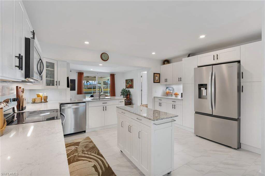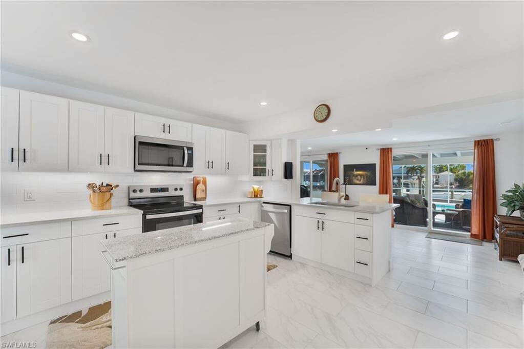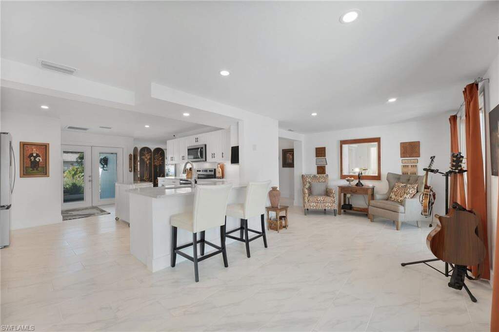 Look No Further! For your DIRECT GULF ACCESS CANAL FRONT POOL HOME on Fort Myers Beach! If you are a boater and beach lover, then this magnificent 3 bedroom 3 full bathroom home is for you! This home is COMPLETELY NEW inside displaying elegant, luxurious, coastal style. This waterfront concrete block home has no stairs so you can drive up, walk in and begin enjoying the island beach lifestyle. The newly installed underground irrigation system maintains the lush tropical landscaping that surrounds the property. Multiple security cameras on the property will stay with the home. Bright and spacious living area opens up to a large lanai overlooking the heated in-ground pool, and the new composite, maintenance free deck and boat dock with power, water and a new fish cleaning station. The large white porcelain faux-marble flooring gives the home a luxurious feeling. The kitchen offers beautiful cabinetry, quartz countertops with a convenient rolling center island. Please view the video link for a virtual tour. Arriving home after a nice boat trip or a walk down the beach you can relax and cool off in the gorgeous swimming pool. The private, enclosed patio is adjacent to the pool and deck and is beautiful in the daytime and magical at night. Dolphins and manatees are a frequent delight, swimming right up to the dock. This property is situated on intersecting canals and offers expansive long water views. Take your boat less than half a mile and you will find yourself in Estero Bay with unparalleled backwater fishing opportunities. By boat, this home is 2.5 miles to the Gulf, Lover's Key State Park and Dog Beach. For the beach lovers, this spectacular home is less than 500 steps from the sugar white sand beach that we are so famous for. The highly desirable Fairview Isles area of Fort Myers Beach is very close to Publix, CVS, 7-Eleven, Santini Plaza, Fish Tale Marina, popular shopping, restaurants, and coffee shops. The South-end location also allows quick and easy traffic-free access to Bonita Beach, Naples and the Southwest Florida International Airport. Don't forget to watch the virtual tour video. Welcome to your new Fort Myers Beach home.