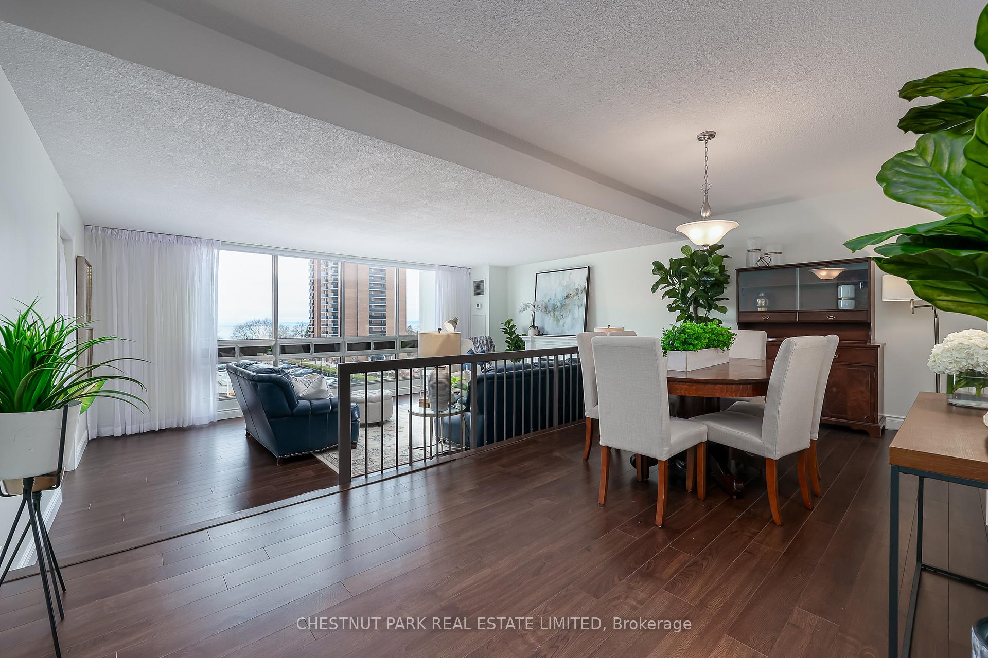 Enjoy captivating views of Lake Ontario from every room in this bright and spacious 2-bedroom + den residence in the highly desirable Ennisclare on the Lake community. Offering over 1,500 sq. ft. of well-designed living space plus a large private balcony, this condo provides a relaxed and effortless lakeside lifestyle. Expansive windows fill the home with natural light and hardwood floors extend throughout the home, enhancing its elegance and flow. The spacious dining area flows seamlessly into the living room and features a walkout to the balcony - perfect for enjoying fresh air and lake views. The updated kitchen with breakfast area provides style and functionality for everyday living.The primary bedroom is a private retreat, complete with a sunken sitting area, double closets, and an ensuite with a walk-in shower. The second bedroom and versatile den offer flexible space for guests, a home office, or family. Ensuite laundry with additional storage, makes this home as practical as it is inviting. Residents enjoy an impressive range of amenities, including an indoor pool, exercise room, sauna, lounge and library, party room, billiards, indoor golf range, squash court, woodworking shop, paint room, games room, and a variety of social activities. Outdoor features include tennis/pickleball court and visitor parking. All-inclusive condo fees cover heat, hydro, water, cable, building insurance & maintenance; ensuring truly effortless living. Includes one parking space and one locker. Ideally located just steps from the waterfront, Bronte Harbour, shops, and dining, this well-managed building offers an exceptional lifestyle in a private lakeside setting. Fridge, Stove, Dishwasher, Washer & Dryer. Electric Fire Place. All Window Coverings. All Electrical Light Fixtures