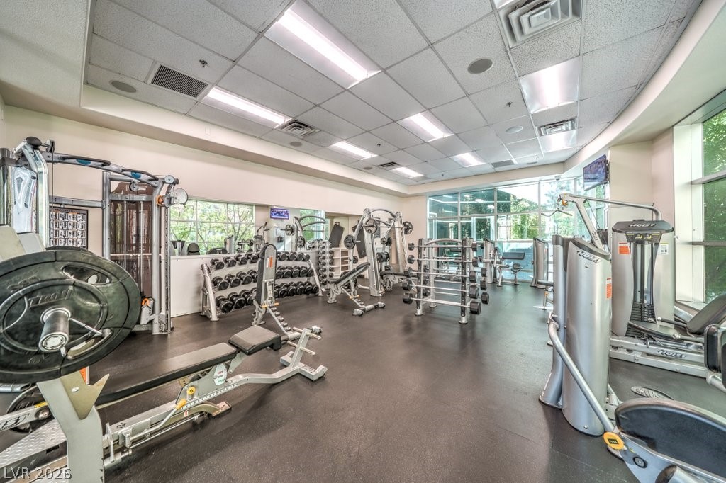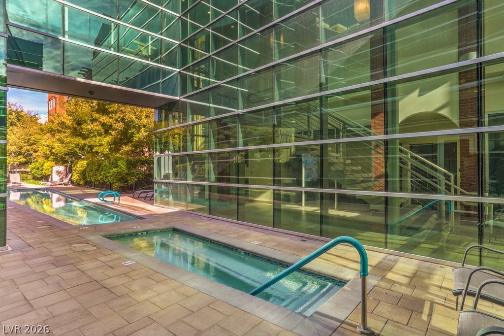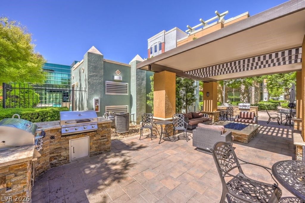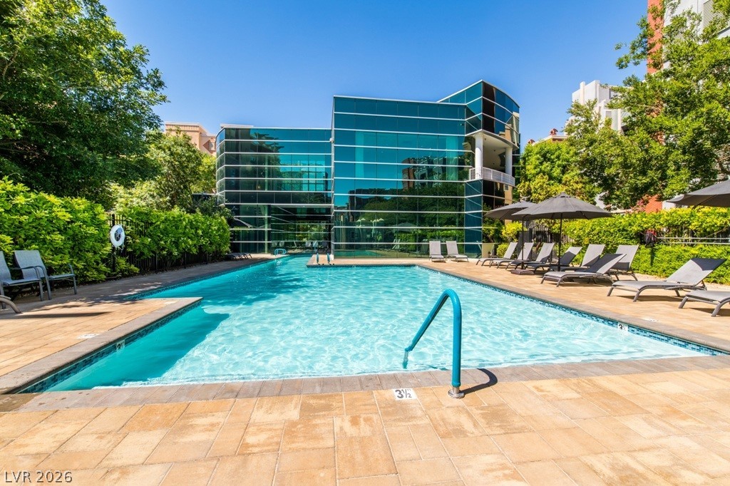 Manhattan Condominiums is a luxury guard gated community featuring an elegant yet exciting lifestyle. Set just off the world-famous Fabulous Las Vegas Strip this locale provides world class entertainment, dining, and shopping. The Manhattan lifestyle consists of resort style amenities such as sparkling pools, relaxing spa, fitness center, strength room, yoga studio, treatment rooms, dry sauna, tennis, basketball, barbecue area, business center, playground, and pet park. This desirable unit offers an open concept with a den/office, spacious balcony, and ideal location near the amenities. Gourmet kitchen is treated to granite counters, breakfast bar, mosaic tile backsplash, two pantries, and stainless-steel appliances. Stylish interior completed using fine finishes such as contemporary hard wood laminate, stone pattern tile, custom paint, ceiling fans, and modern touches. Convenience items include a washer and dryer right in the unit and easy and helpful storage via the many closets.
