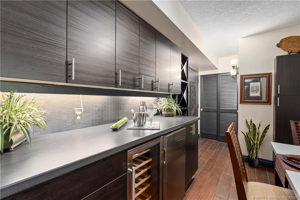 Waterfront 2Bed 2Bath condo with spacious patio. Dock slips up to 40' boats on the Indian River upon availability. Located across from Hutchinson Shores Resort & Jensen Beach with public access. Green Turtle offers Community Marina, Clubhouse, Heated Swimming Pool, BBQ & Gym. Fully furnished Tommy Bahama inspired interior decor. The kitchen feature white cabinets, Stainless steel appliances, white counters with SS backsplash. Porcelain tile wood plank flooring throughout. Built-in beverage refrigerator, and wine chiller. Expansive master suite features PGT impact sliding glass doors to patio spacious, walk-in closet and second standard closet. Main bath has been renovated with new vanity and vessel sink. Large guest suite has PGT impact sliding glass doors to porch patio. Second bathroom has been updated with new vanity and vessel sink with tub shower combination. Lots of built-in cabinets for storage. Roof 2025, Hot water heater 2024 & A/C in 2009. Stack washer dryer in unit.