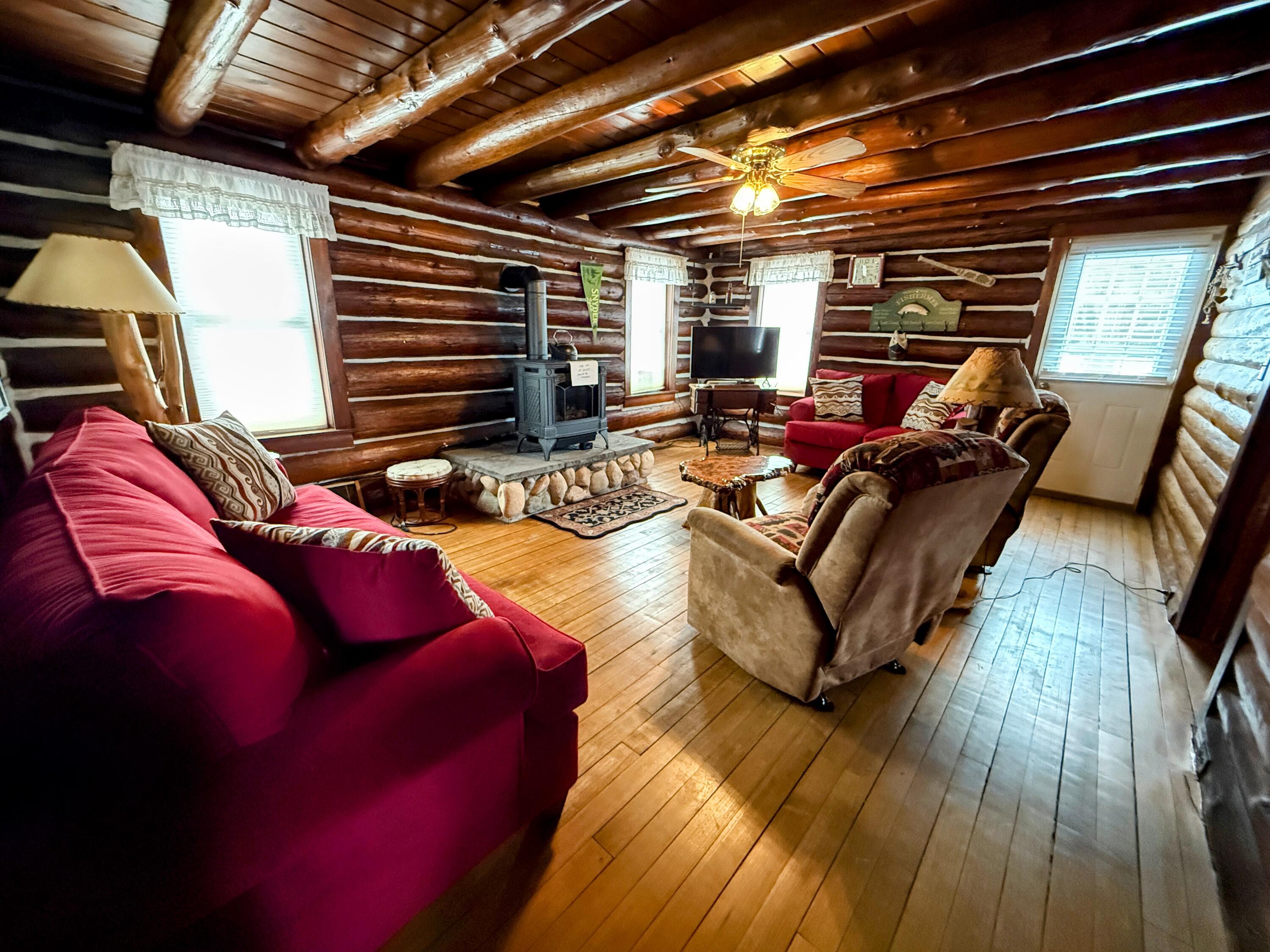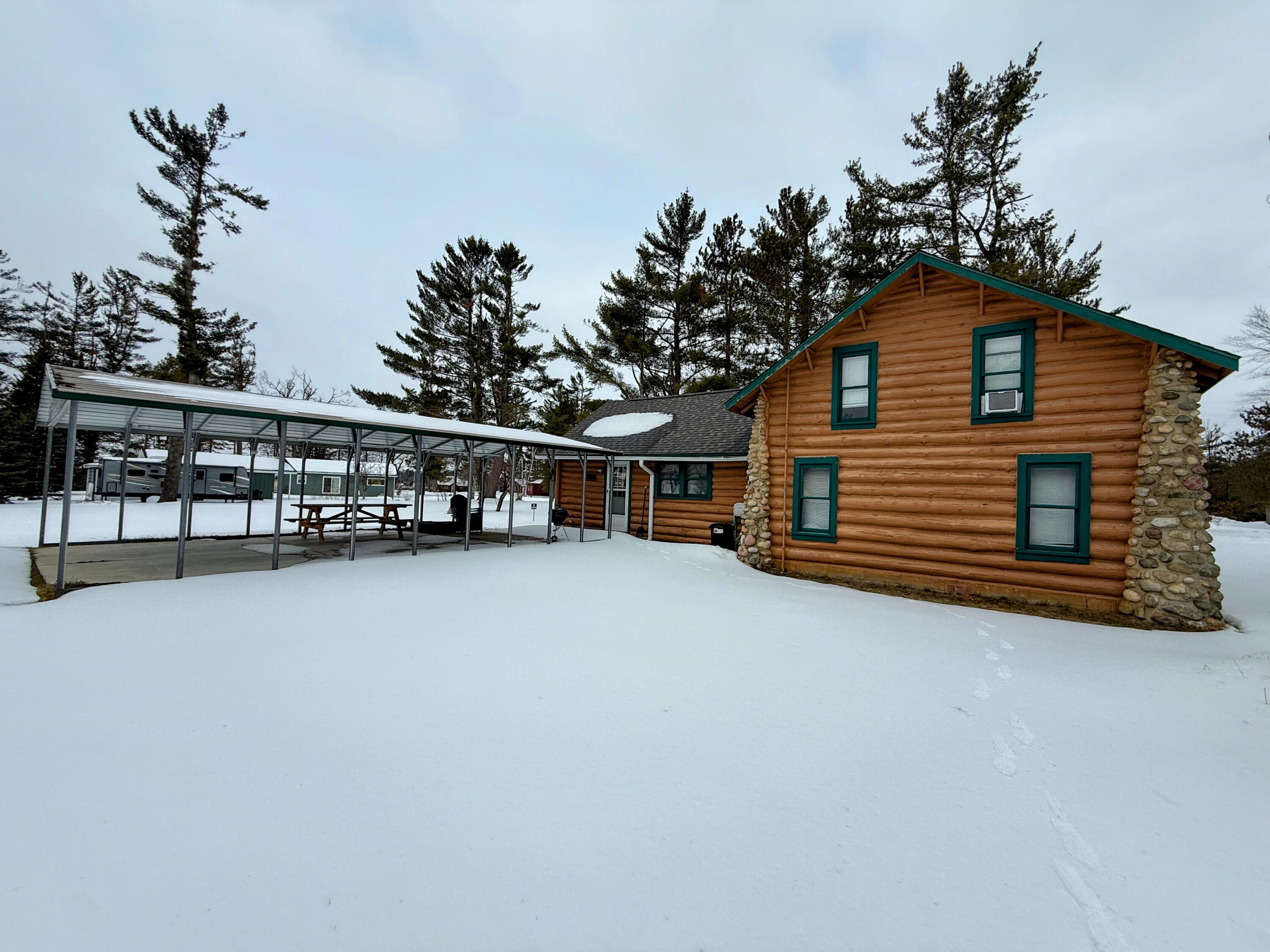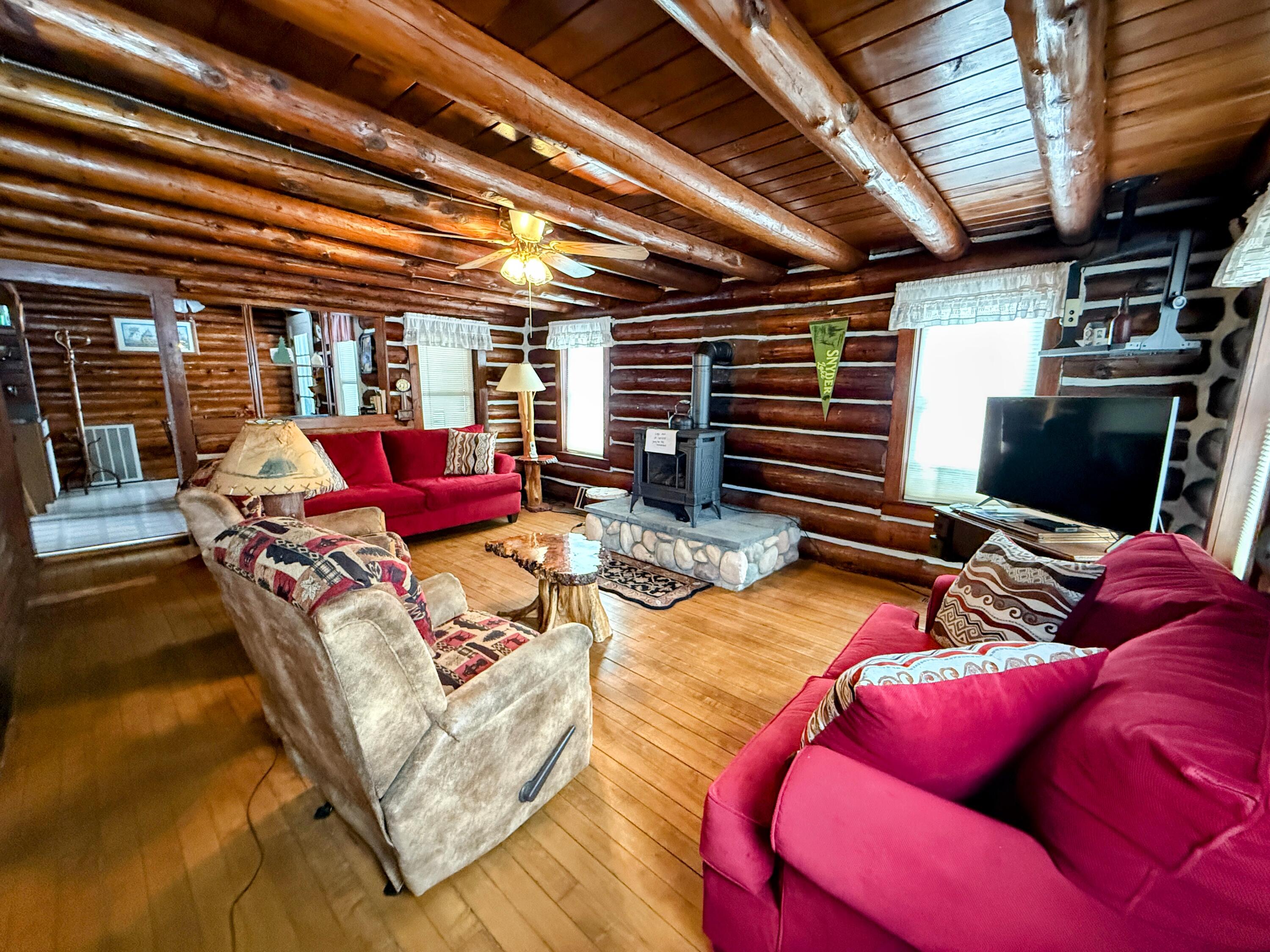 Welcome to your Up North escape! This charming 3 bedroom log home sits on a peaceful 1.5 acre setting, offering the perfect blend of privacy and outdoor adventure. Just a short walk brings you to Snyder Lake an all sport lake, making it easy to explore the surrounding beauty. The Lewiston area is a true haven for nature lovers, with Garland Resort, scenic snowmobile trails, and canoe rentals all nearby. Whether you're hitting the trails, paddling nearby waters, or simply soaking in the quiet surroundings, there's something here for every season. Start your mornings in the cozy sunporch with a warm cup of coffee, and spend your evenings under the large covered outdoor area ideal for gathering with family and friends while enjoying the fresh northern air. The property also features two detached garages, including one finished in beautiful knotty pine, adding both function and rustic charm. Whether you're looking for a private getaway or a potential Airbnb investment, this inviting log home offers endless possibilities.