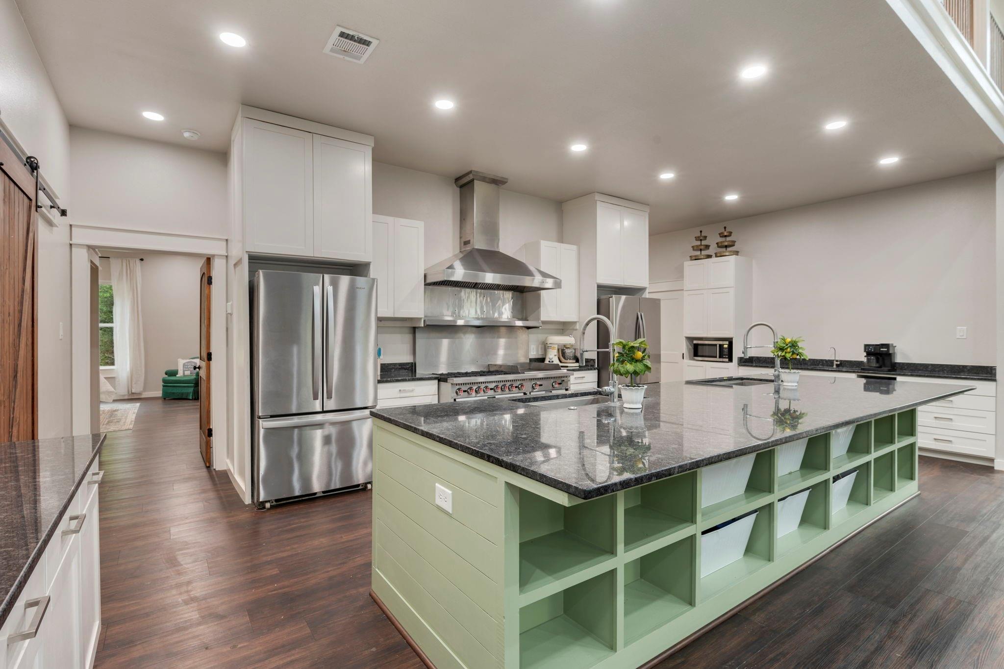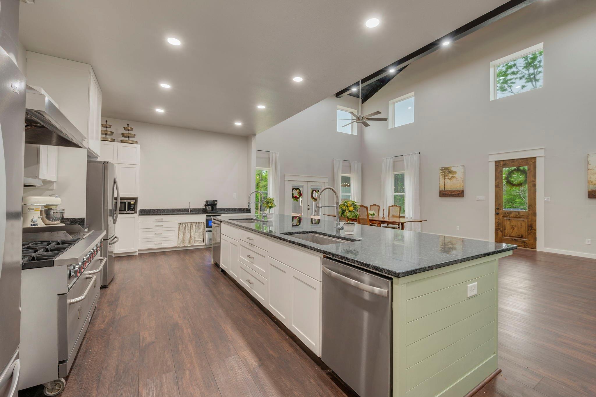 For those desiring the privacy of country life and luxury of convenience, this 4-bed, 4-bath metal framed home, built in 2022, is an inviting place to set down deep roots. Boasting a 26' ceiling height in the grand entry, living, and dining areas, the rest of the 3,992 sq ft also offers a floor plan designed for entertaining. The chef's kitchen, featuring an expansive island, 2 refrigerators, 2 dishwashers, 3 sinks, commercial over-sized range with double ovens, and more, is the heart of the home. The master suite has a private office and walk-through closet, leading to storage, the laundry room, and guest bath, all with 10' ceilings. Upstairs, each with 9' ceilings, are a second master suite, two more bedrooms, a guest bath, and an open area with railing that overlooks the great room. The 30' by 40' shop with spray foam insulation and a 26' ceiling opens to the 20' by 40' covered carport / country dance floor. Twin 200-amp service, Mid-South Fiber internet, and a deep water well.