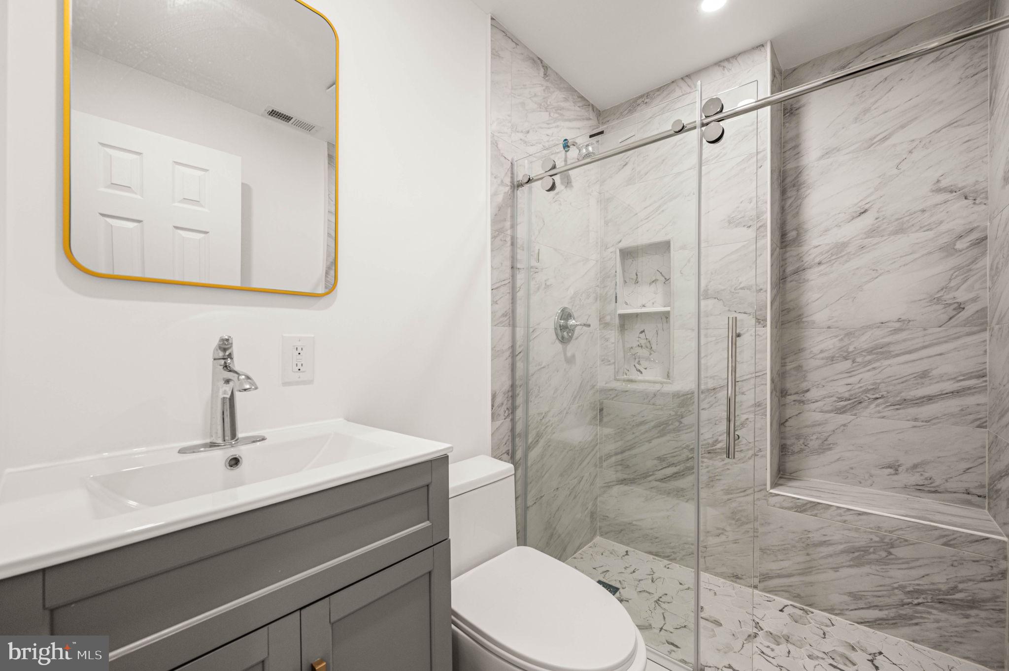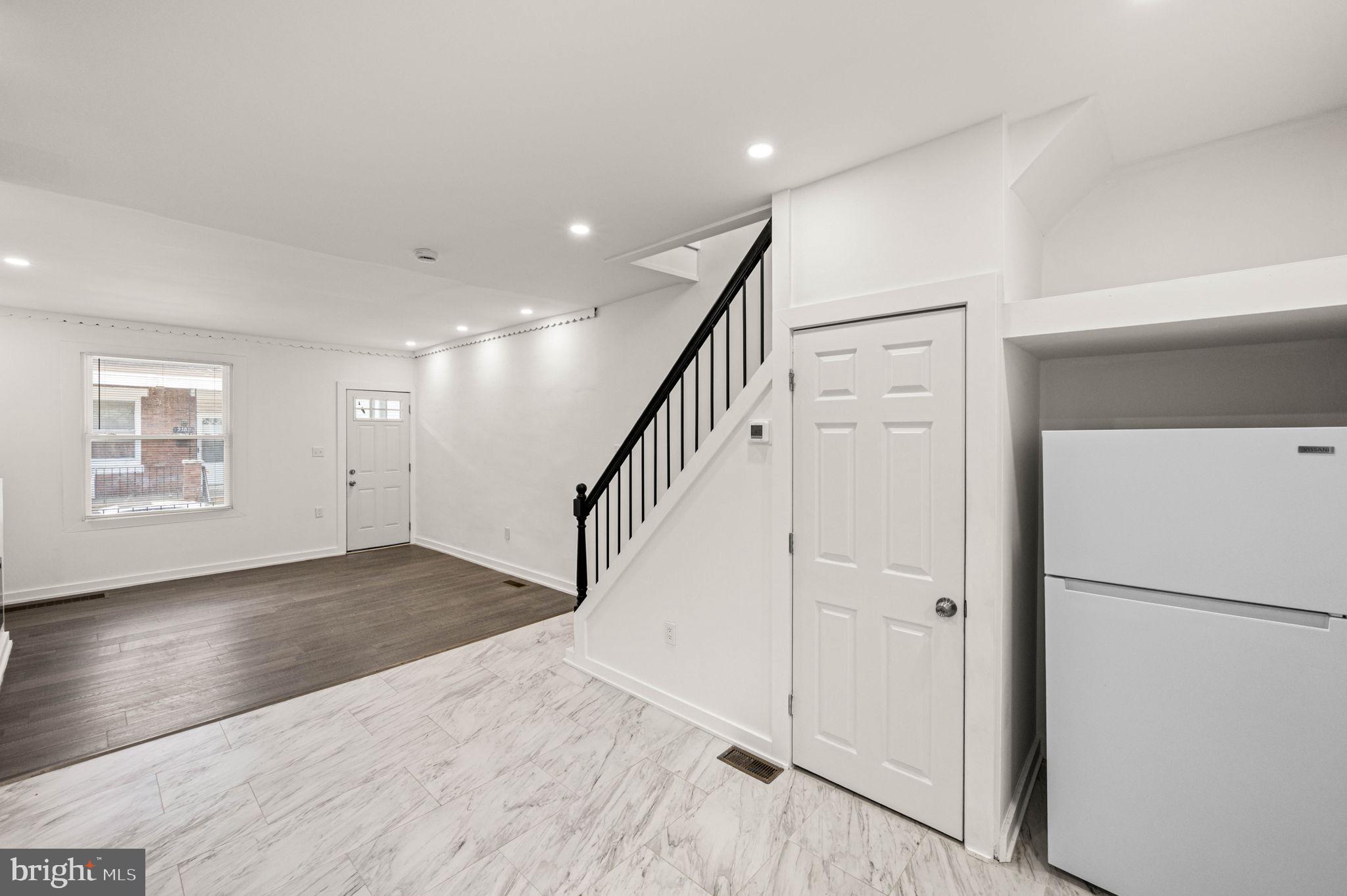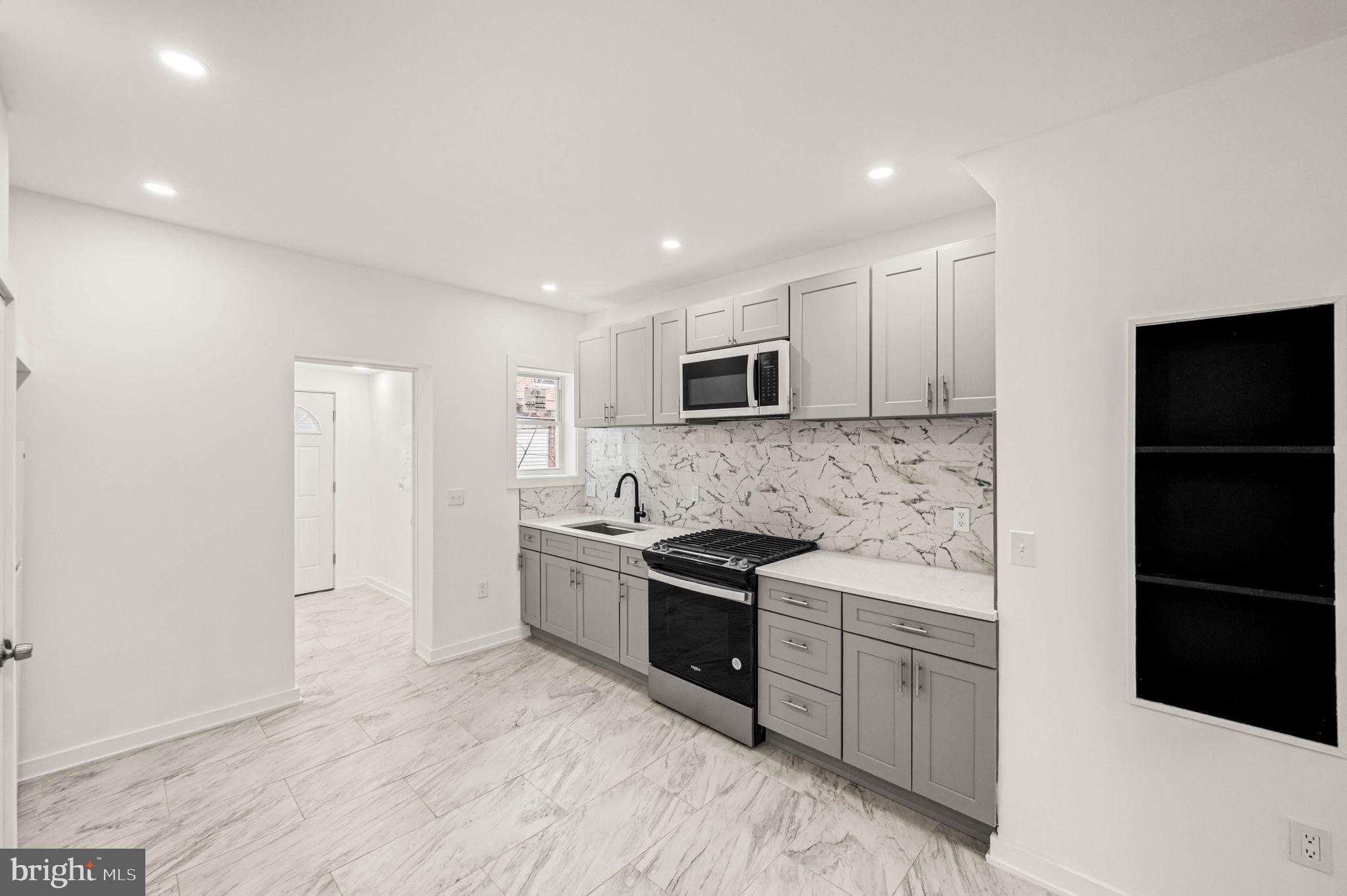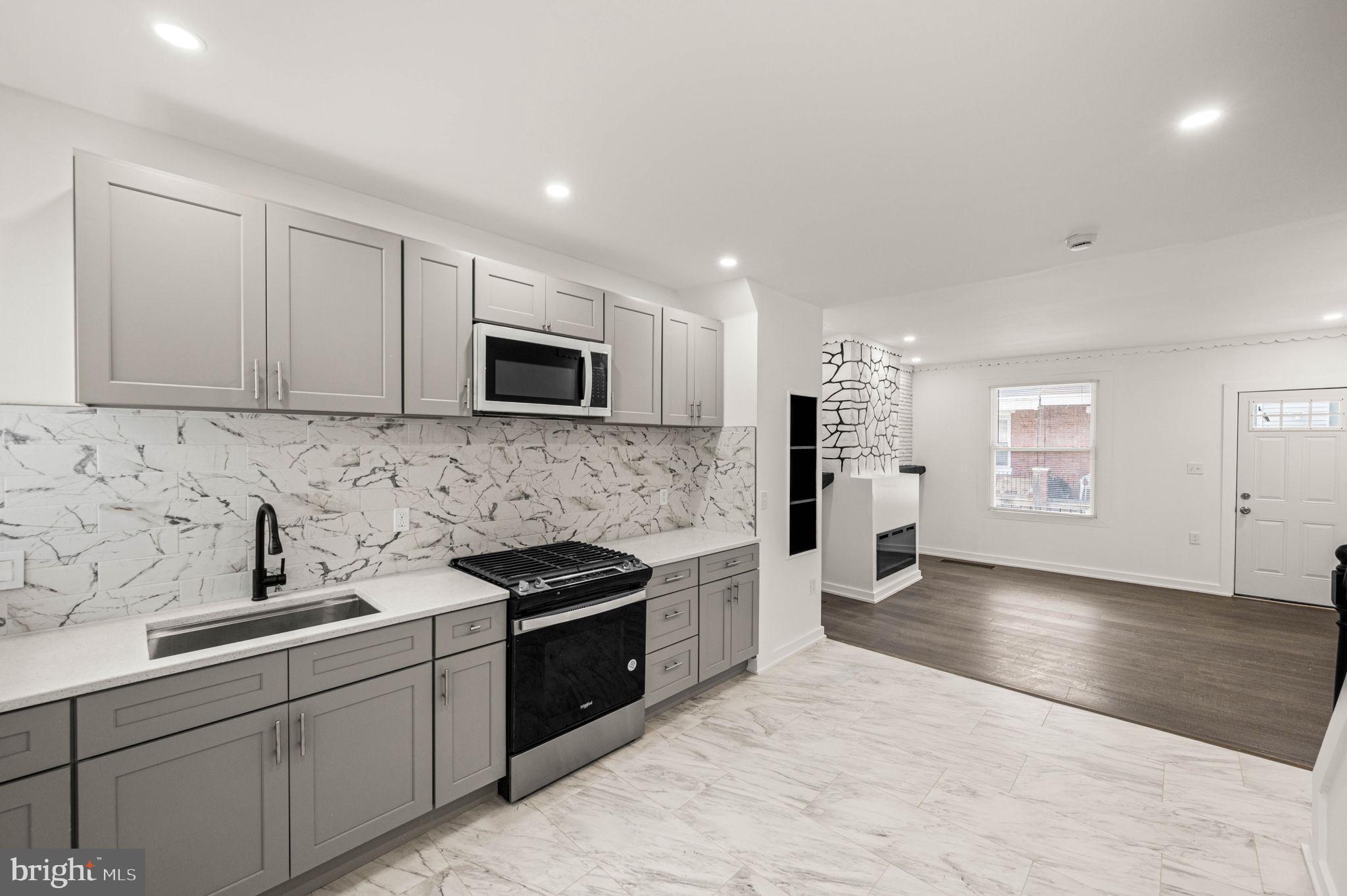 Welcome to 2103 S Daggett Street, a full custom renovation in Southwest Philly where every detail is brand new. This turn-key home offers total peace of mind with a new HVAC system, new energy-efficient windows, and updated plumbing and electrical throughout. The main level features an open-concept living room with hardwood floors, custom molding, and a modern electric fireplace flanked by beautiful built-in shelving. The designer kitchen is equipped with grey shaker cabinets, quartz countertops, and ceramic tile flooring. For added convenience, the first floor includes a dedicated laundry room and a private powder room. The second floor offers two spacious bedrooms and a full bathroom featuring custom ceramic tile work. The living space continues in the fully finished basement, which includes another full ceramic tile bathroom and a versatile layout perfect for a third bedroom, home office, or gym. Located with easy access to University City, local shopping, and public transportation, this home combines high-end custom finishes with functional modern upgrades. Schedule your showing today to see this complete transformation. Brand new roof, brand new rear siding! Everything is new!