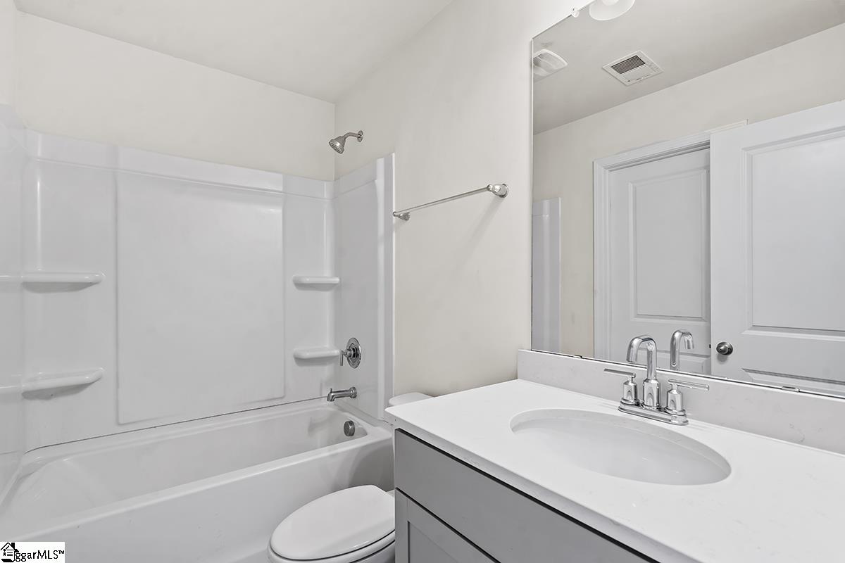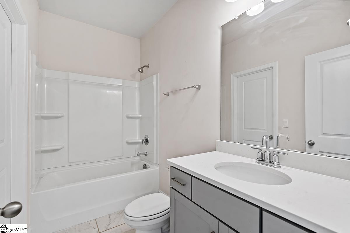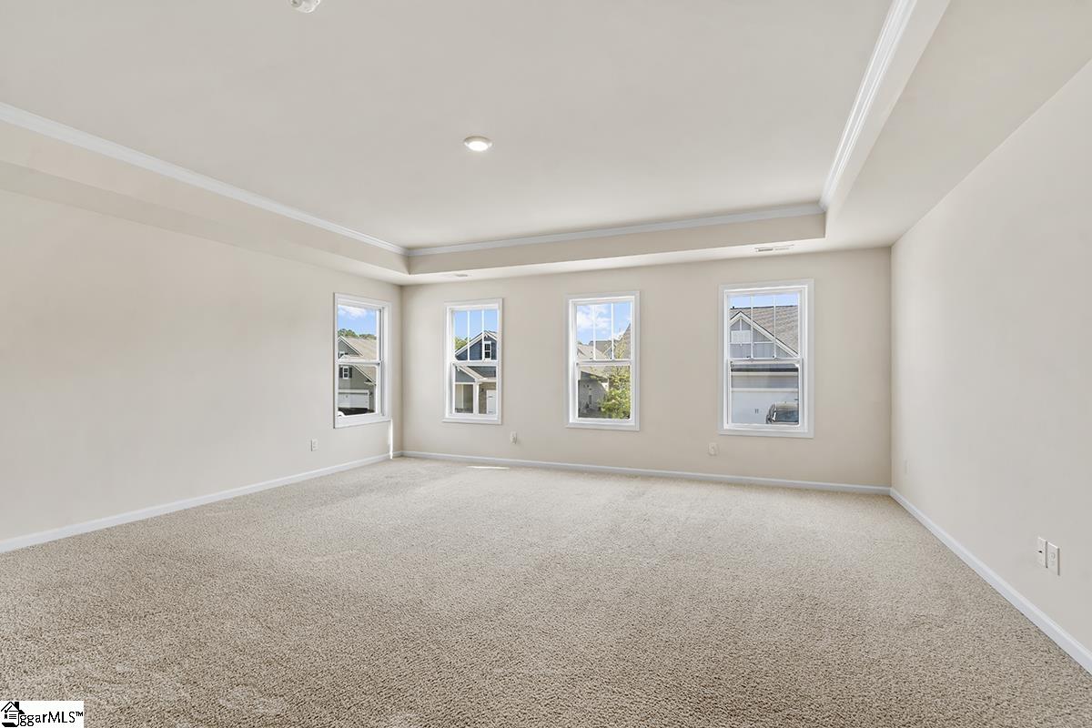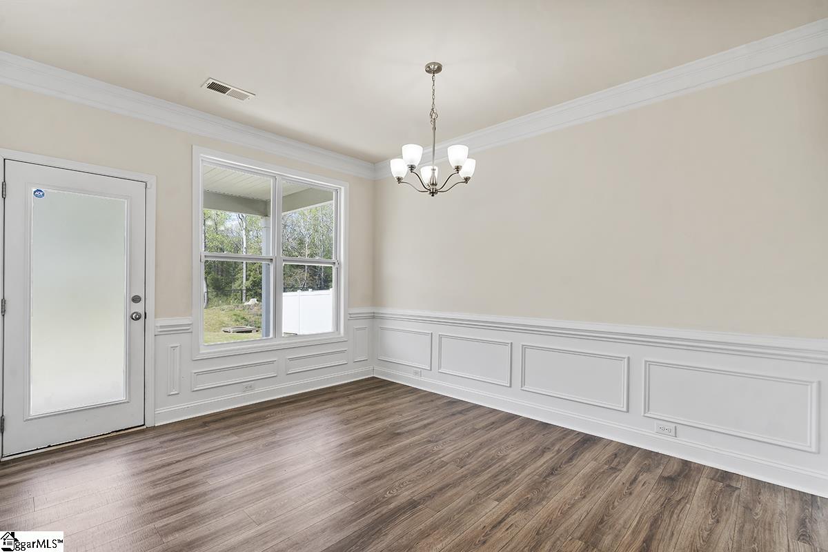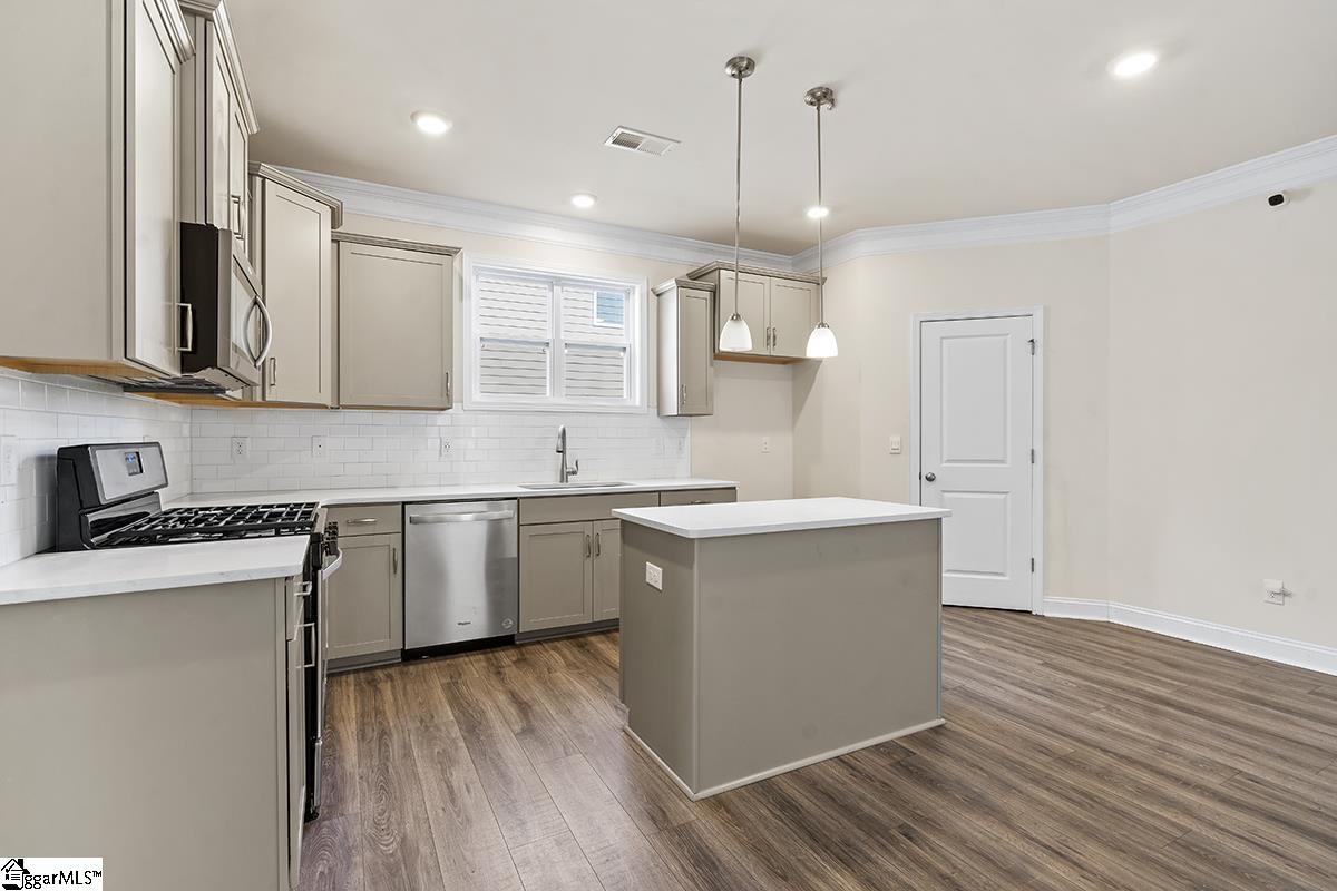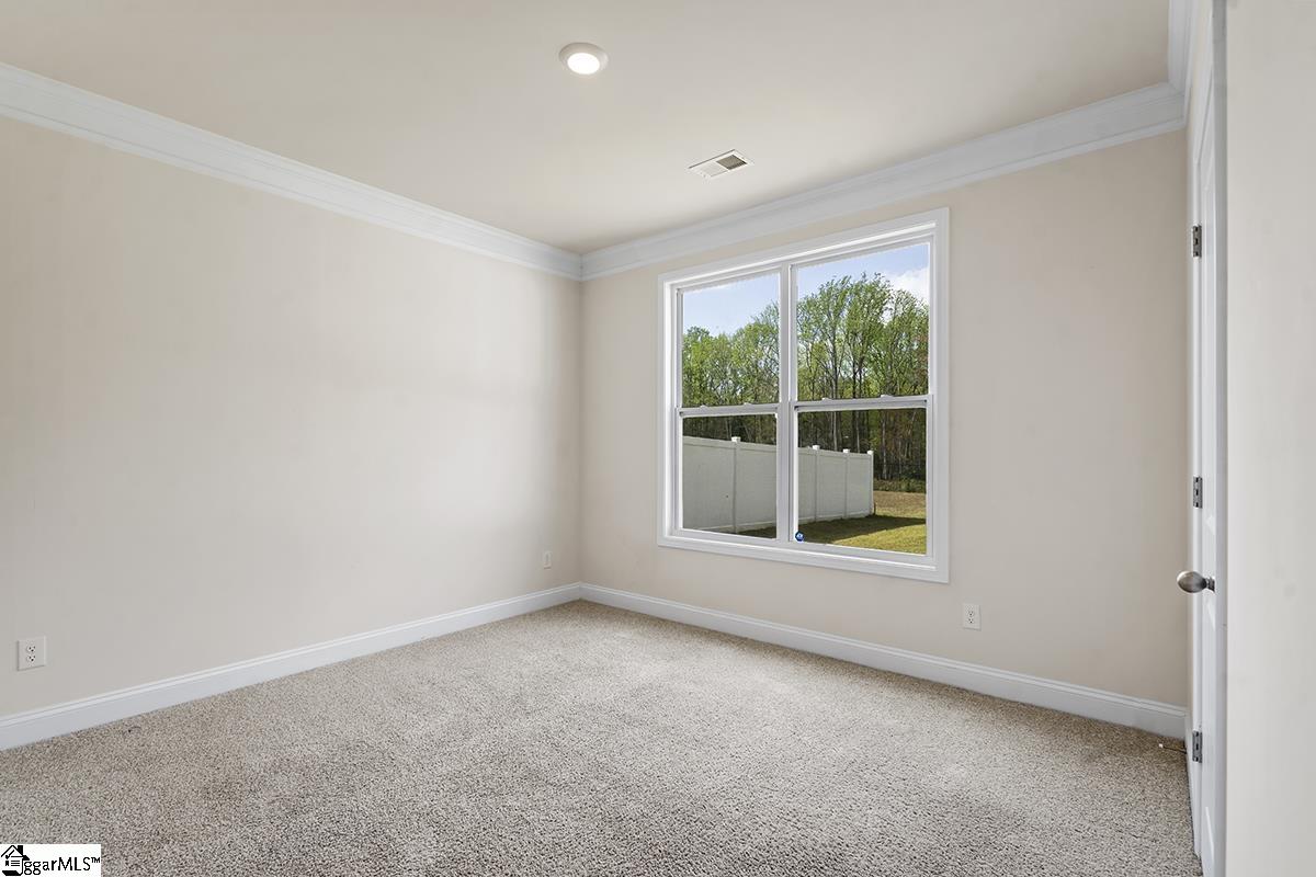 Welcome to Heritage Village - an exclusive community with limited opportunities remaining! This stunning 5-bedroom, 3-bath Berkshire plan offers over 2,700 square feet of thoughtfully designed living space just one mile from I-385 and minutes to shopping, dining, medical facilities, and Heritage Park. The main level features a secondary bedroom with private bath access, gleaming 5 hardwood floors, and elegant finishes including chair rail, wainscoting, and crown molding. The gourmet kitchen boasts gray cabinetry, quartz countertops, a spacious island, stainless steel appliances, and a gas range - opening to a warm and inviting family room with gas fireplace. Upstairs, the luxurious owner's suite includes a trey ceiling, spa-like bath with tile shower, soaking tub, and a large walk-in closet. Enjoy outdoor living on the covered patio, plus the convenience of a 2-car garage. Energy-efficient construction in a prime location - don't miss one of the final opportunities in this desirable community! Come see this home today!