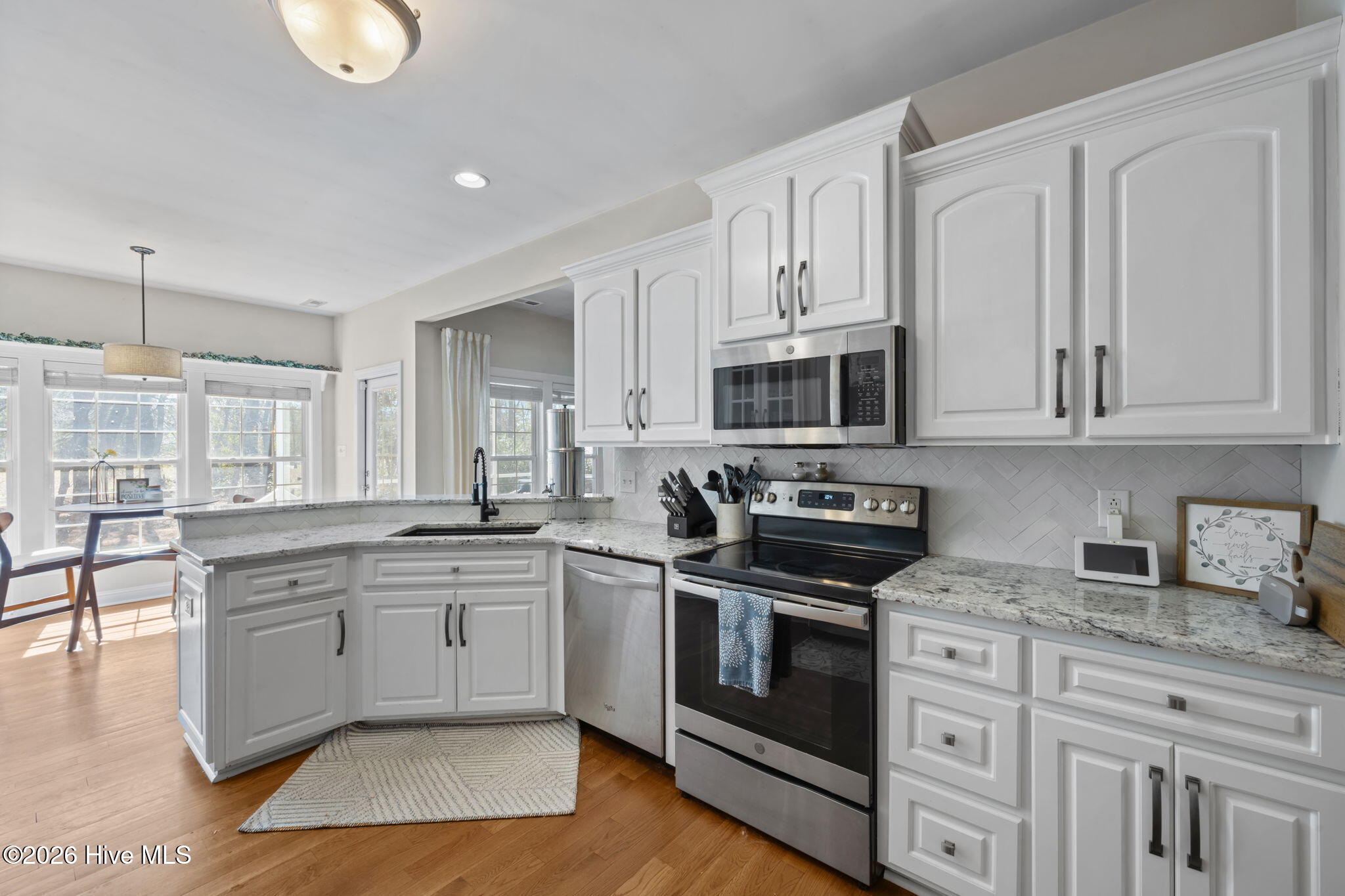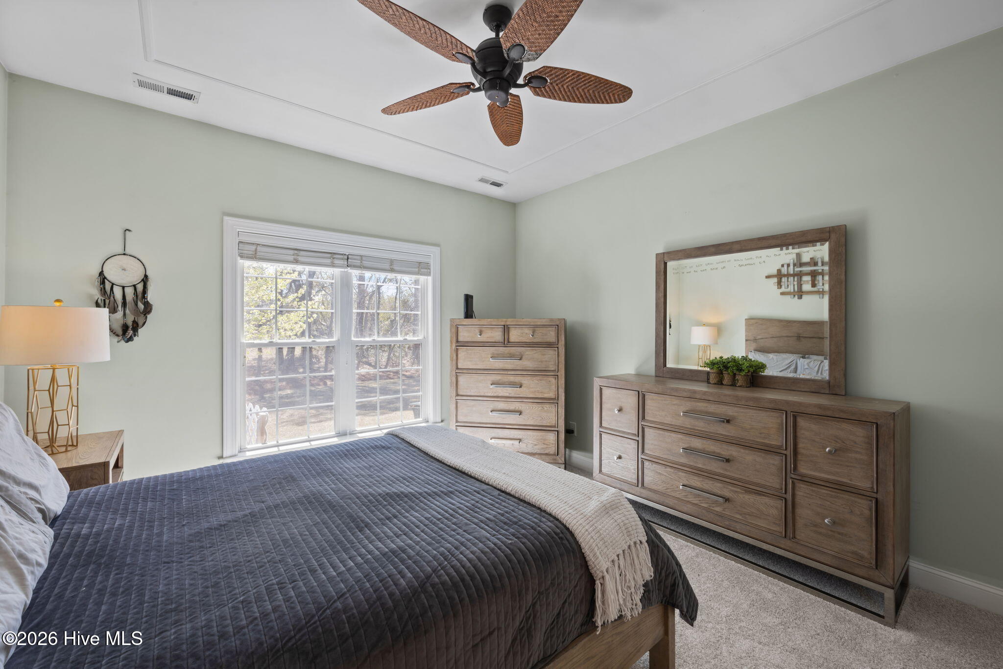 Welcome to 2027 Caracara Drive in the highly desirable waterfront Fairfield Harbour neighborhood. This well designed floorplan and updated home is move in ready with all of the top of the line upgrades! The kitchen has been tastefully updated with sleek granite countertops, a stylish tile backsplash, new convection oven, huge pantry, tons of cabinet space with custom drawers in cabinets. This kitchen also features a breakfast nook area in addition to the formal dining room. The open and inviting living room boats plenty of natural light and an accent wall surrounding the gas fireplace. Enjoy the comfort of brand-new carpet in all bedrooms, providing a fresh and cozy retreat at the end of the day. The master bedroom offers plenty of space with a master bathroom boasting dual vanities, walk in shower, jetted tub and huge walk in closet with upgraded shelving and storage spacing. Both downstairs bathroom vanities have also been enhanced with matching granite surfaces, adding a touch of elegance throughout the home. Upstairs enjoy the huge bonus room with its own private bathroom. Outside enjoy the covered front porch perfect for rocking chairs and enjoying ENC weather. The back porch also features a huge screened in porch perfect for summer nights and morning coffee. This lot backs up to a small trail perfect for biking, walking, golf carts that leads to two ponds and the neighborhood marina. Located in a desirable area of New Bern, this home offers easy access to local amenities, shopping, dining, and more. Fairfield Harbour features one of the most sought after gated communities and lifestyles with amenities including: marina and boat ramp, clubhouse, pickleball courts, walking trails, dog park and so much more!