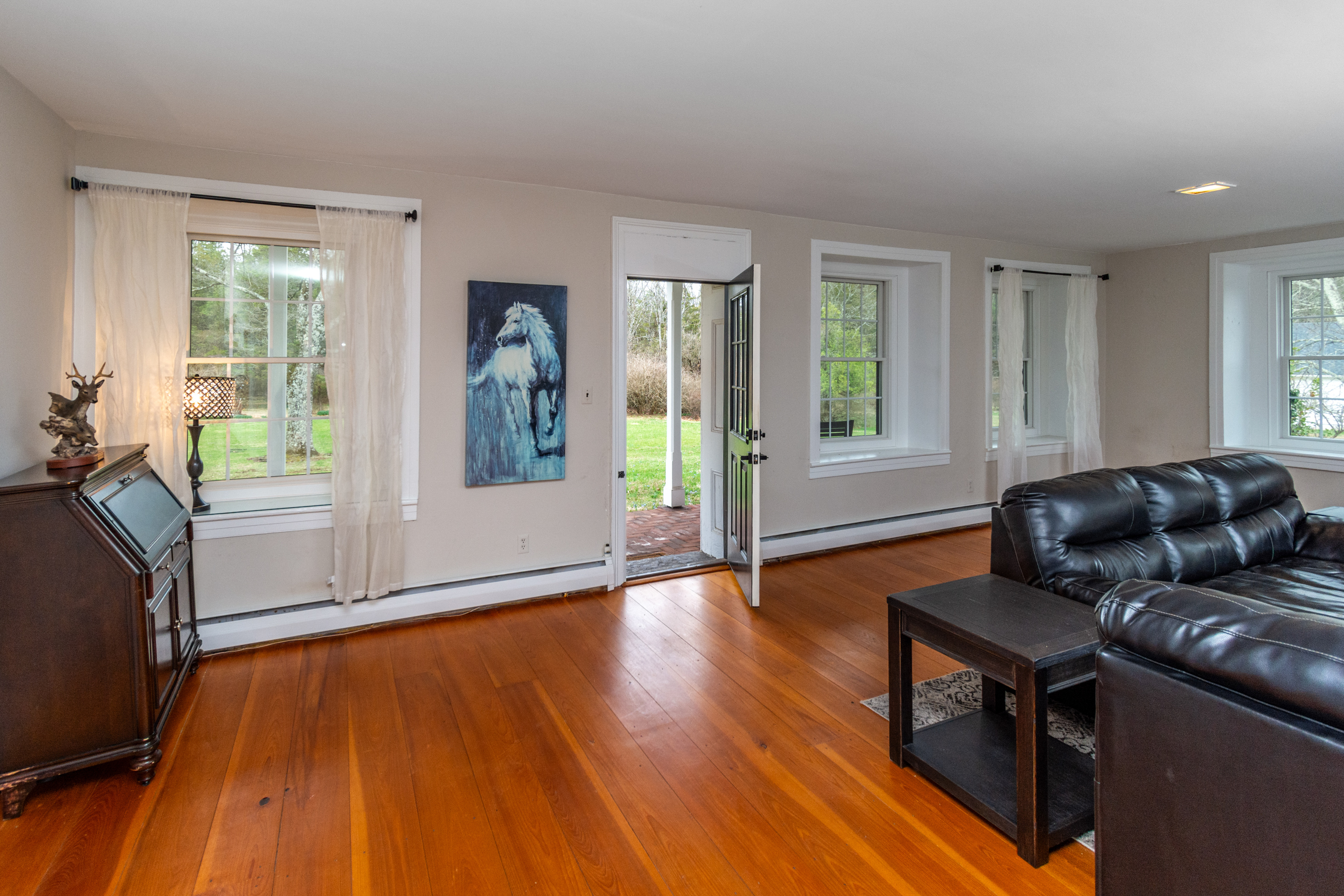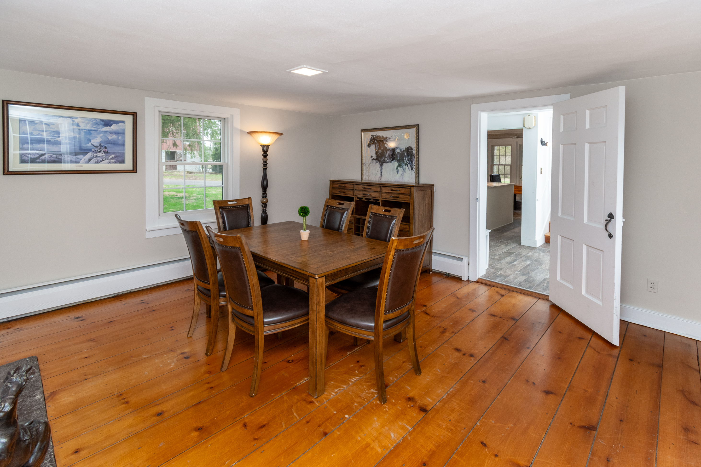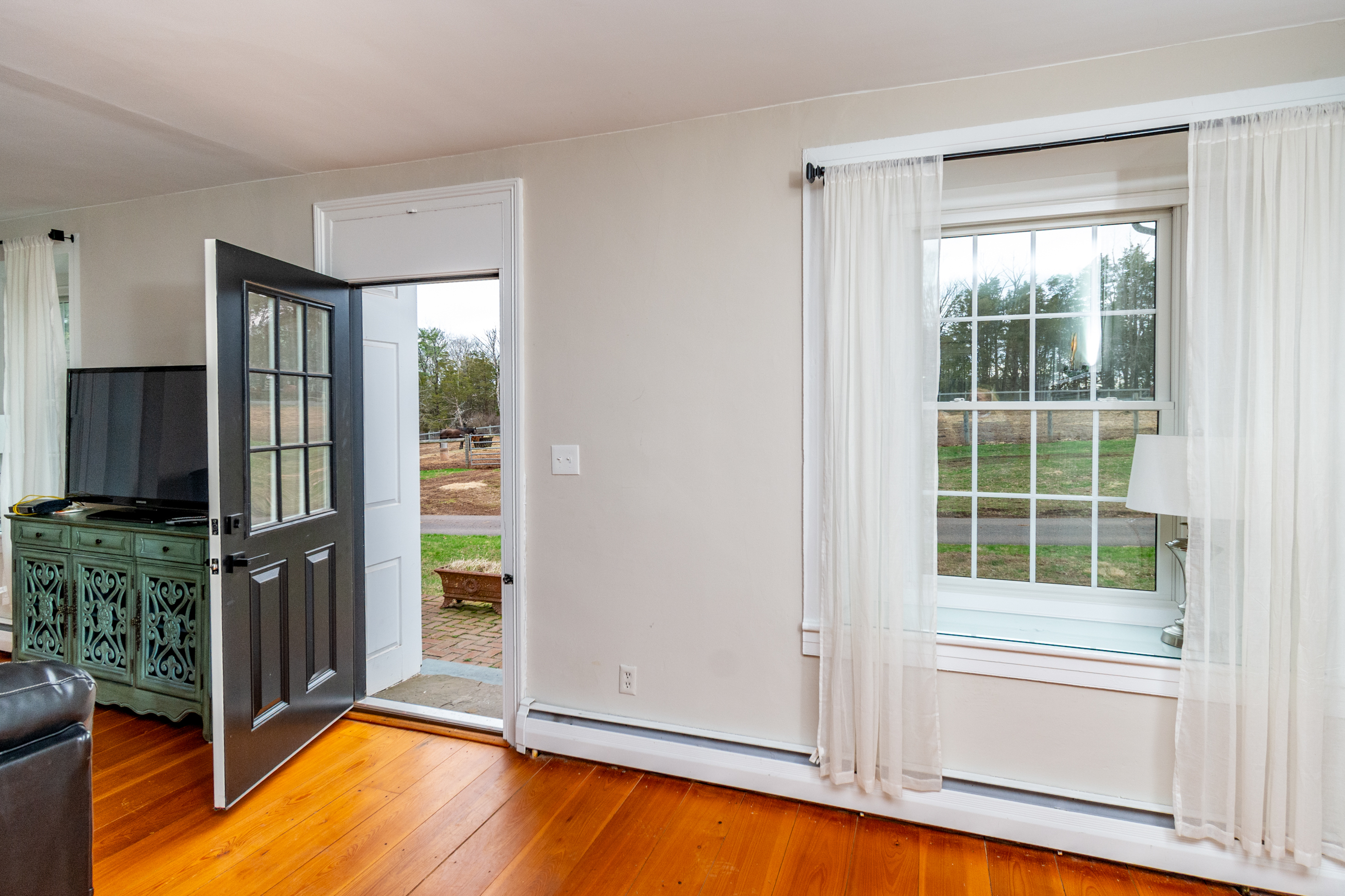 Welcome to Farm Buck Haven, a captivating retreat nestled in the heart of Bucks County. This enchanting property, with roots dating back to the 1840s, is situated on 57 acres of picturesque, gently rolling pastures and tranquil woodlands. The property offers a unique blend of history, natural beauty, and modern amenities, making it an ideal sanctuary for those seeking a serene and peaceful lifestyle. The inviting farmhouse is characterized by a grand covered porch that offers sweeping views of the expansive rear yard. Inside, the home boasts four generously sized bedrooms and 2.5 bathrooms, providing ample space for relaxation and comfort. The eat-in kitchen was just renovated with all new stainless appliances, subway tile backsplash, tile flooring and granite countertops. A formal dining room, seamlessly blend traditional charm with modern convenience. The spacious, sun-filled living room, complete with high ceilings, an original walk-in fireplace is not in use, but highlights the room and hardwood flooring, offers a delightful space to gather with loved ones. The living room windows and two doorways open to the picturesque landscape and pastures, allowing you to enjoy the scenic views from the comfort of your home. This secluded property is currently functioning as a working farm, offering a unique opportunity for those interested in a lifestyle that harmoniously blends with nature. The property's location in the lush and serene Tinicum Township provides a sense of tranquility, while still being conveniently close to local amenities. A short drive away is the charming and artsy town of Frenchtown, NJ, offering a variety of shops, restaurants, and cultural experiences. Additionally, within a 25-minute drive, you can access a host of other amenities in the historic areas of New Hope, Carversville, Lambertville & Stockton, ensuring the perfect balance between rural living and accessibility. Farm Buck Haven is more than just a property; it is an experience steeped in history, natural beauty, and modern conveniences. It offers a unique opportunity to embrace a serene lifestyle in a picturesque setting, while still being close to local amenities. Includes whole house new generator for piece of mind!