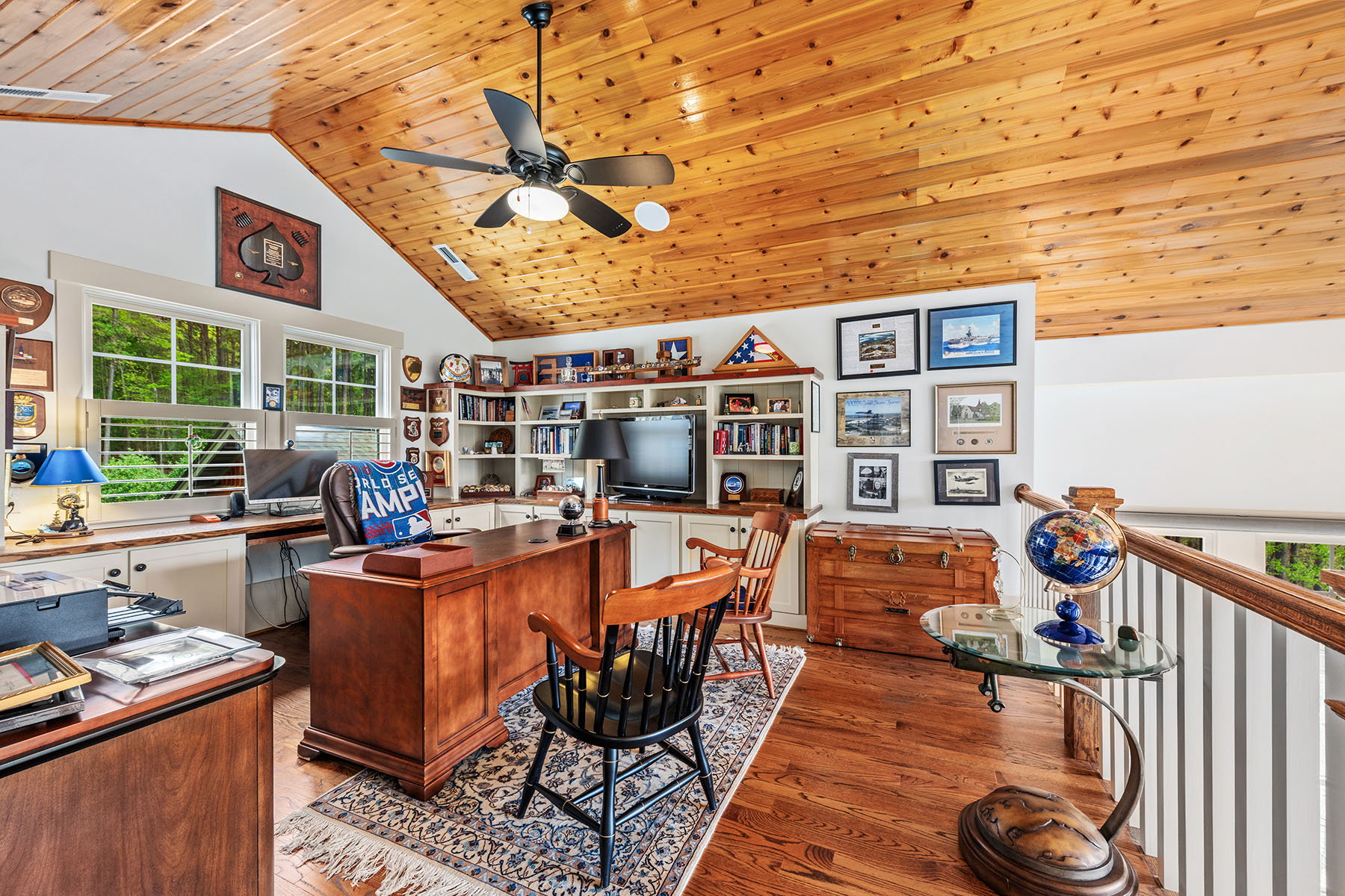 Upstairs, you'll find two generously sized bedrooms, each with access to full baths, along with a stunning loft-style office featuring beautiful wood ceilings, creating a warm and inspiring space perfect for working from home or relaxing with a view.