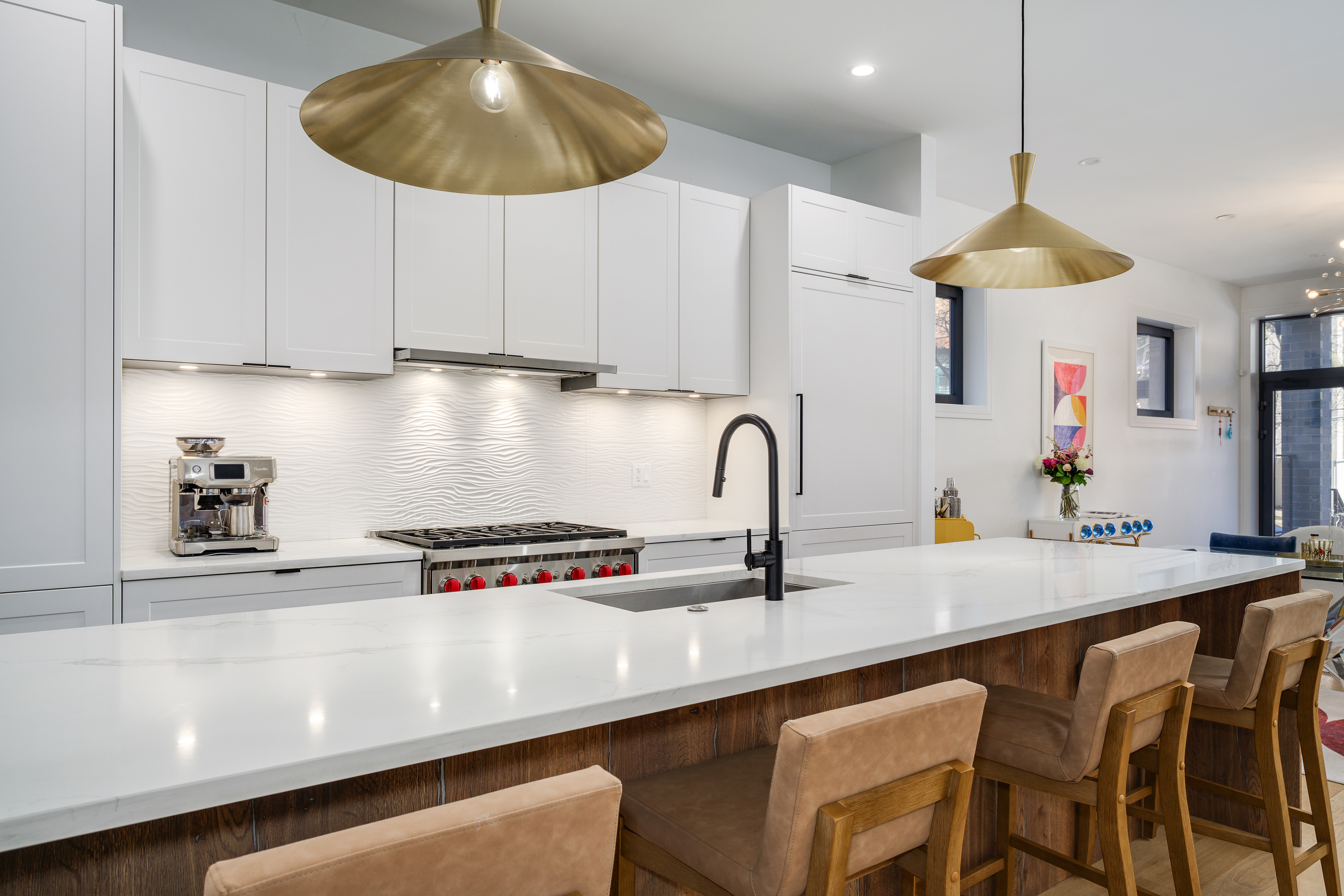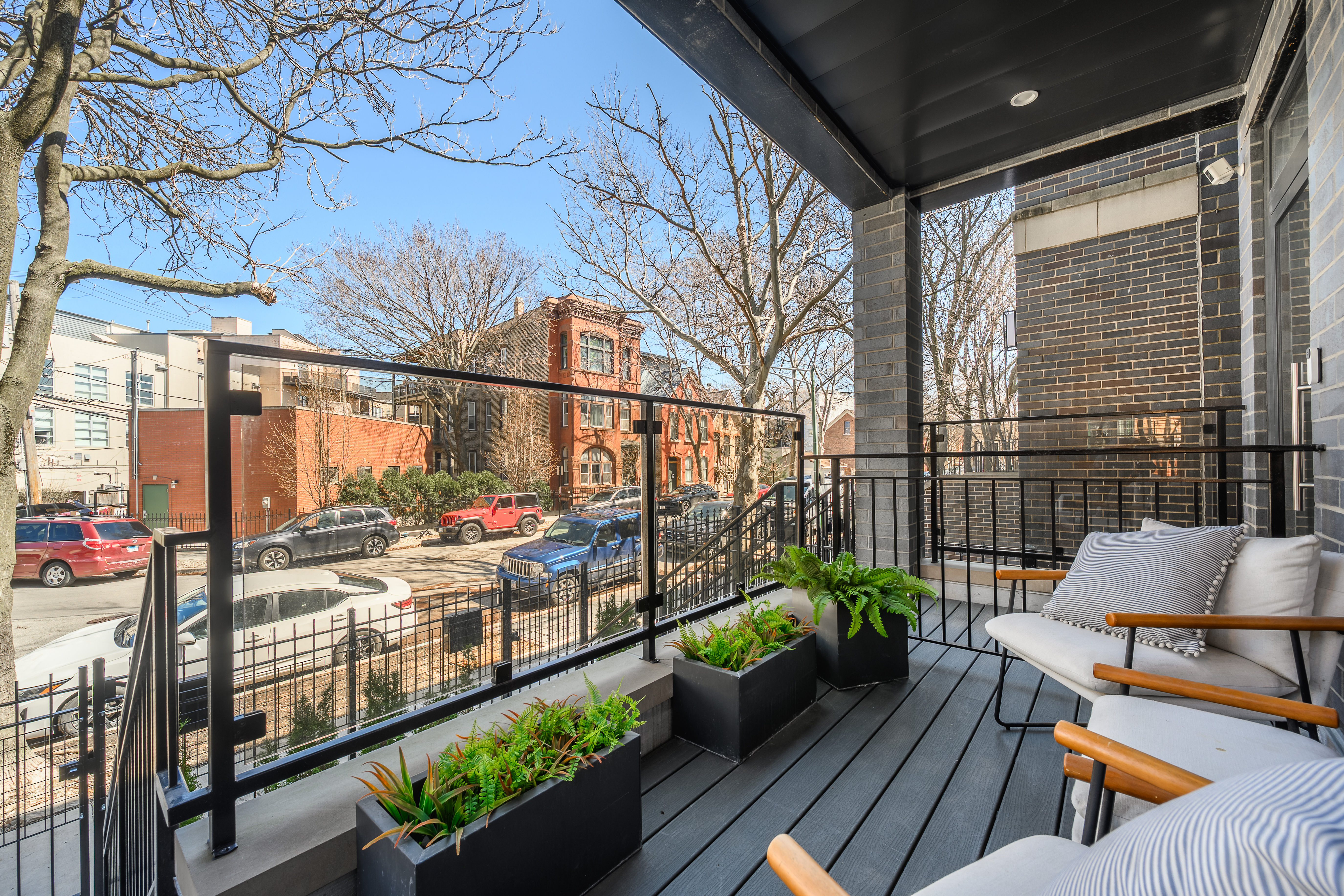 Spacious and Stylish 3 bedroom/2.1 bath duplex-down in an A+ Wicker Park location! Built in 2023 (Volo Development), this stunning home showcases an open living concept ideal for both entertaining and modern city life. Featuring an expansive kitchen with custom designed white shaker cabinets, Sub-Zero and Wolf appliances, quartz countertops and full height backsplash. The kitchen is flanked by a formal living room at the front of the unit that leads to a covered front balcony AND a cozy family room with a gas fireplace, built-in cabinetry and access to the rear deck and private garage roof deck. The garage deck is fully finished with a pergola, heaters, lighting and planters. The lower level has three spacious bedrooms. The primary suite has two separate closets and a luxurious en-suite bath with 6' soaker tub and glass enclosed steam shower and a carefully curated tile selection. Bedroom two and three both fit queen-size beds and have ample, organized closets. The lower level also has an additional full bath and laundry center. Other interior finishes include Boen wide plank hardwood floors throughout, contemporary trim package, solid core interior doors, radiant heated floors on the lower level, Ring alarm system with four camera and door/window sensors, UV air purifier, upgraded dehumidifier, custom window treatments and light fixtures. Walk to everything in Wicker Park & Bucktown including the CTA Blue line, restaurants, bars and shopping. Top rated Burr elementary school district. EXTRA-WIDE garage parking and a massive private storage unit with shelving included.