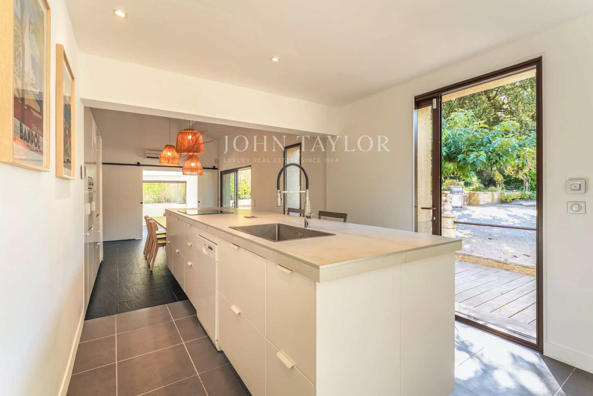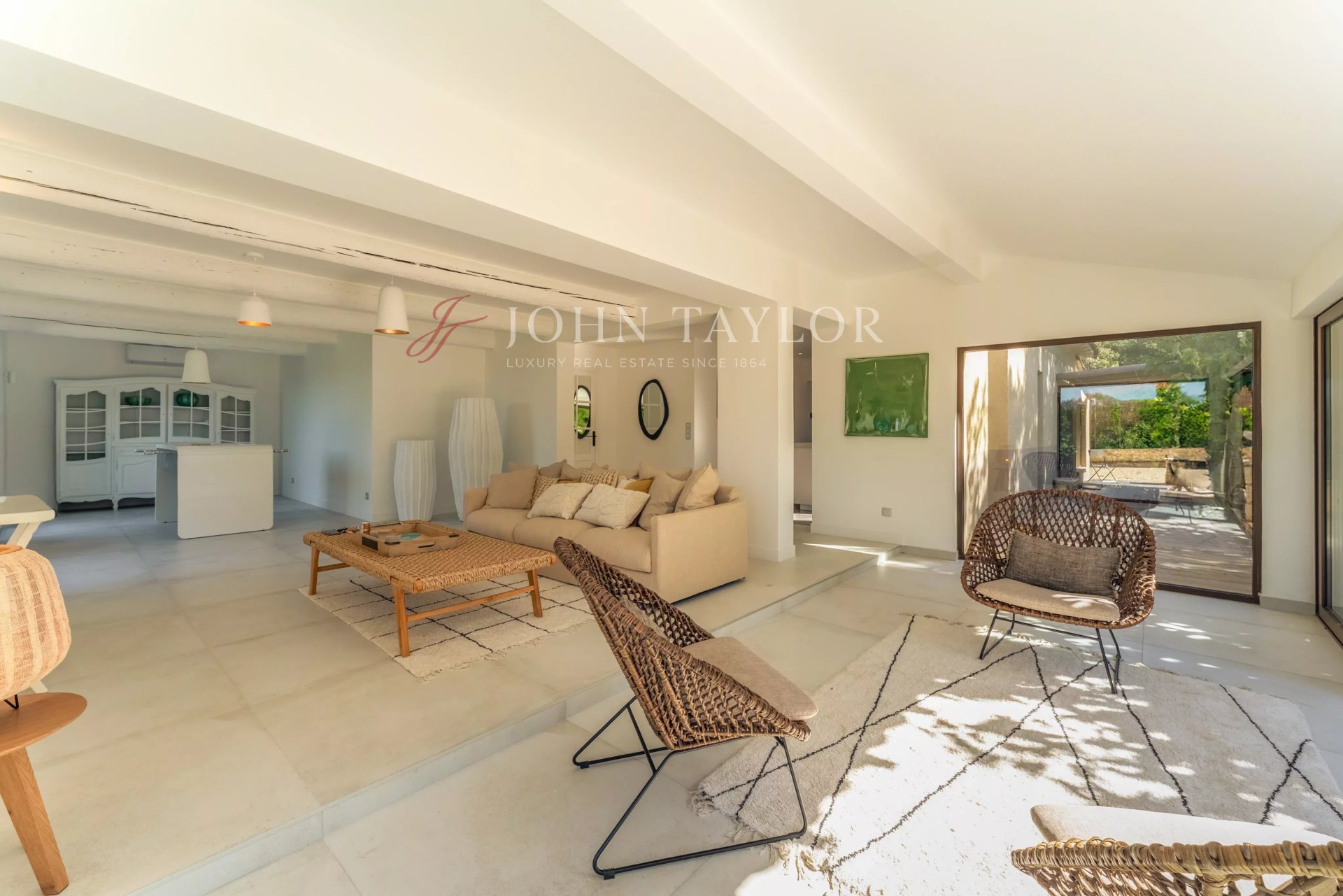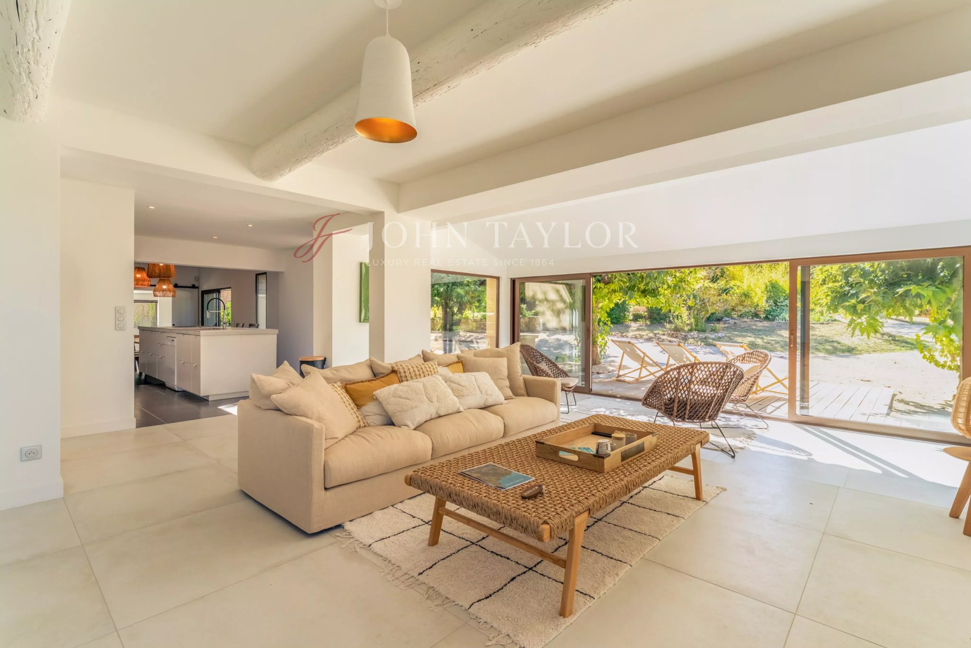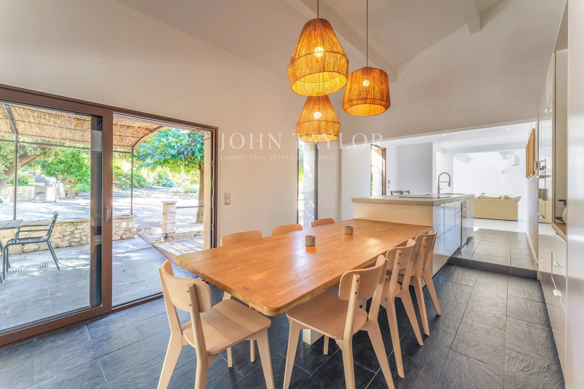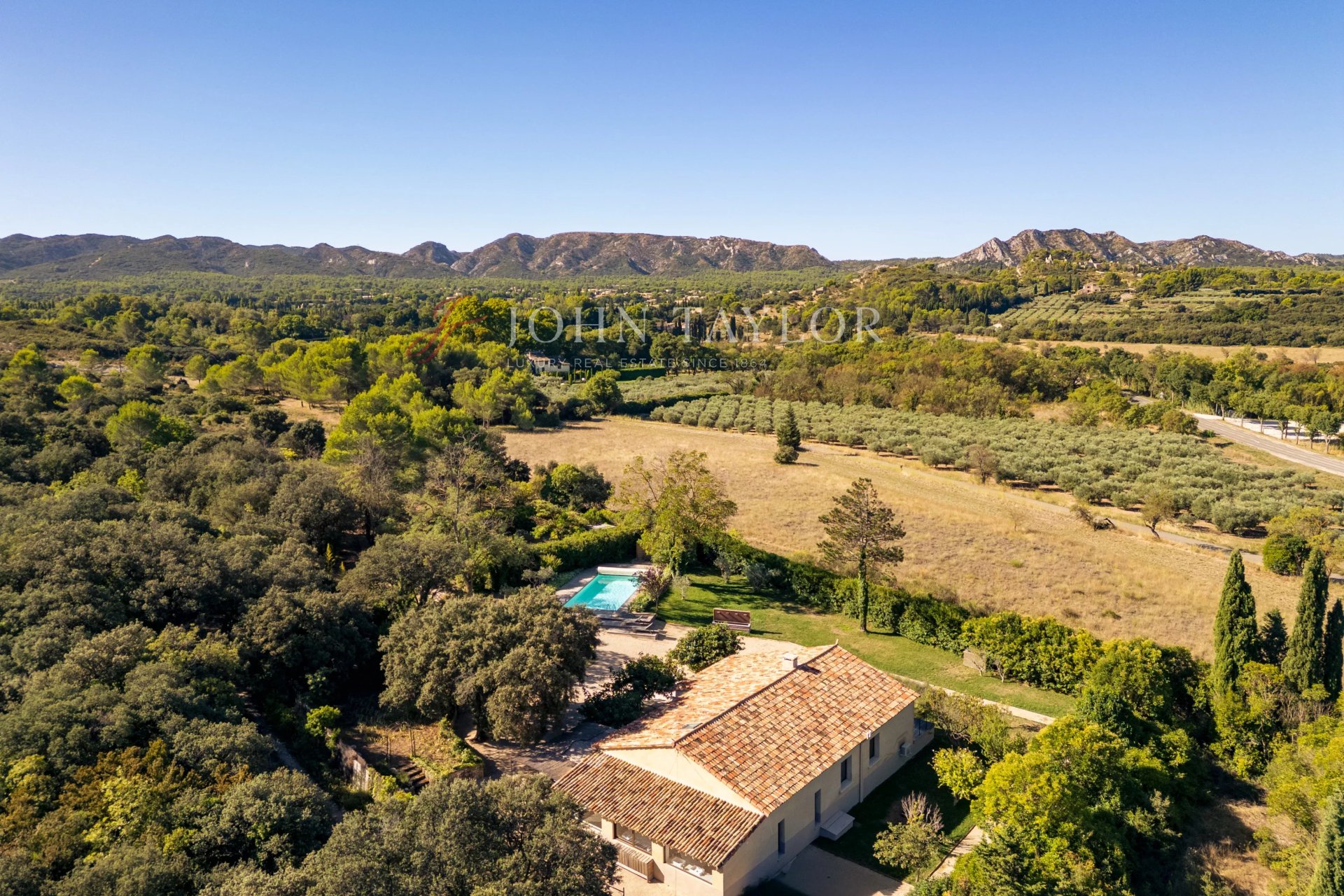 A short distance from Eygalières, where nature whispers its sweetest secrets, lies an exceptional property. An elegantly renovated residence, bathed in golden light, offering captivating views of the Alpilles, with their majestic and timeless silhouettes.This mainly single-storey house opens onto a spacious double living room, punctuated by large bay windows that open onto a shaded terrace, where every moment becomes an invitation to contemplation. A bright and functional fitted open-plan kitchen completes this harmonious living space.On the ground floor, a spacious master suite, a suite with a shower, and two elegant bedrooms share a bathroom, offering a perfect balance between privacy and conviviality. Upstairs, an additional bedroom, nestled under the eaves, has its own bathroom, offering a haven of tranquillity.Surrounded by a fragrant pine forest, the property is nestled in a green setting, offering captivating views of the Alpilles mountain range. A Mediterranean garden, filled with generous plant species, houses a 10 x 5 metres heated swimming pool, bordered by a teak deck, inviting you to relax and daydream.A short distance from Eygalières, where nature whispers its sweetest secrets, lies an exceptional property. A renovated old house, bathed in golden light, offering a captivating view of the Alpilles.The grounds, covering more than 8,000 m², are a haven of peace where every detail has been designed for your well-being: reversible air conditioning, heated swimming pool, technical room, new plumbing and electricity, automatic watering system, garden shed, double glazing, new window frames, and mains water as well as canal water for the garden.