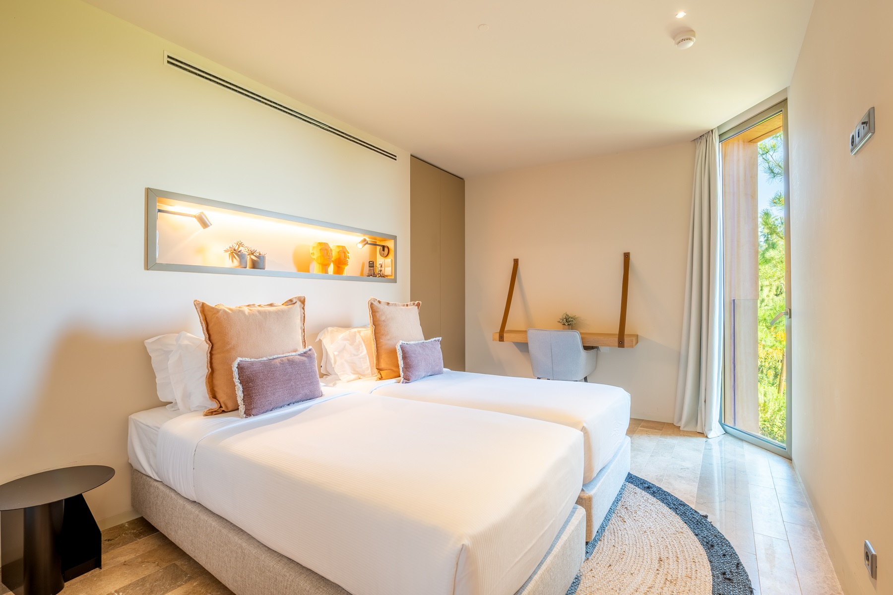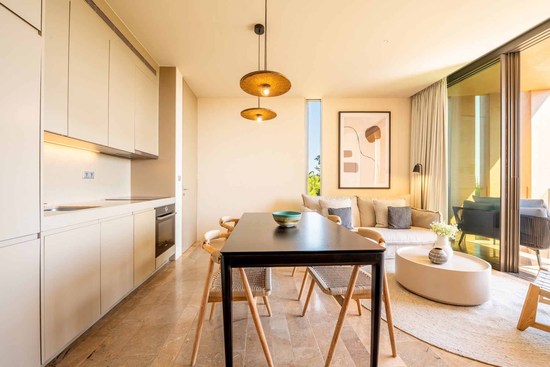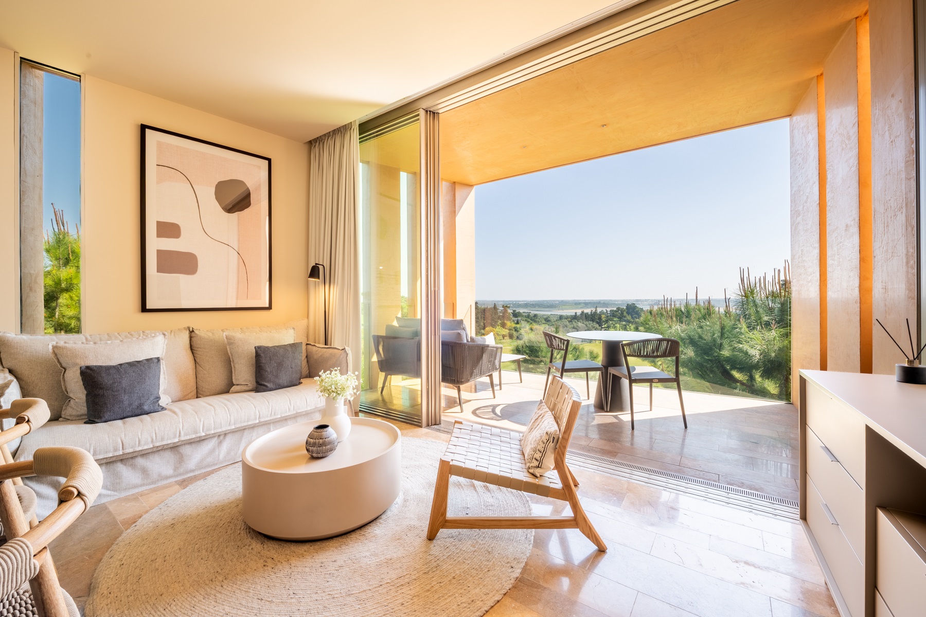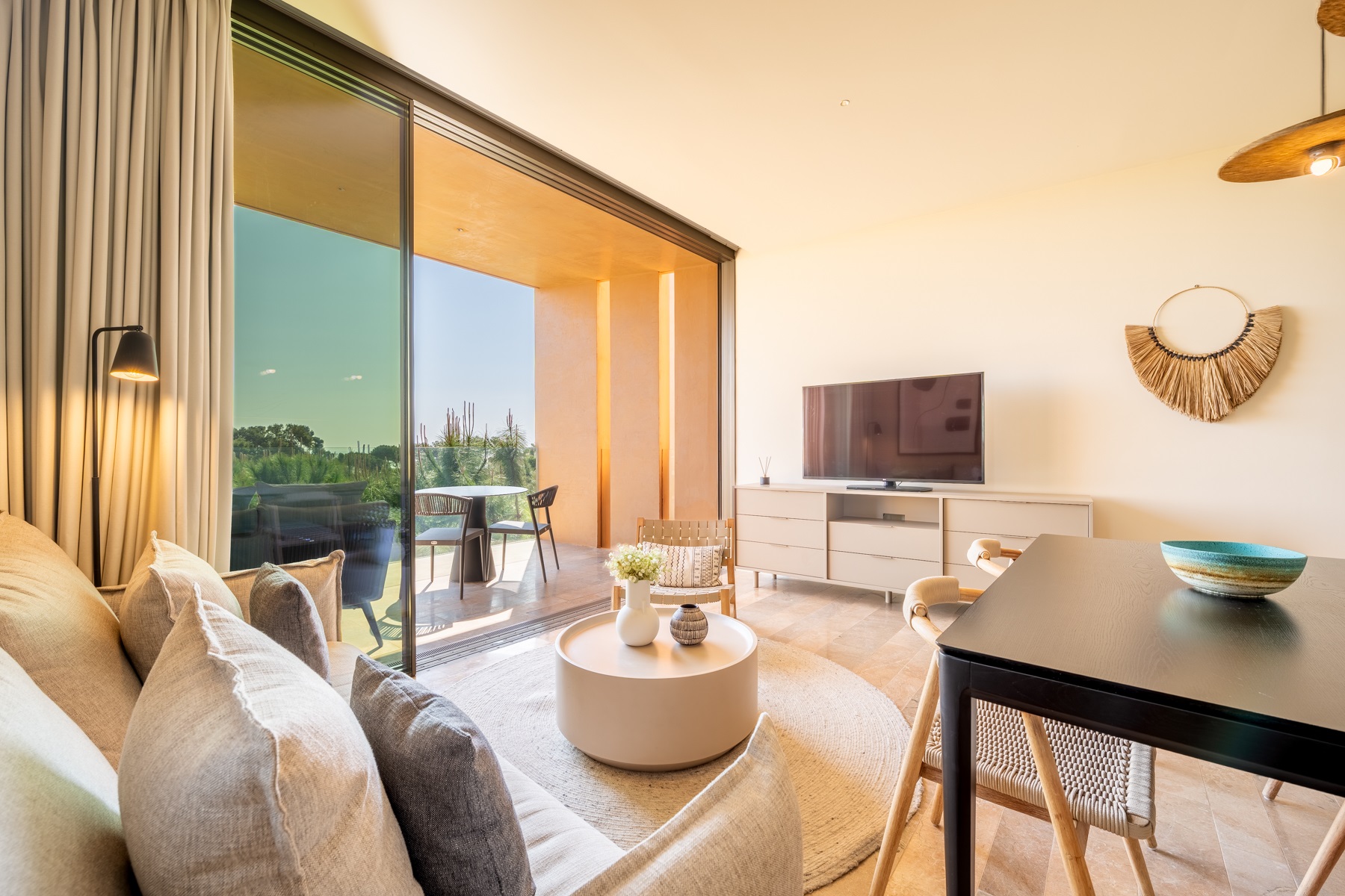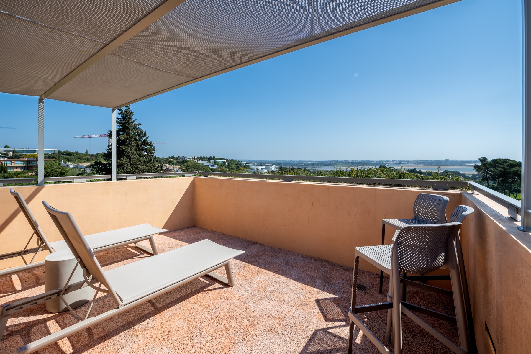 This Signature two-bedroom duplex apartment with private rooftop at Palmares Ocean Living & Golf Resort, completed in 2023 and offering 151.60 sqm of gross construction area, together with two private covered parking spaces and storage locker, was designed by RCR Arquitectes, winners of the Pritzker Architecture Prize, clearly represents a rare point where architecture, silence, light and horizon meet with complete natural harmony. Positioned at the at the beginning of the block, with no neighbouring unit on one side, this residence benefits from an uncommon sense of independence within the resort, where from its deep, architecturally integrated covered terraces, the view unfolds across three distinct and continuous layers: the vibrant green of the golf course, the calm waters of the Ria de Alvor, and beyond, the Atlantic Ocean. There are no interruptions and no visual noise, only horizon. Here, light enters as an architectural material in its own right, shaping volumes and setting the rhythm of the spaces as it moves through the interiors throughout the day, transforming each moment inside the home into a different experience. Inside, the finishes reflect the quiet sophistication of the RCR architectural language, with natural stone, honest materials, continuous surfaces and balanced proportions creating an atmosphere of understated comfort and elegance. Underfloor heating ensures year-round wellbeing, while the bedroom areas extend naturally towards the exterior, allowing you to wake each day with the landscape as a permanent backdrop. On the upper level, the private rooftop terrace becomes a personal viewpoint over one of the Algarve’s most privileged natural settings. This is true luxury. Living here is not simply about being inside the home; it is about stepping outside and, within minutes, reaching Meia Praia, walking along the estuary to the oyster beds of the Ria de Alvor, heading down to the golf clubhouse and its Michelin-starred restaurant for lunch overlooking the ocean, or simply following the natural trails that cross the resort landscape. Within the condominium, two exclusive swimming pools for residents, active security, and professional management ensure peace of mind and a consistently high quality of living experience. Very few units combine an end-of-block position, a private rooftop terrace, two parking spaces, and uninterrupted views over the golf course, the estuary and the ocean. This is one of them.