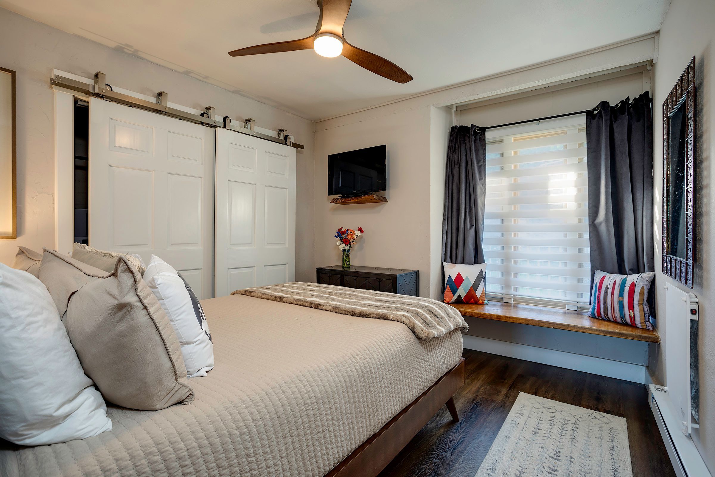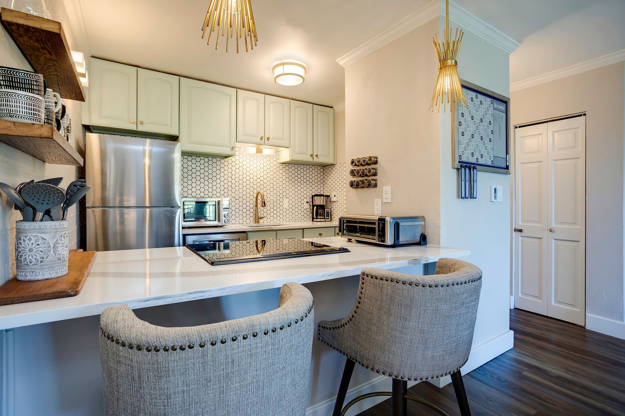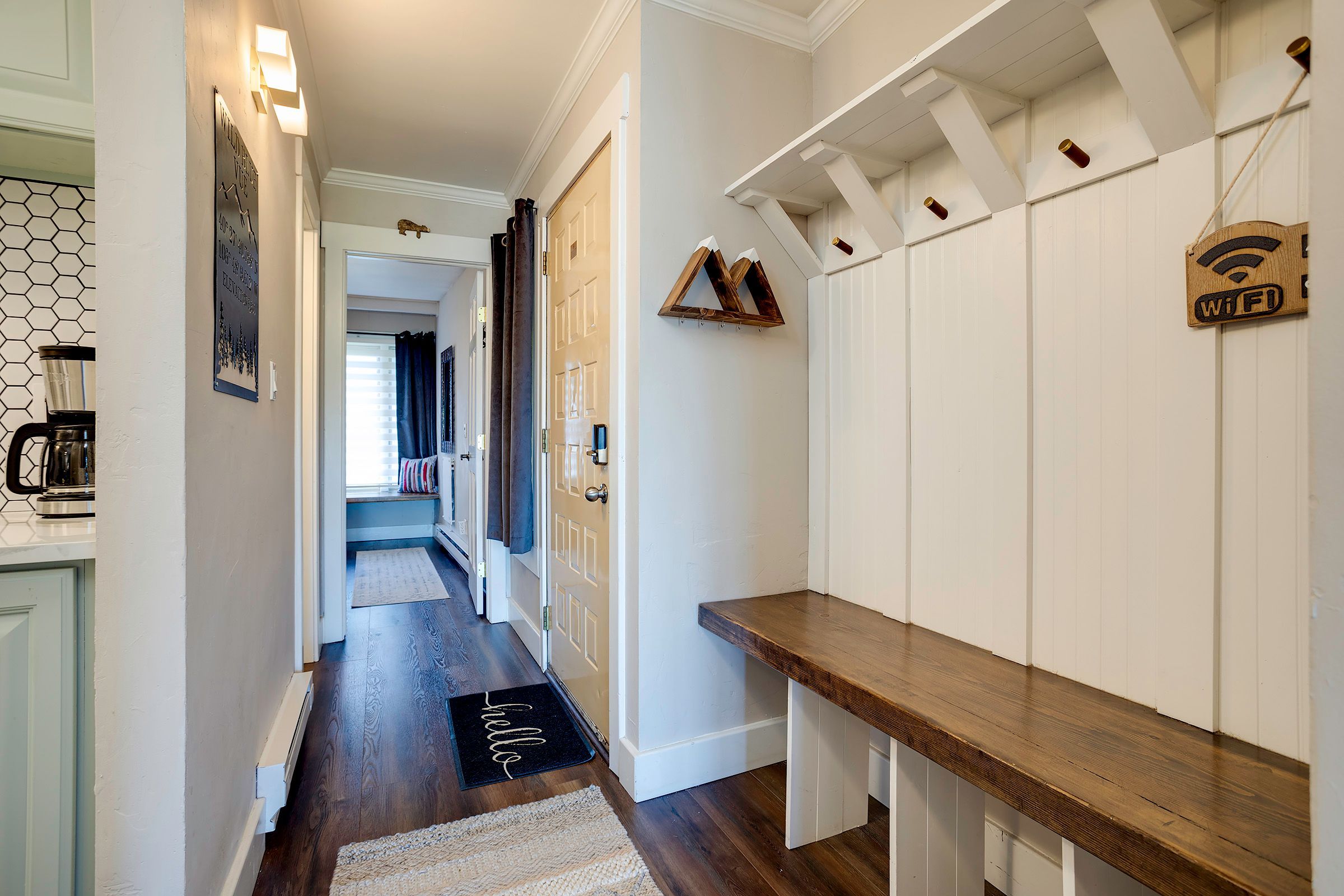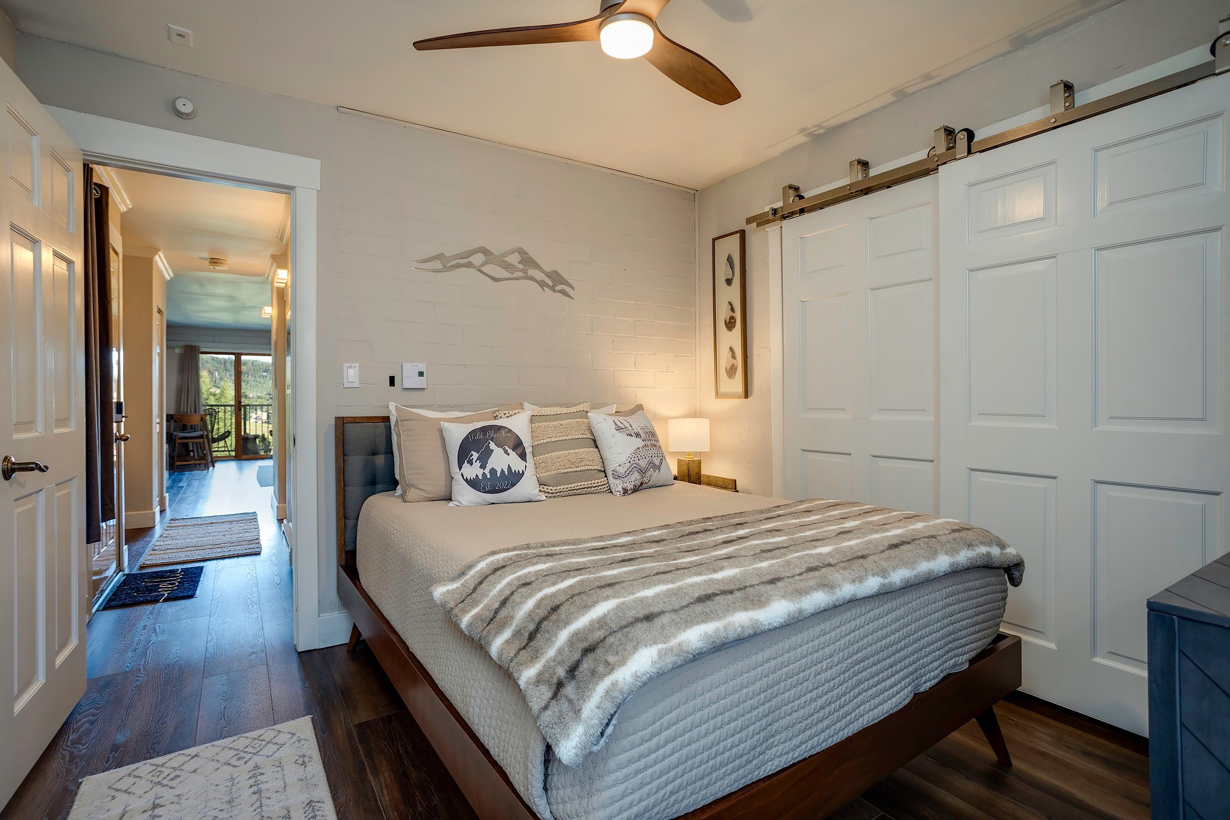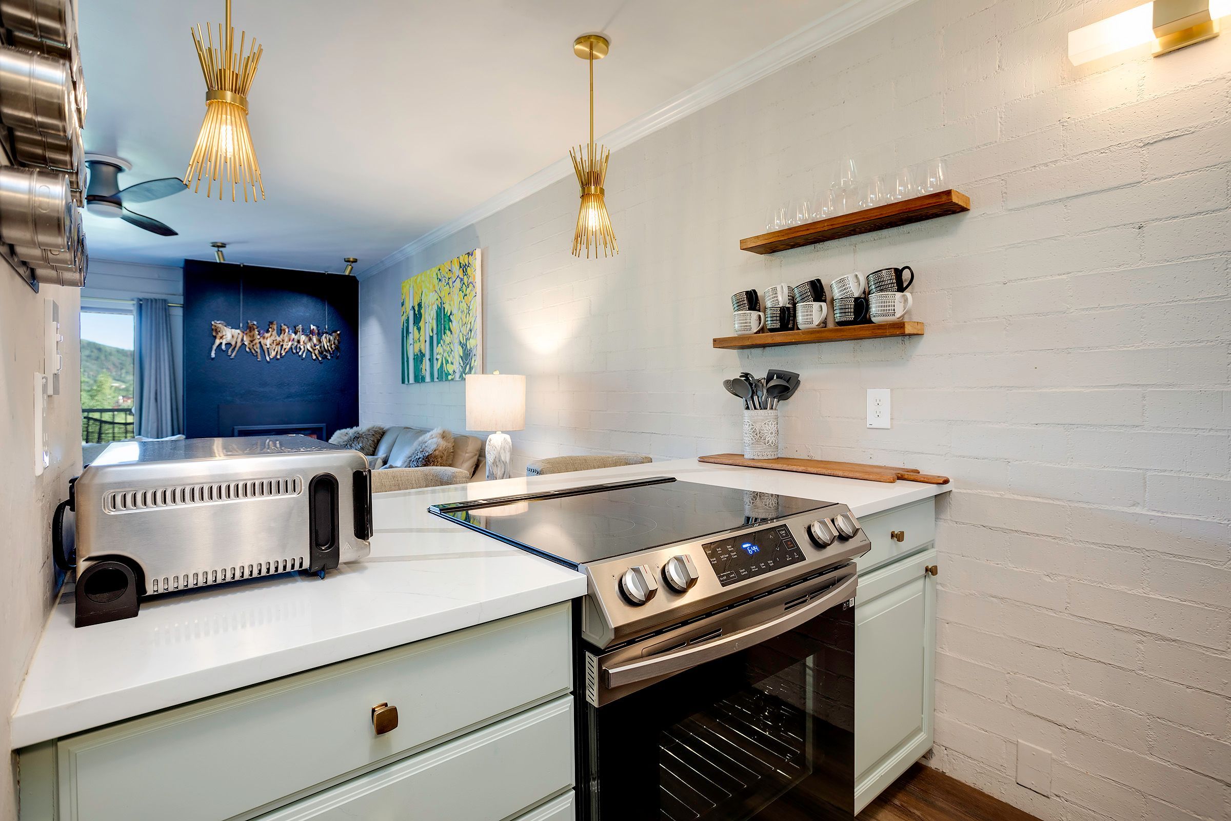 Tastefully updated and fully furnished, this turn-key one-bedroom, one-bath Ski Time Square condominium offers panoramic views of the Steamboat ski area and surrounding mountains. Offering exceptional flexibility in the short-term rental zone, it is ideal as a primary residence, mountain retreat, or investment property.Located across from the Steamboat Resort and steps from the free city bus, this condo delivers unmatched convenience to skiing, dining, grocery stores, and downtown Steamboat. Set in the heart of Ski Time Square, this condo also benefits from ongoing continued growth as the area sees renewed development, including new restaurants, retail, and ultra-luxury condominiums supporting long-term value appreciation.Access the unit via elevator or stairs. The electronic keypad entry offers enhanced security with access notifications. Inside, new luxury vinyl flooring seamlessly connects each room. The updated kitchen projects a clean, modern look with quartz countertops, stylish tile backsplash, stainless-steel appliances, updated cabinets, breakfast bar, and artistic light fixtures. The spacious living area features space to relax and entertain and a striking floor-to-ceiling leathered granite fireplace, perfect after a day on the slopes, while the private balcony invites you to unwind with ski area views, stunning sunsets, and the calming sound of Burgess Creek. The bedroom features all-new furnishings, a cozy window seat, a ceiling fan, and generous closet space. Community amenities include private ski lockers, bike storage, laundry facilities, and a nearby spa and fitness building with hot tubs and sauna. HOA dues cover nearly everything, making ownership simple and stress-free. A gated parking lot next door offers easy access to one parking spot. Whether you are skiing, hiking, biking, or enjoying Steamboat’s vibrant year-round lifestyle, this location delivers access to the best in every season.