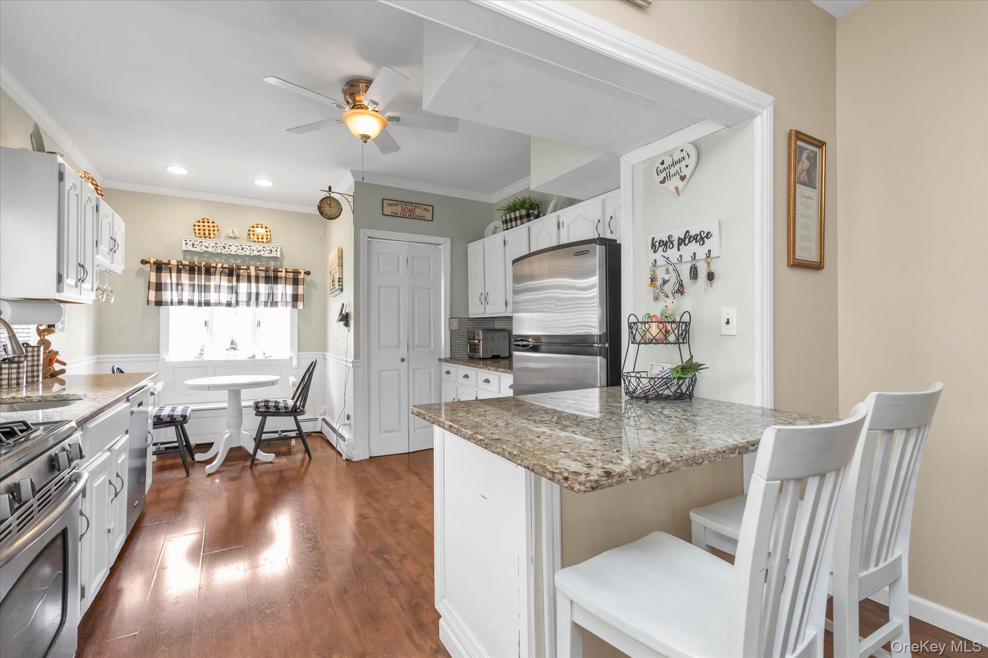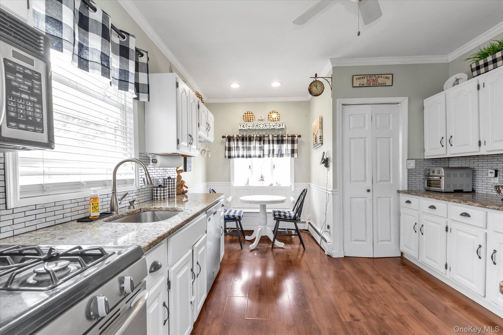 Welcome to this well-maintained 3-bedroom bungalow located in Baldwin. This home offers a functional and inviting layout, featuring an eat-in kitchen, living room, and dining room with an open flowideal for everyday living.The first floor includes two bedrooms, providing convenient single-level living options. A full unfinished basement offers ample storage and potential for future use.Key updates include a 5-year-old roof, a 6-year-old oil burner, and a new gas hot water heater. Very low taxes add to the overall affordability of this property. Property being sold as-is.Conveniently located near shopping, dining, transportation, and other local amenities.