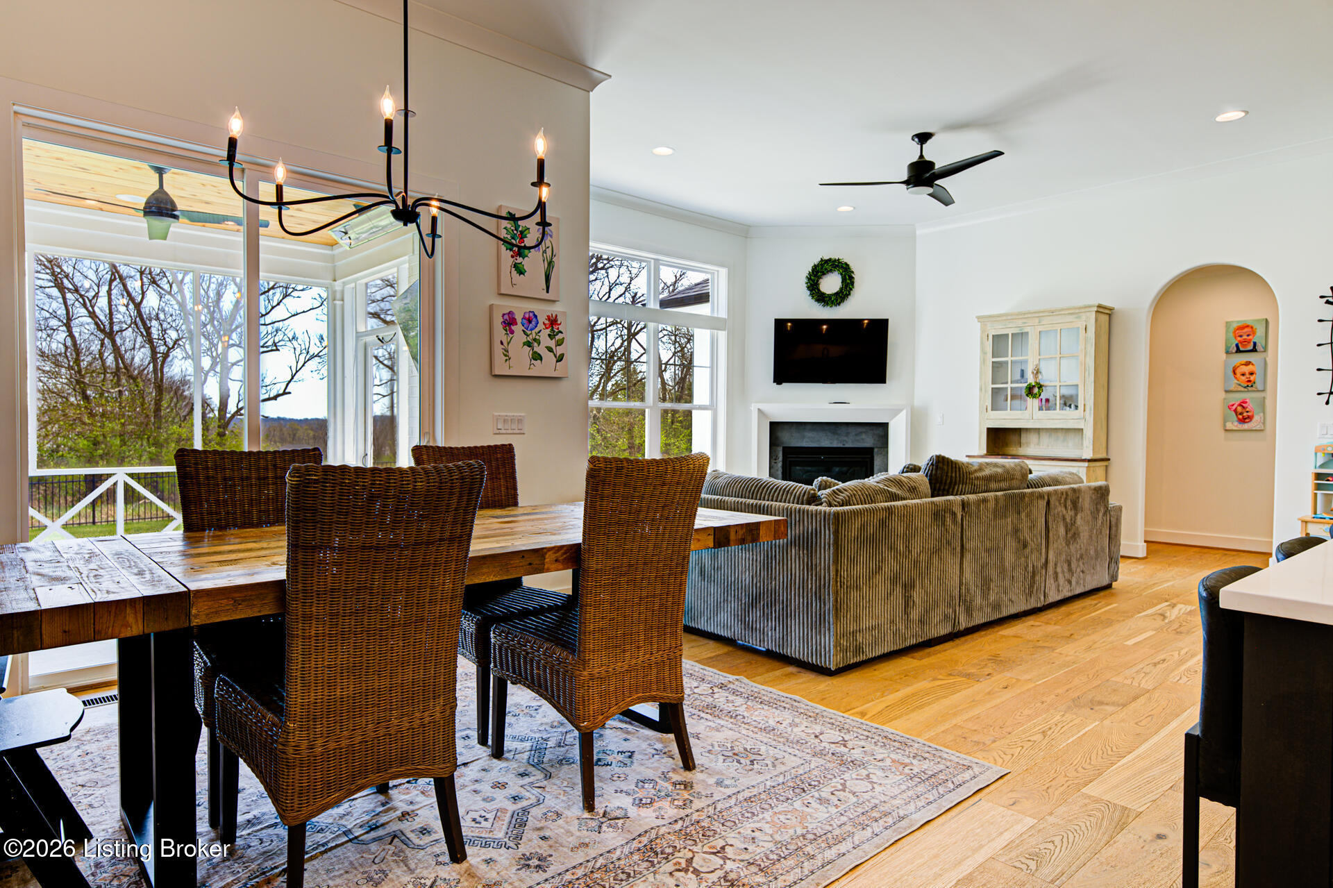 Beautifully crafted and only three years young, this custom-built Meridian home features a 3-car attached garage and sits on a private lot in the 2018 Homearama section of Catalpa Farms community. A spacious covered front porch welcomes you into a bright, open concept first floor with soaring ceilings and a seamless flow for everyday living and entertaining. The gourmet kitchen features an oversized island, stainless steel appliances - including a French door refrigerator, gas range, and built in Advantium microwave oven - and opens to the expansive great room with a gas fireplace and large windows that fill the space with natural light. The breakfast area leads to a cozy screened in porch overlooking the private, fenced backyard and wide open green space with beautiful views and walking trails to the neighborhood playground. Spacious patio is well equipped with natural gas line and power for outdoor cooking. The main level offers three generously sized bedrooms, including a luxurious primary suite with vaulted ceilings, a tiled walk-in shower, and a spacious walk-in closet with direct access to the first-floor laundry room. A custom mudroom with built-ins creates the perfect drop zone for busy households. Two additional bedrooms share a beautifully appointed full bath. Second level bonus room/loft could also be used as a 5th bedroom or an office with a full bathroom. The finished lower level adds even more living space with a large family room, a private guest suite with a full bath, and an unfinished area with built-in shelving for organized storage. Multiple zoned HVAC, water powered sump pump, exterior patio speaker, Tesla charger and additional EV ready outlet in garage, and irrigation system for ease of maintenance. Ubiquity wired, wireless network with Ubiquity security cameras. Many other thoughtful upgrades are found throughout from tray ceilings and accent walls to crown molding, high end fixtures, and designer finishes. Catalpa Farms offers residents a playground, dog park, walking trails, and a community pavilion.