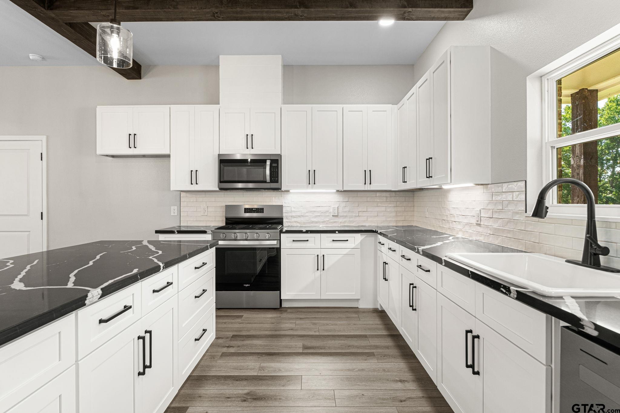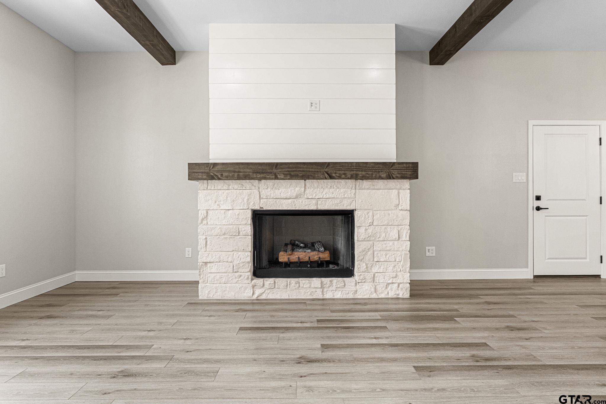 Wow! Stunning new home on 1 acre in a gated community in Lindale ISD! This home offers so many wonderful features, including energy efficient lighting throughout, spray foam insulation, decorative faux beams in the great room, vent free gas log fireplace, gas range, granite & quartz counters throughout, massive island in the kitchen with seating space for 4, huge walk-in pantry, extra storage and folding top in laundry room, gorgeous tiled shower in the primary bath, and a private door from your primary bedroom to the back patio. Schedule your private showing for your next new home today!