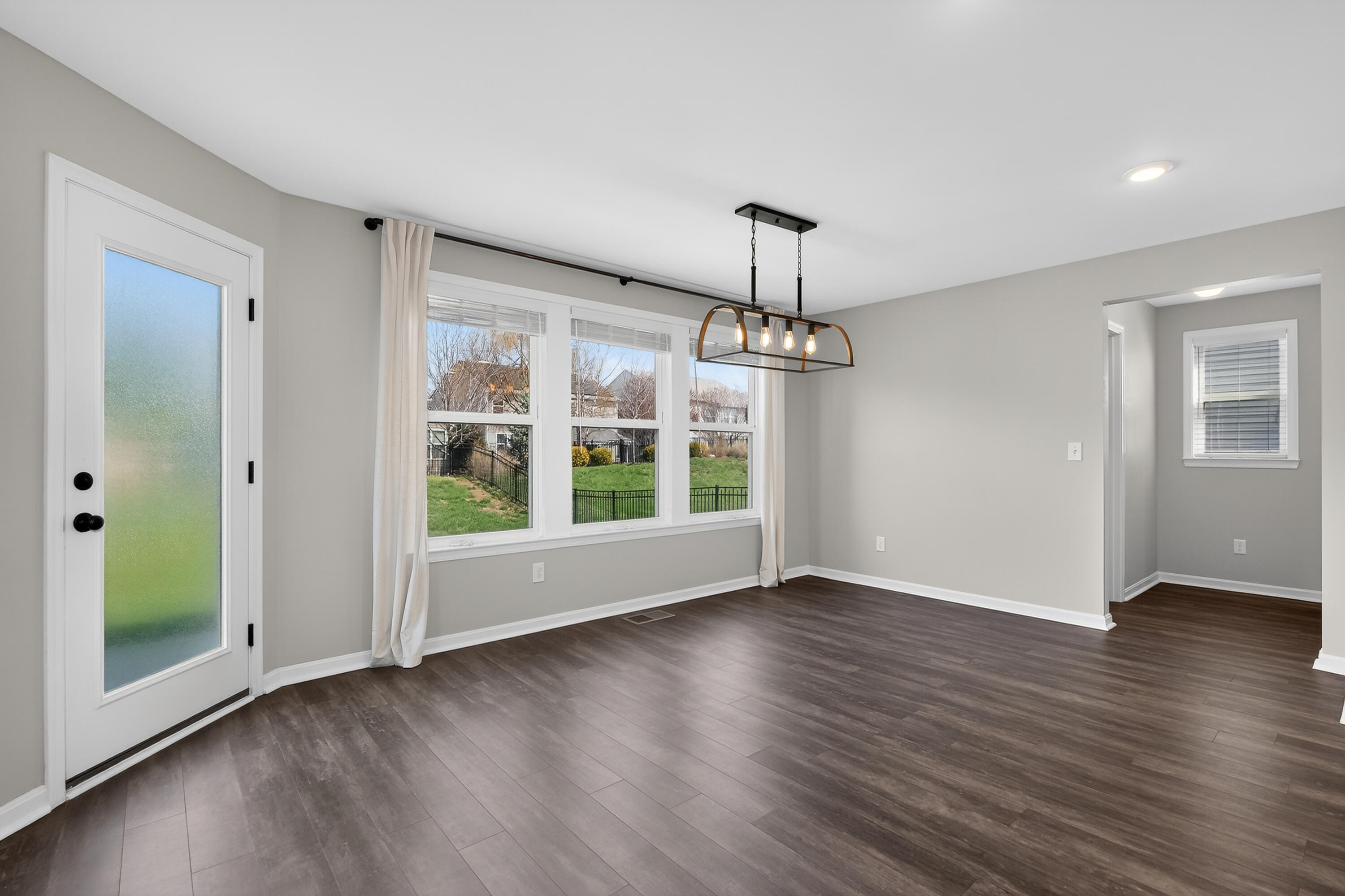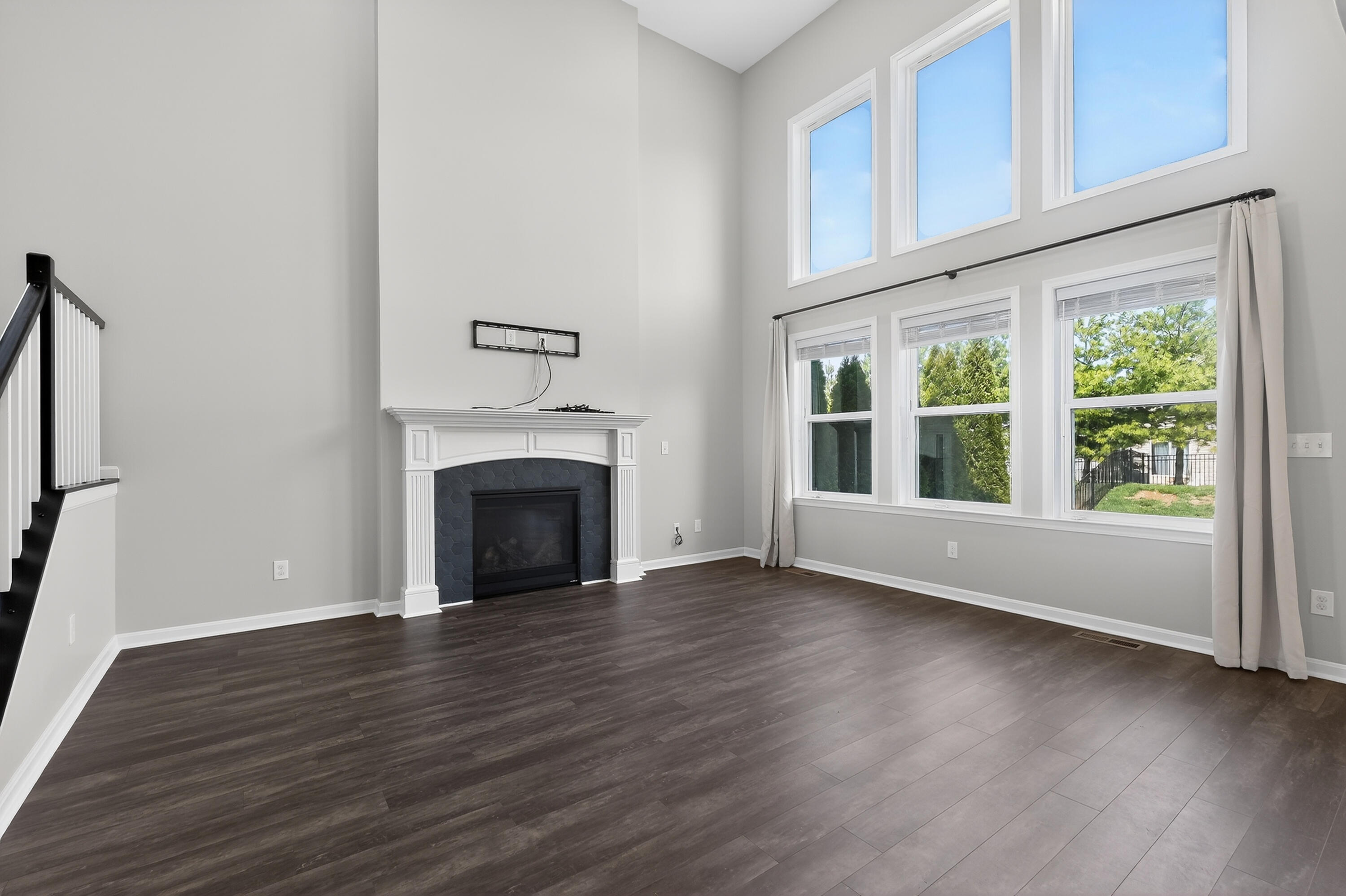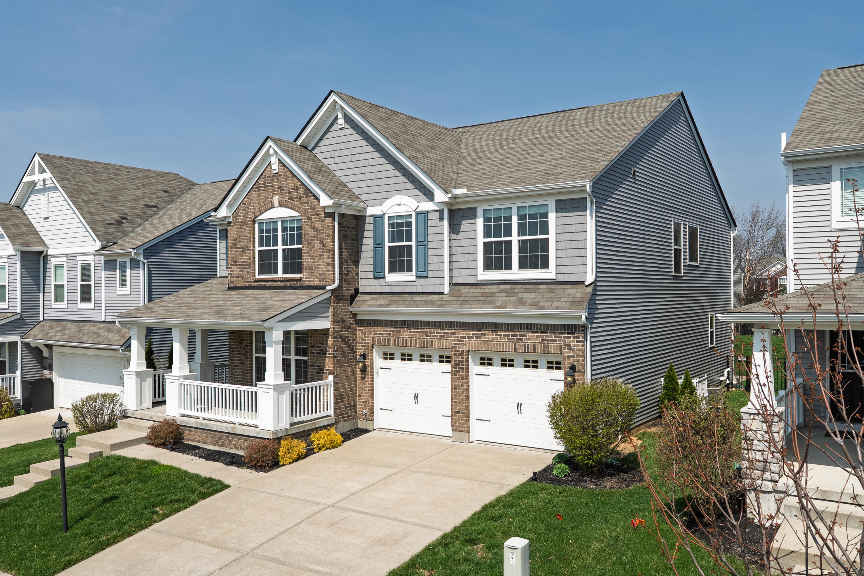 Move-in ready Drees-built Wembly model offering three finished levels in the highly sought-after Harmony community in Union, known for its charm, walkability, and strong sense of community. From the moment you arrive, the covered front porch creates a warm and inviting first impression. Inside, the entry foyer leads to a private office located just off the entry at the front of the home featuring custom moldings and built-in bookcases, along with a convenient powder room, then transitions into the main living space. Luxury vinyl plank flooring runs throughout the first floor with the exception of the office. The two-story great room is filled with natural light and features a gas fireplace and open staircase, flowing into the kitchen and breakfast area. The kitchen offers granite countertops, subway tile backsplash, white wood cabinetry, stainless steel appliances including gas range and hood, and a large pantry. The breakfast room walks out to an expansive patio spanning the width of the home and a fenced backyard. The second floor features a spacious laundry room and four bedrooms, all carpeted with ceiling fans. Three guest bedrooms offer generous space including two with walk-in closets, along with a hall bath featuring a double vanity and tub shower combo. The owner's suite features a double tray ceiling, custom moldings, walk-in closet, and a timeless black and white bath with tiled shower, glass enclosure, and soaking tub. The finished lower level offers a large family room, half bath, and two storage areas. Located minutes from Union Promenade, I75, parks, schools, and everyday amenities with the ability to walk or bike to dining, shopping, and more. Harmony amenities include pools, clubhouse, exercise area, and community park.