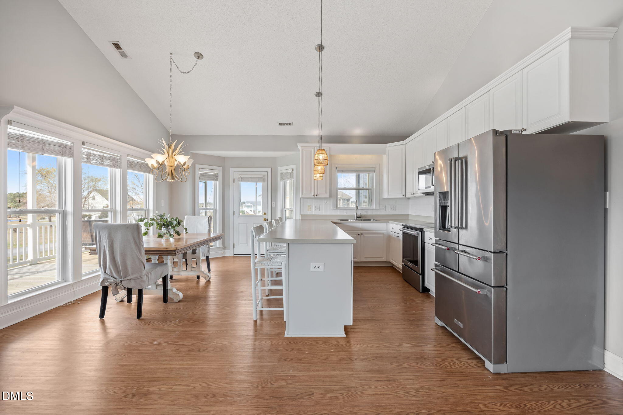 Whether you're looking for a forever home or a beach home away from home, this big, bright house with gorgeous sound views has it all. Enjoy said views from the deck, screened porch, or after a dip in your own private saltwater pool. Inside, this 3-bedroom home (per septic permit) lives like a 5-bedroom home (3 bedrooms upstairs + 2 flex spaces that can easily be used as bedrooms downstairs). On the main level, enjoy gorgeous sunsets from the spacious great room, featuring an open living room, dining room, and kitchen. The super clean kitchen is bright and neutral, ideal if you love a sleek, minimal look, or the perfect blank canvas if you want to customize it later. An oversized peninsula provides additional seating for guests. There is a corner fireplace in the living room for cozy days and evenings, and a screened porch off the dining room, perfect for entertaining or enjoying the view and breeze with a cup of coffee. The home also features pretty molding and trim work on the main level. Just a 10-minute drive to the Emerald Isle bridge, your new home may attract a guest or two, and with 5 bedrooms, this house can handle it. A large guest bathroom and two generously sized guest bedrooms are upstairs and feature lush new carpet, as does the primary suite located at the back of the house for maximum privacy. The suite features soaring ceilings, 2 walk-in closets, and a lovely bathroom with a tub, large shower, and double sinks. Downstairs, there are two huge rooms, which could be additional bedrooms, or a den, studio, pool room, home theater, gym, etc. The downstairs bedrooms, are separated by a huge bathroom and laundry room + pool entrance (for convenience). Just 3.5 years old, the fiberglass saltwater pool is both beloved and low-maintenance. Perfect for laps or relaxing, the pool is fenced in and has plenty of space around it for entertaining or lounging and enjoying a good book. Also downstairs, find a huge, deep garage (sellers fit two cars + a golf cart inside), perfect for storage or hobbies and projects. The garage is also home to the control panel for the lawn irrigation system, featuring sprinklers in the front and back yards. HOA is $300/year and includes use of the dock, community/public areas, road maintenance, and community/public area maintenance. While the priceless view and access to the Intracoastal Waterway are huge draws (Enjoy kayaking? You're in luck if so!), the location has some other great perks. Want the luxury of a coastal property without the stress and worry of an on-the-beach house? The property is a mere 3 houses from the water, so you can enjoy the view without the fear of flooding. The best of both worlds! It's also in a coveted school district (White Oak Elementary, Broad Creek Middle, Croatan High) and just a few minutes from the new Western Carteret County Boat Launch Facility and The Center for Coastal Protection and Restoration (two new, long-awaited projects worth looking into). Whether you're looking for a home base for your Beaches of North Carolina Adventures, a place to hang your sunhat all summer, or a forever home with breathtaking year-round views, 236 Hickory Shores Drive is a can't-miss. Hive agents, please call the listing agent at 919-636-1885 or email her to set up showings. The listing agent is related to the seller. Recent updates: new carpet, fresh neutral paint throughout, new HVAC ~ 2021, new pool ~ 2023, and new fence ~ 2023. The property was recently appraised, and the listing agent is happy to share more. It's a cut above the competition in style and features. It's move-in ready, so you have time for what matters most to you, whether it's relaxing by the pool, entertaining, or enjoying nearby Mother Nature. 236 Hickory Shores is ready for your new memories!
