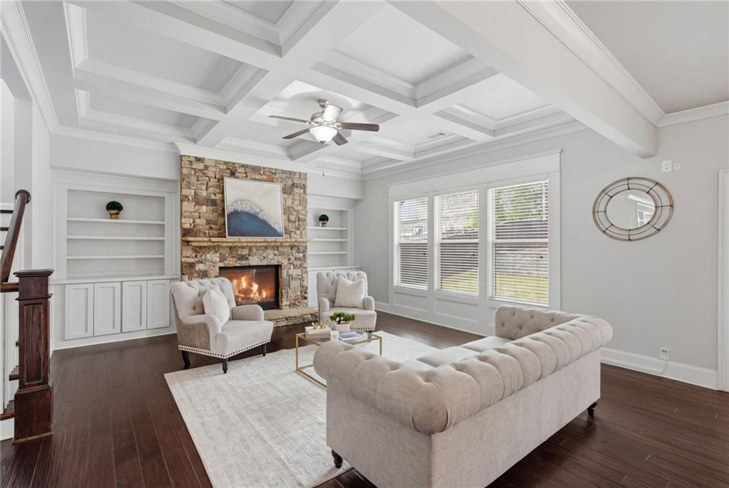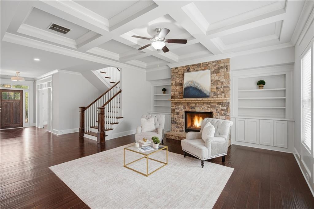 Welcome to this exquisite craftsman style Hawthorne home located in the highly sought after Oak Grove Manor subdivision, zoned for top rated Oak Grove Elementary! This impressive 2016 build offers 5 bedrooms, 4 bathrooms, and a 3 car garage complete with an electric car charging station. Step inside to soaring coffered ceilings and gleaming 5" wide maple hardwood floors that flow throughout the main level. The chef inspired kitchen features custom soft close cabinetry, stainless steel appliances and a stunning island that opens to a warm and inviting family room with stone fireplace and built in bookshelves. Host effortlessly in the formal dining complete with a dry bar. A private main level guest suite with full bath is perfect for visitors or a dedicated home office. Upstairs, you will find a spacious primary suite, three generously sized secondary bedrooms, and an incredible bonus room fitted with surround sound for the ultimate in home movie experience. The backyard has been beautifully elevated with a custom brick retaining wall, creating a polished and functional outdoor living space. Crown moldings throughout. Minutes from Emory, CDC, LaVista corridor and major transportation. This home truly has it all!