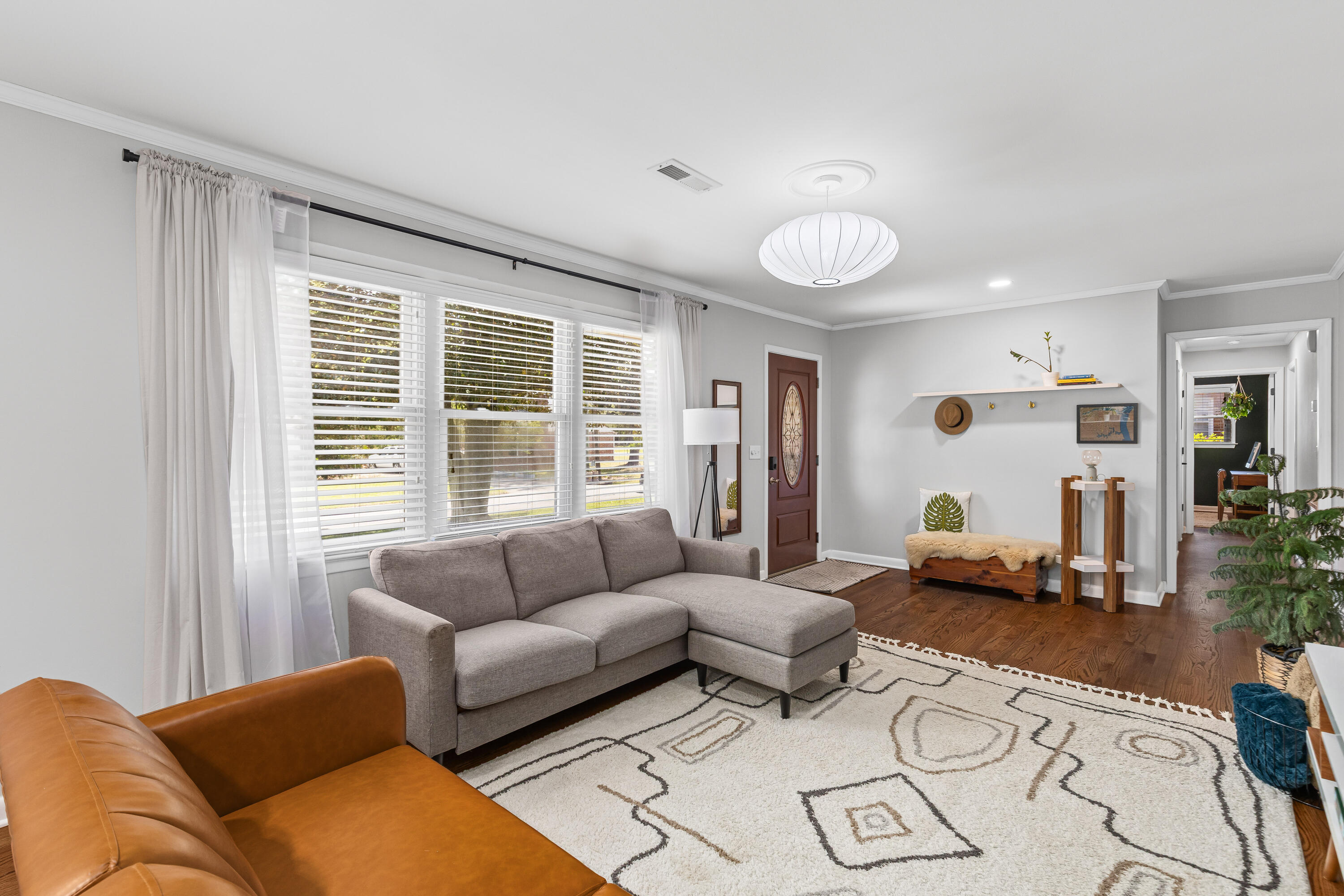 Welcome to 4929 Ashby Avenue, located in one of the Charleston area's most sought-after neighborhoods, Park Circle. This beautiful 3-bedroom, 2-bathroom ranch offers over 1,800 square feet of thoughtfully upgraded living space with modern luxuries, while still maintaining its original charm.Pride of ownership is evident from the moment you arrive, from the beautifully maintained landscaping to the overall upkeep of the home. As you enter, you're greeted by a formal living space with hardwood flooring that runs throughout. From the front living area, you'll pass into the updated open kitchen and eat-in dining space. The kitchen features shaker-style cabinetry, granite countertops, a built-in microwave, and stainless steel appliances.Just off the kitchen is a spacious living room highlighted by a large brick gas fireplace with wood mantle, flanked by custom built-in cabinetry and shelving. French doors provide an abundance of natural light and give access to your private backyard. Also connected to the kitchen is an attached one-car garage with epoxy flooring that also serves as a dedicated laundry space. At the front of the home are two guest bedrooms along with a full bathroom that has been updated with new lighting and vanity. At the end of the hall, you'll find the primary suite adorned with custom wood trim accents and featuring a luxurious en-suite bathroom with custom built-in shelving, mosaic tile flooring, and a beautifully tiled walk-in shower. Heading outside, the large 0.3-acre lot offers ample privacy, is fully fenced, and features mature landscaping along with a spacious patio area. The home is also located in an X flood zone, meaning no flood insurance is required. Additional upgrades and conveniences include a fully encapsulated crawl space complete with a dehumidifier and sump pump, updated plumbing throughout the majority of the home, a newly expanded driveway, and solar panels to help offset electrical costs. Located in the heart of Park Circle, this home offer an amazing location to everything in the community. The neighborhood is centered around a beautifully redesigned park featuring expansive green space, walking paths, and a 55,000 sq ft playground. Throughout the circle you will find popular restaurants, breweries, coffee shops, and local boutiques, creating a walkable lifestyle with plenty of dining, shopping, and entertainment nearby. All this while being just a short drive from Charleston and its historic downtown, waterfront, and beaches.