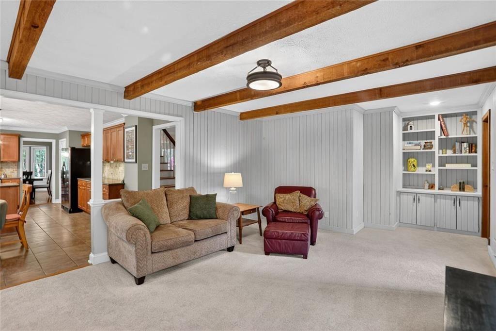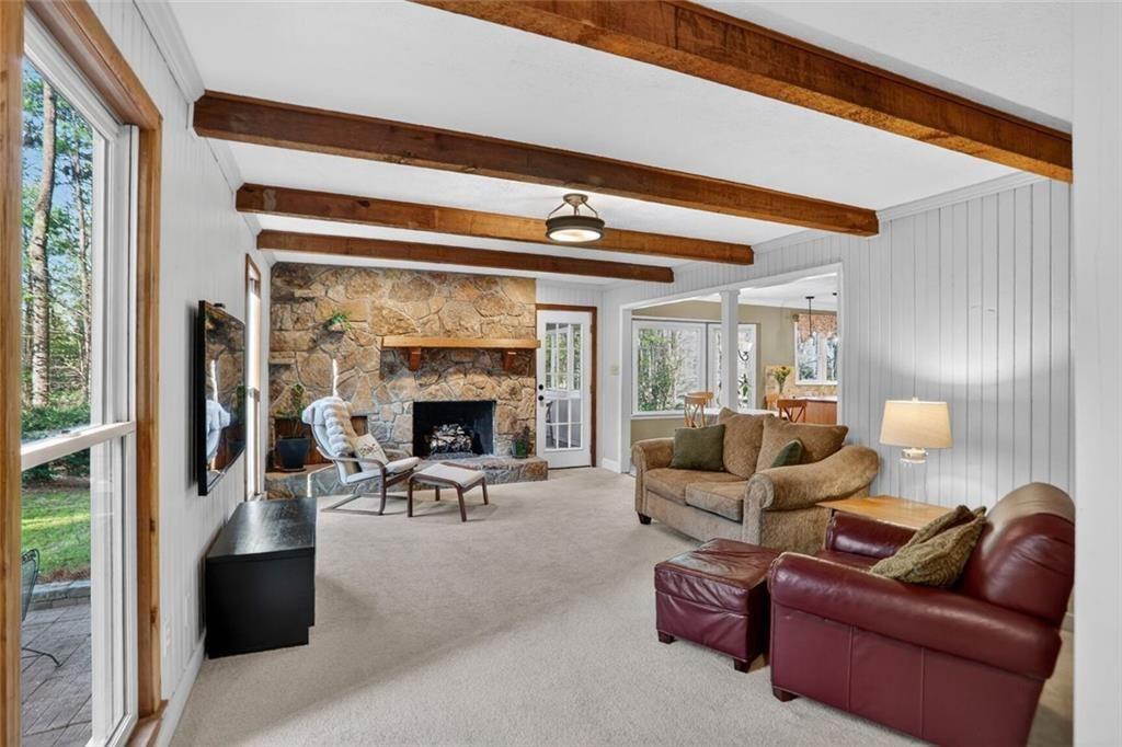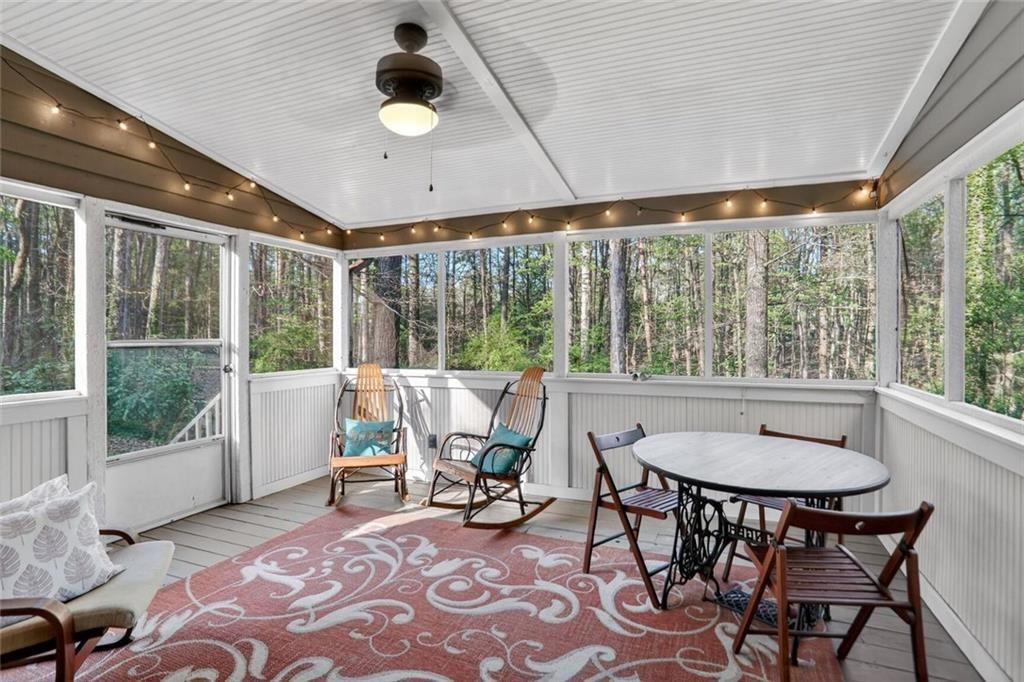 Tucked away on a quiet cul-de-sac in an exclusive Bowen Road enclave, this beautiful home sits on over an acre of private, wooded serenity with no HOA. Located in a small, tucked-away neighborhood surrounded by high-end homes, this property offers both privacy and convenience - just minutes from Historic Roswell, local shopping, and within walking distance to Blessed Trinity, Fellowship Christian, Roswell High, and Crabapple Middle, with zoning for Mountain Park Elementary. This move-in ready home features 4 spacious bedrooms and 3 fully renovated bathrooms, including a luxurious primary suite complete with an ensuite bath, separate his/her closets, one huge walk-in closet, and cozy fireplace. Large secondary bedrooms provide ample space, while a versatile bonus room can easily serve as a fifth bedroom, office, or flex space. The main level showcases hardwood flooring and stairs, crown molding throughout, and a beautifully detailed dining room with custom wainscoting. The kitchen offers a picture window overlooking the wooded backyard, a pantry, and opens to a warm and inviting hearth room. With three masonry fireplaces - one on each level - this home blends charm and comfort throughout. Enjoy the outdoors from the welcoming wraparound front porch or the screened porch and patio that overlook a park-like backyard, complete with a stone fire pit and plenty of space to play and entertain including a creek that winds through the wooded landscape, creating a truly serene setting. The finished basement adds even more living space with a tv room/theatre space, pool table, an exercise room, large storage area, and exterior entry. Additional highlights include large closets throughout, a mudroom and laundry area with additional back staircase and a 2-car garage with a workshop bench and large walk-in storage closet with garage refrigerator. Major systems are in excellent condition, including an architectural shingle roof (5 years old), updated HVAC, double-pane windows, and a well-maintained water heater and fresh interior paint throughout. With welcoming neighbors and a true sense of community - gathering on holidays and even snow days - this is a rare opportunity to enjoy peaceful living in one of Roswell's most desirable locations.