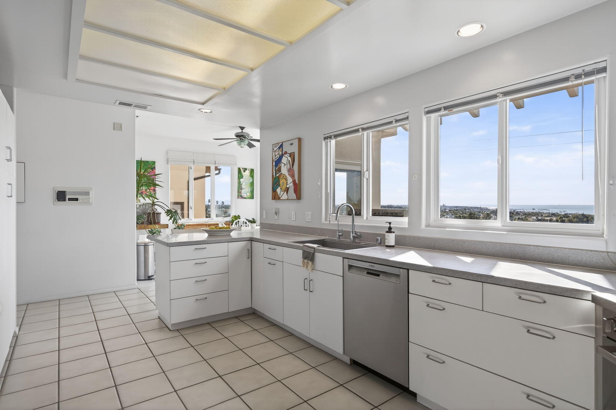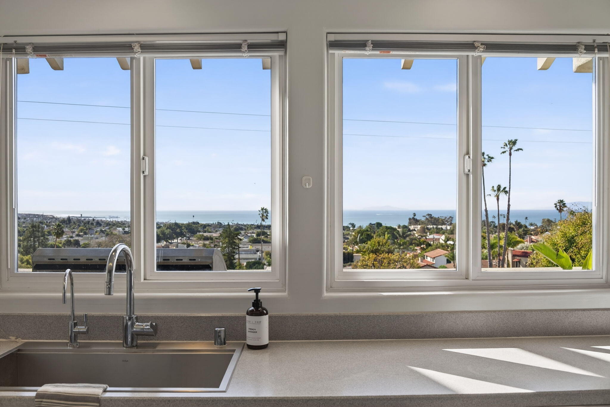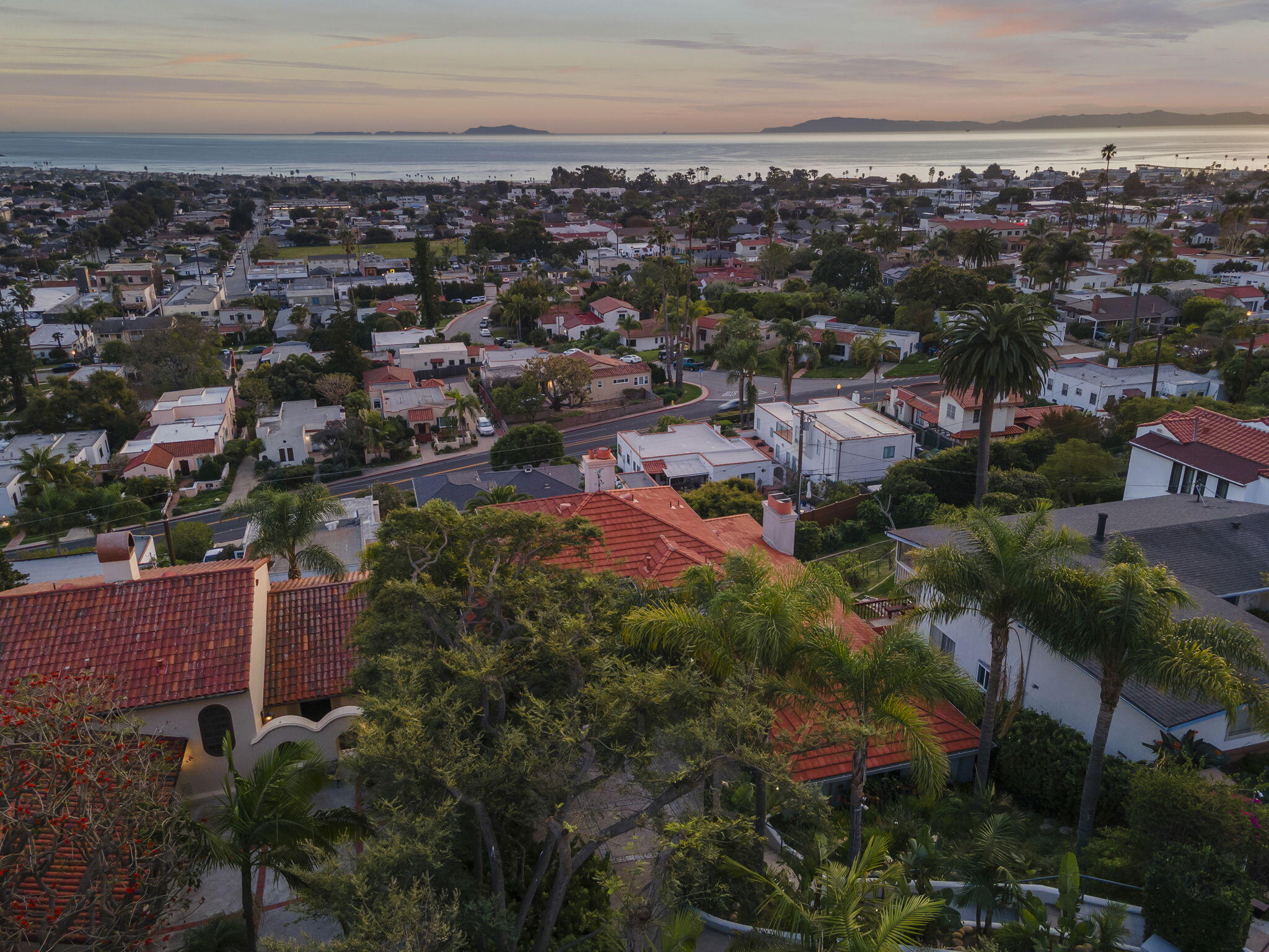Unobstructed, south-facing ocean and island views take center stage in this Hobson Heights hillside retreat, where light, space, and coastal living come together effortlessly. This 4 bedroom, 3.5 bath home is located in one of Ventura's most sought-after hillside neighborhoods and offers a rare sense of calm and perspective, where mornings begin with soft coastal light and evenings unwind in pink sunsets over the Pacific. Designed with a modern Spanish influence, the approximately 4,100 sq ft residence is filled with natural light and oriented to embrace breathtaking views from nearly every room. The main level, easily accessible with just a single step, features ocean-view living and dining rooms with a fireplace, an open kitchen, and a balcony just off the main living spaces, perfect perfect for morning coffee as the marine layer lifts or unwinding at sunset with the ocean stretched out before you. A bedroom and full bath on this level offer flexibility for guests, a home office, or multigenerational living. Upstairs, the private primary retreat captures sweeping views of the Pacific and Channel Islands, where you wake each morning to the horizon beyond. The spa-style bath places the soaking tub in the view, complemented by a fireplace and walk-in closet. On the lower level, two additional bedrooms, both with French doors, open to an expansive 1,000+ sq ft view deck, along with a spacious family room with bar, creating seamless indoor-outdoor living ideal for entertaining or relaxing. The 7,884 sq ft lot offers citrus trees, terraced landscaping, and a sense of privacy that is increasingly rare. Additional highlights include a 3 car garage, hardwired ethernet, smart home features, advanced security, and a 750 gallon rainwater system. Located in desirable Hobson Heights, known for its architectural charm, strong sense of community, and iconic hillside setting, this is one of Ventura's most coveted view neighborhoods, prized for its combination of character, location, and sweeping coastal vistas. The home is near beaches, C Street surf, downtown Ventura, Midtown shops and cafes, parks, schools, and the Ventura Hillside Preserve. The gentle chime of nearby church bells adds to the rhythm of daily life. This home was once owned by actors Rachel Ames and Barry Cahill. A rare opportunity to experience elevated coastal living.