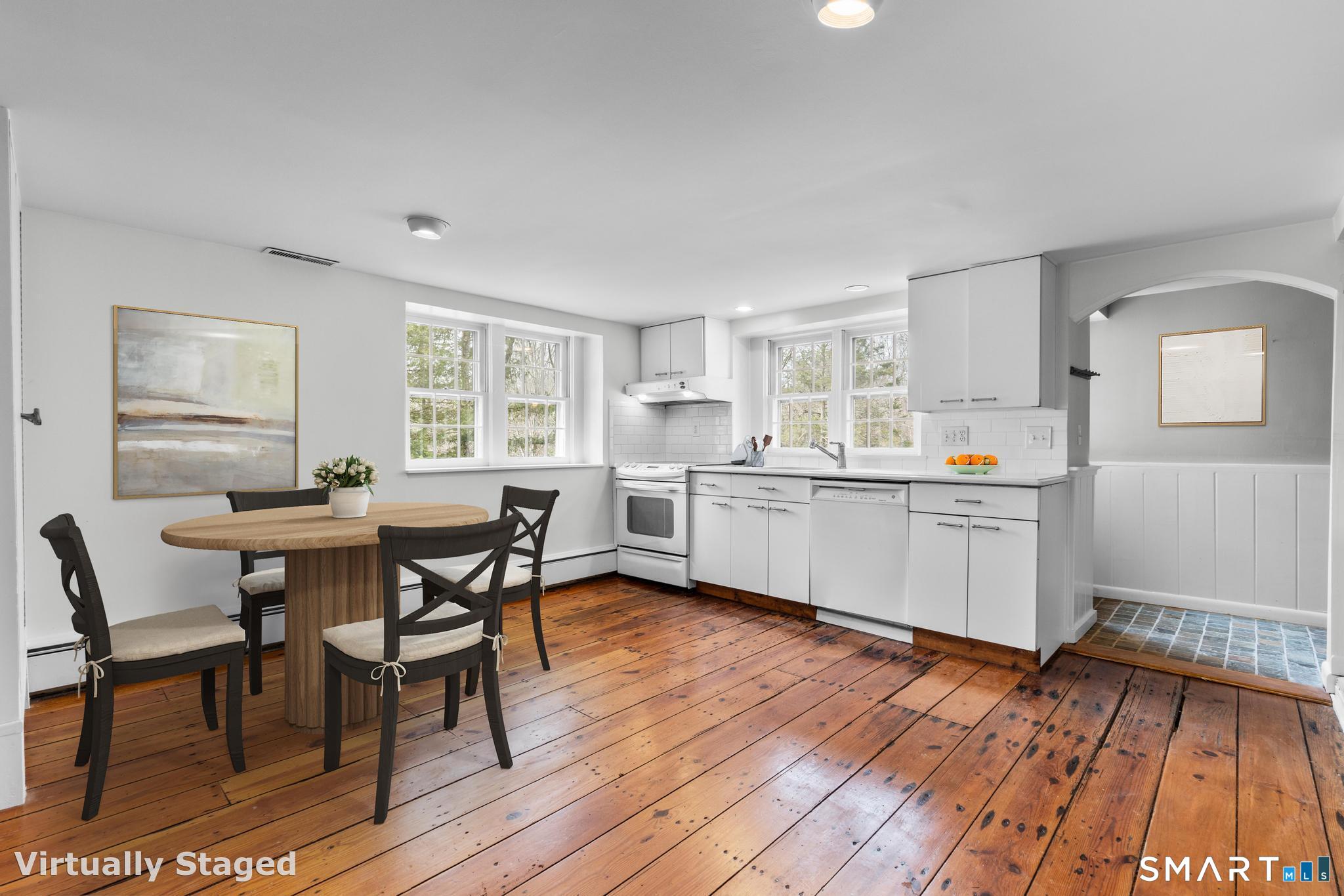 Charming clapboard & stone home with idyllic gardens and outdoor living. Loaded with character and timeless appeal, this 3 bedroom, 1 bath home blends classic charm with inviting comfort. Nestled on a beautifully landscaped property, it features wide plank wood floors, built-in bookshelves, and a cozy living room with a fireplace. The dining area opens to a bright, functional kitchen, making everyday living and entertaining a breeze. Step outside to enjoy the serene gardens, stone patio, and lovely outdoor spaces ideal for relaxation or gatherings. A detached 2-car garage adds convenience. Perfectly located close to Wilton and Westport town centers, top-rated schools, the train, and major highways-this home offers both tranquility and accessibility in one exceptional package.