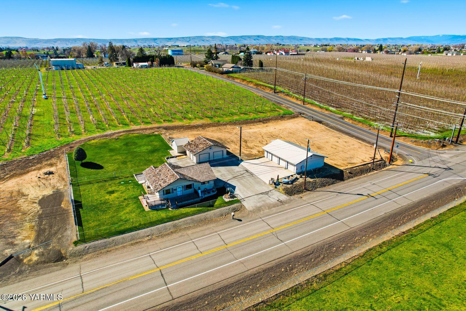 Welcome home to this West Valley rural property with 2 parcels sold together, combining for 1.13 acres. The larger parcel is .86 of an acre with a charming 3br, 1bth, approximately 1000 sq ft home with a private well and septic, and features a 2-car detached garage and a separate 3 bay shop with additional workspace along with another storage shed. With space to grow, farm, landscape or garden, this lot provides a variety of options for its next owner. The lawn surrounding the home is fenced and the home includes a Trex front patio deck that wraps around one side. The adjacent parcel at .27 acre allows for growth or potential as a buildable lot with connections to nearby utilities on Tieton. Expand the estate with the additional lot space or perhaps fund a remodel or improvements in the future selling off the smaller buildable lot. Contact a realtor today for a private tour to explore these properties potential and to make this home.
