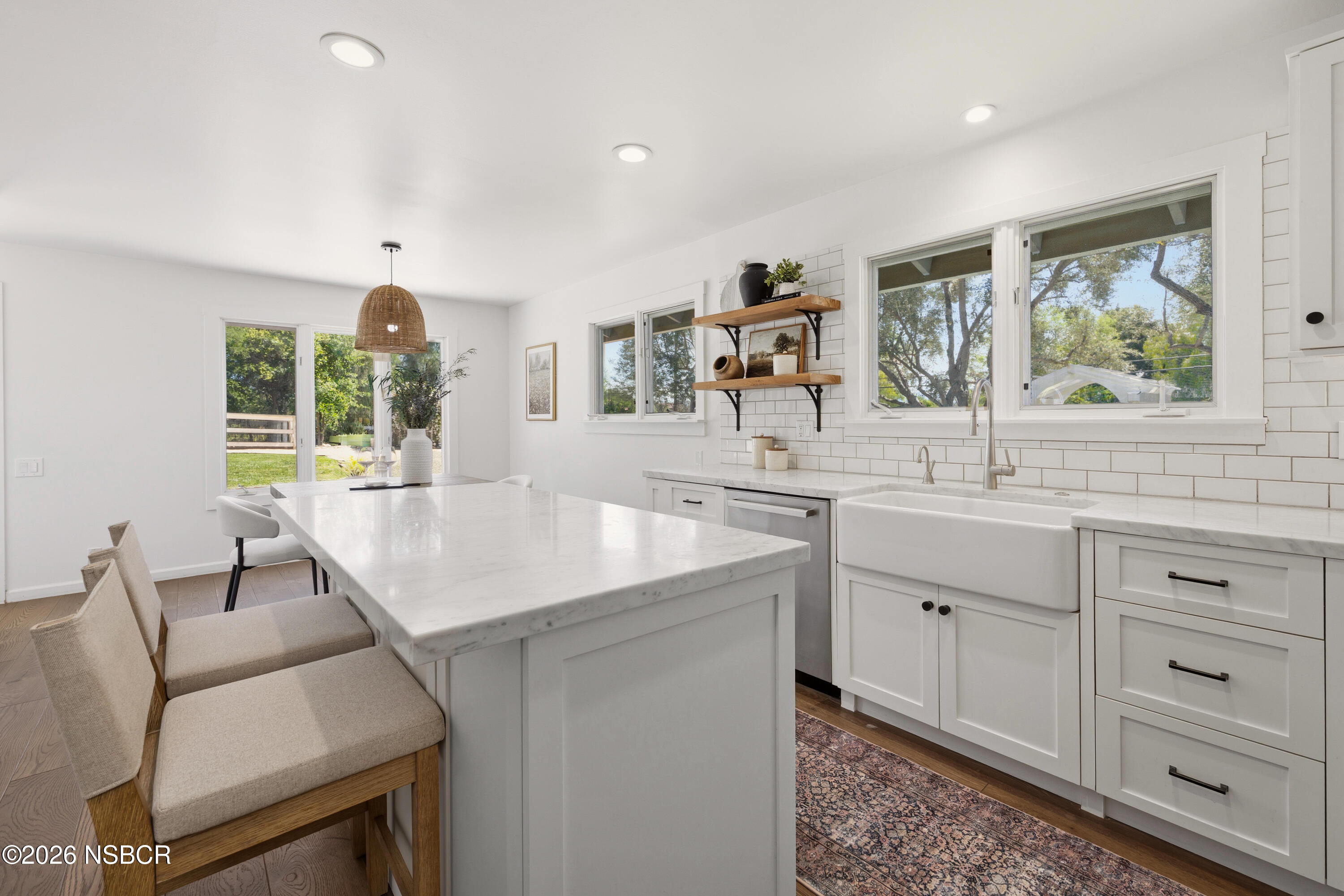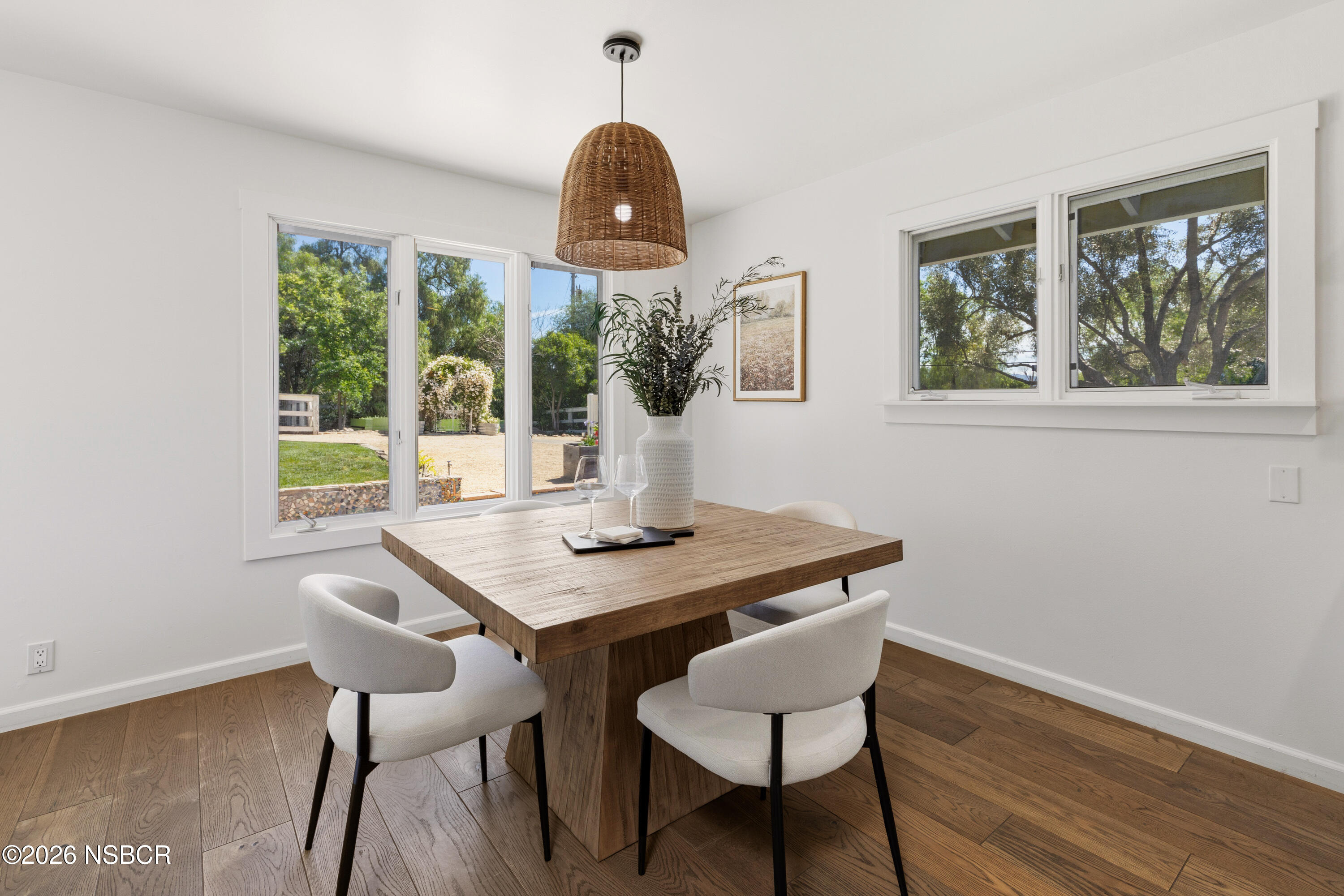 Fully remodeled wine country retreat with SYV-meets-Provence inspired charm, beautifully appointed on an oversized 0.52+/-acre lot with stunning landscaping and thoughtfully designed outdoor living spaces. Lush lawns, mature pepper trees, olives, citrus, lavender & grasses, a chicken coop, and raised garden beds create a private garden setting, while the dedicated outdoor dining area with a pizza oven and oak pit Santa Maria-style BBQ is perfect for entertaining and enjoying the al fresco wine country lifestyle.A gated stone path entry leads to the front door and sets the tone for this simple, clean and elegant space. Wood floors throughout the main living areas of the home create a seamless flow and expansive feel in the cottage, and the well-designed cook's kitchen features ample storage, stainless steel appliances, a cozy dining area, and bar seating. Carrera marble accents tie the home together and are featured in the kitchen, laundry, and bathrooms. The 1,244+/- SqFt home features 3 bedrooms, 1.5 bathrooms, it is intimate & timeless, and the perfect Santa Ynez Valley full-time residence or weekend escape.The detached garage structure currently features a gym and could be reimagined as office space, a studio, or a pool house. In addition, the current owners have fully approved and permitted, ready-to-build drawings from bespoke architectural firm PLACE, with interior design plans from Santa Barbara-based MN Studio Interiors, to create a family compound with pool cabana. Just three blocks from downtown Los Olivos, with vineyard walks on one side and world class wine and food on the other, in the heart of wine country. Come enjoy what feels like a European holiday, just two hours north of Los Angeles.