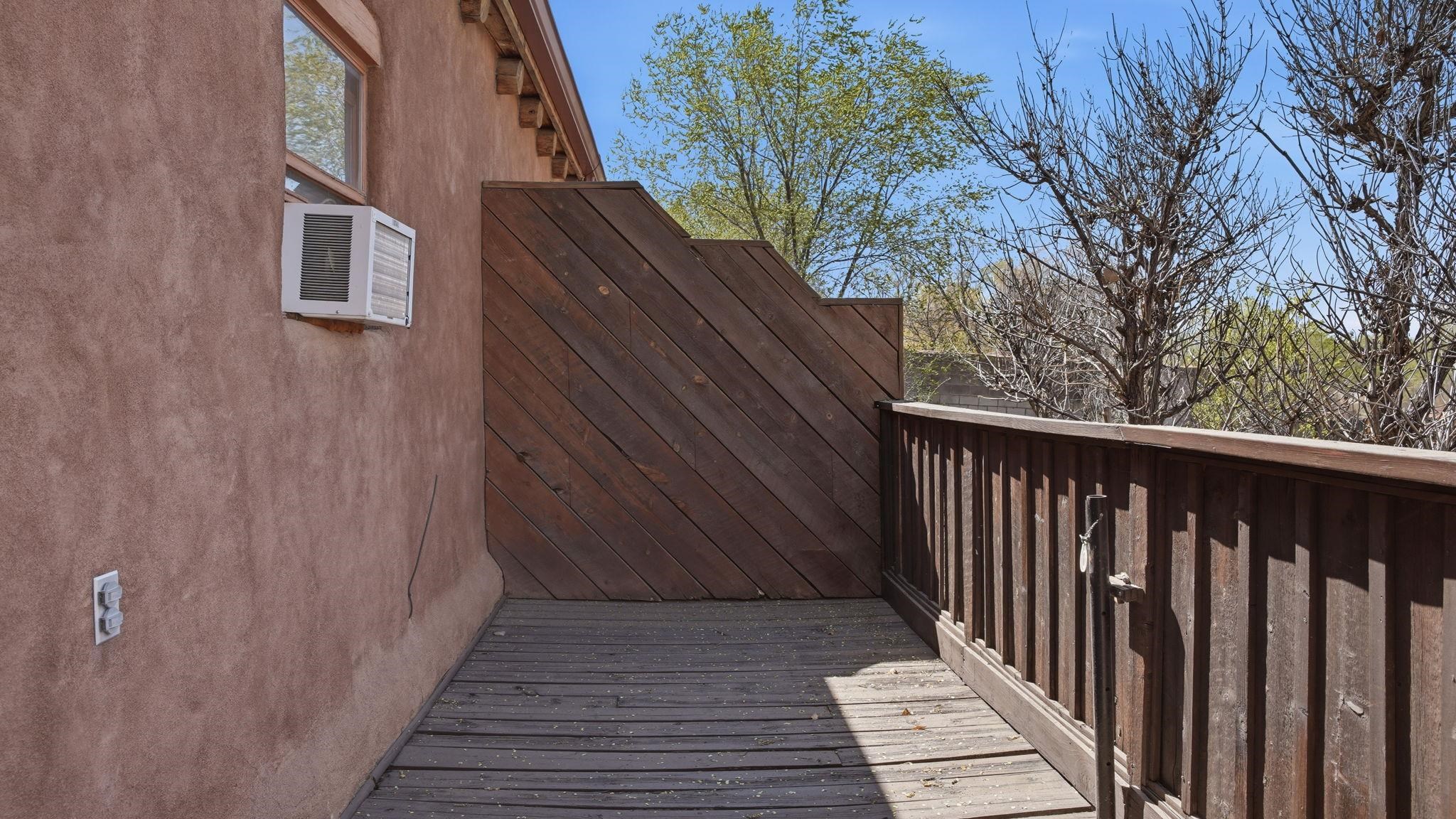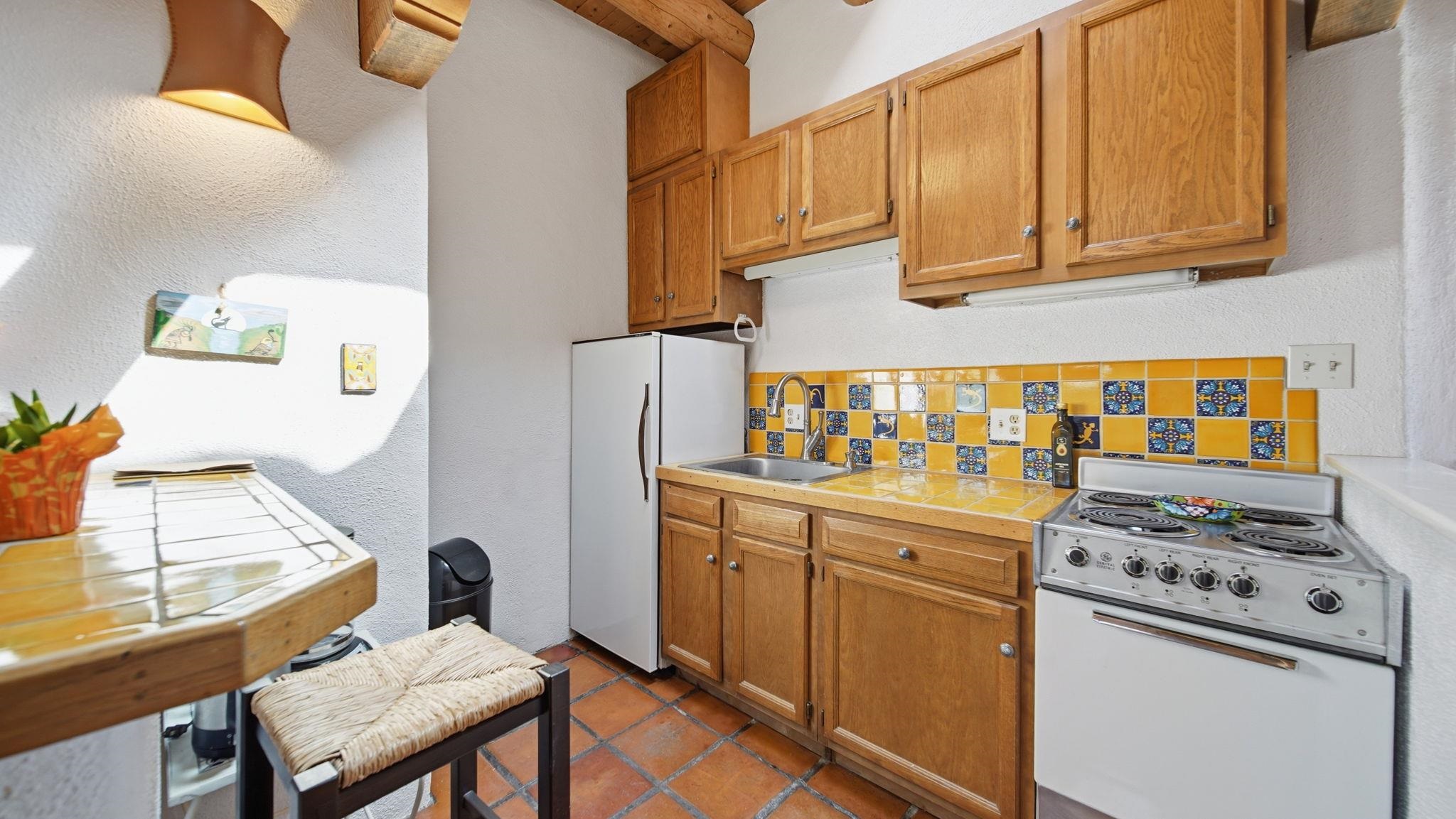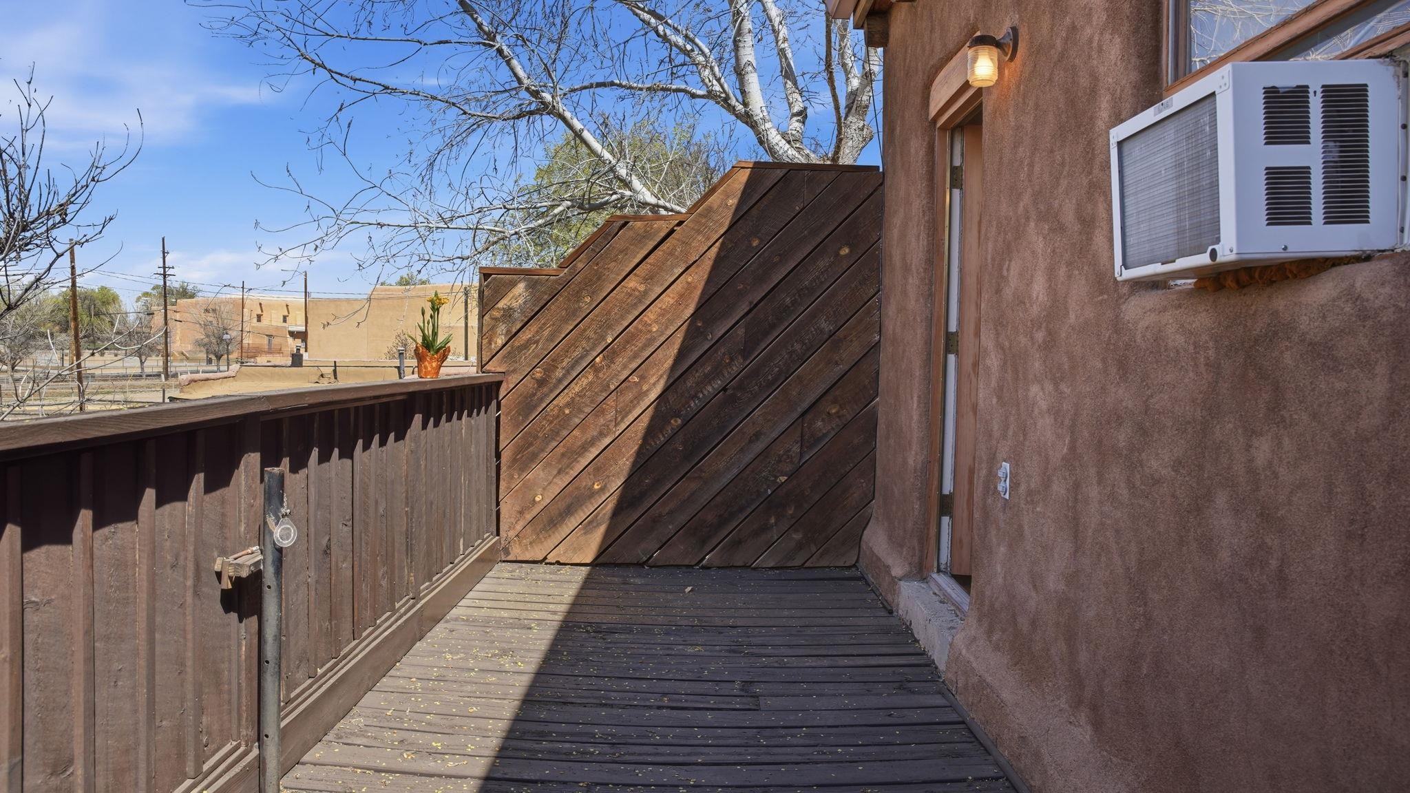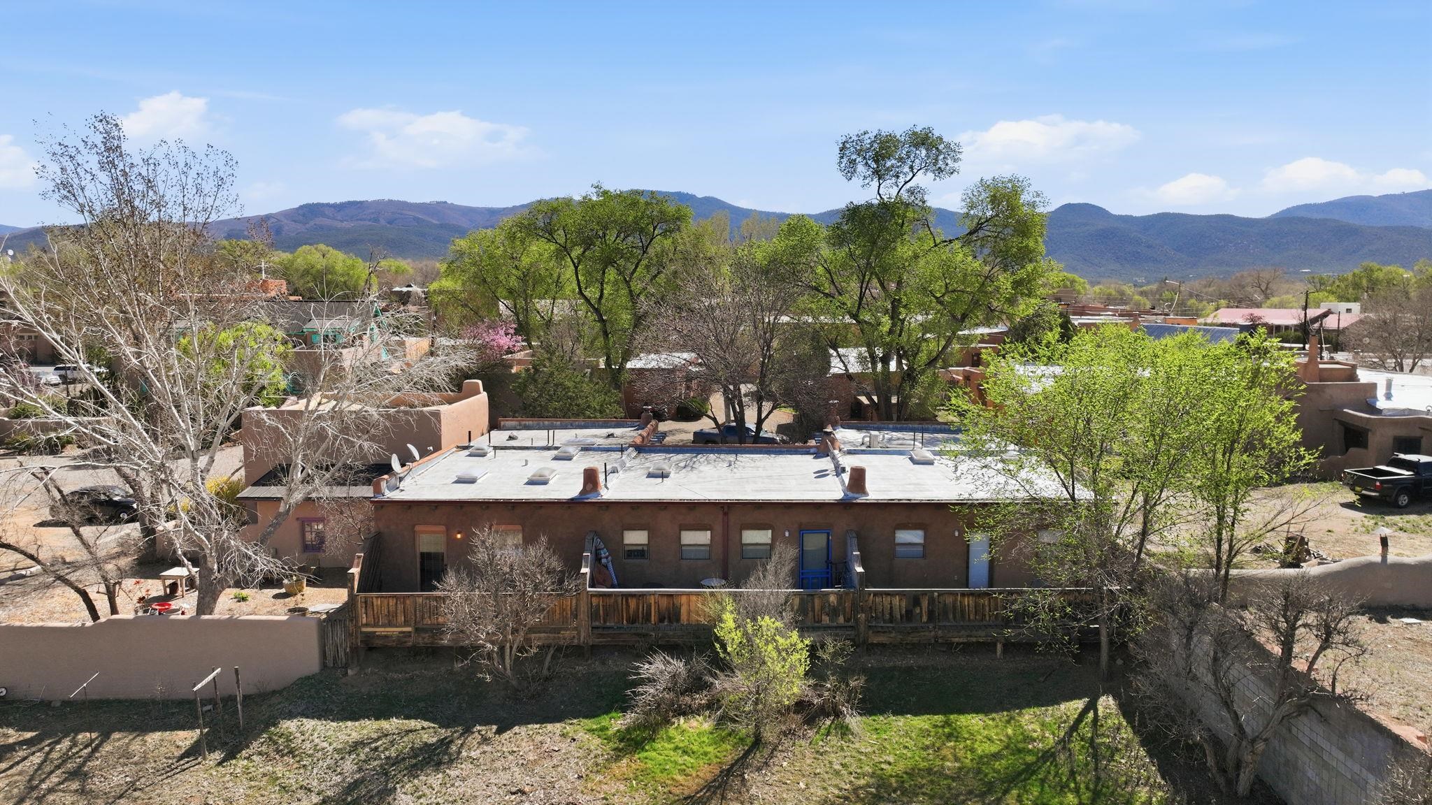 Sunset-Facing Historic Adobe Studio Around the Corner from Taos Plaza ~ Quietly tucked into the very northwest corner of the Las Casitas Condominiums blooming courtyard, #9 West is a highly private adobe studio listed on the National Register of Historic Places. The space is firmly grounded in authentic Southwestern character, featuring classic Saltillo tile floors, exposed ceiling vigas and beams with t&g, large nichos, built-in bancos, and a kiva fireplace for chilly high-desert nights. Plenty of natural light flows into this warm and well lit condo with skylights. As one of only three units in the building with a western exposure, the studio provides a rare sense of space and a vantage point to watch the sunset filter through distant cottonwoods. Walk and bike everywhere from this secluded unit; the historic Taos Plaza is just steps away, offering immediate access to the area's renowned galleries, museums, restaurants, and live music venues. Taos Ski Valley for skiing and then Ojo Caliente Hot Spring for soaking, both are a short scenic drive over the Gorge Bridge and Rio Grande National Monument. Designed for an effortless lifestyle, the low condo HOA cost covers grounds maintenance, trash service, water, sewer, and general insurance on the unit structure, helping to keep utility costs down for all homeowners. This is the Taos Casita you don't want to let get away, reach out to see for yourself! Vamos!