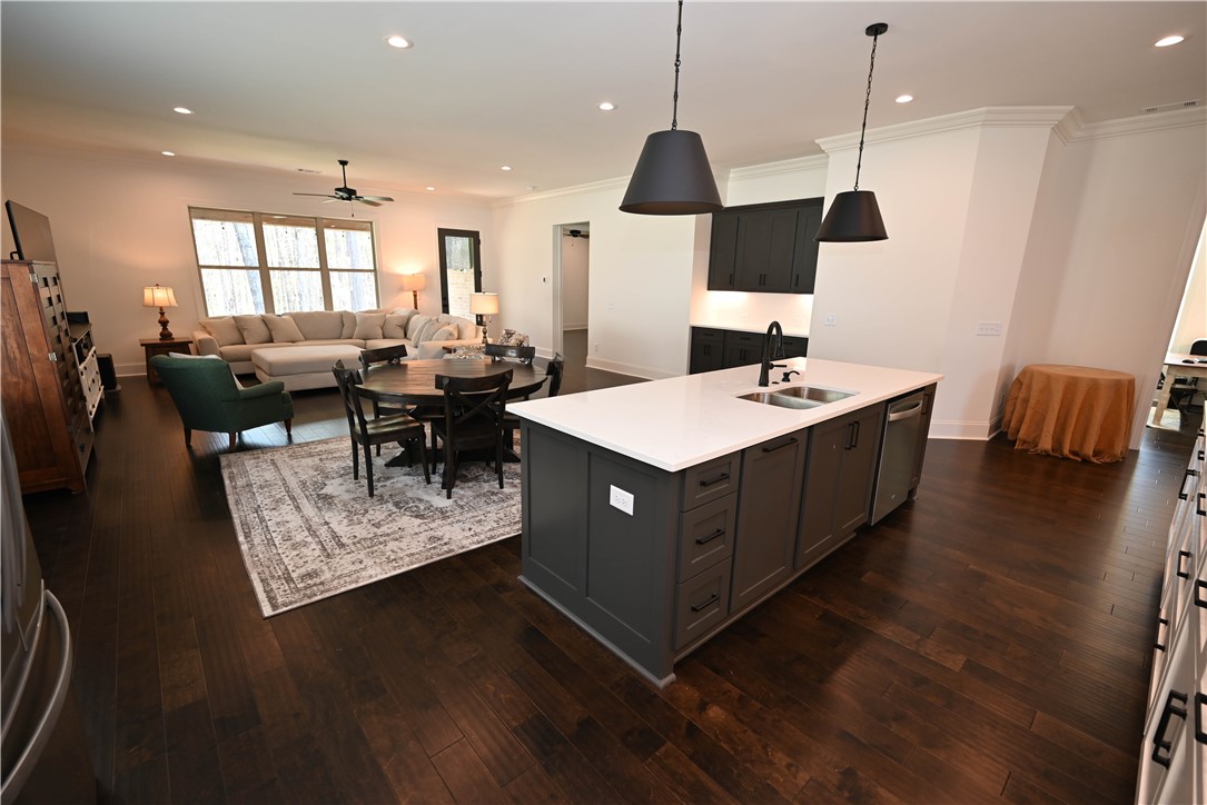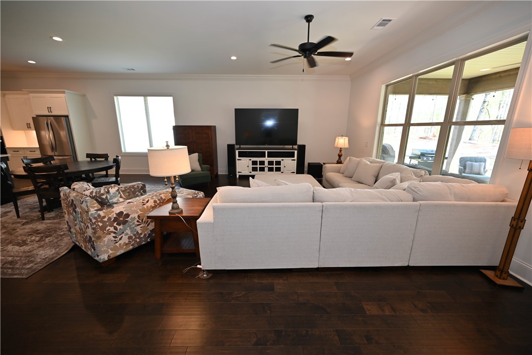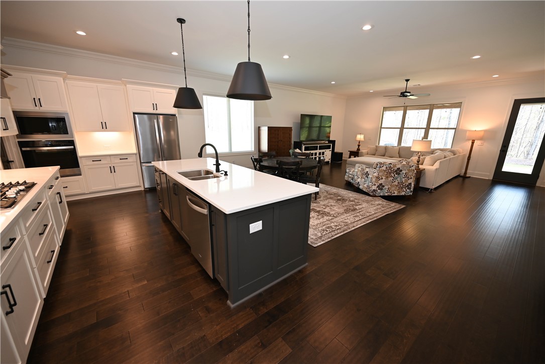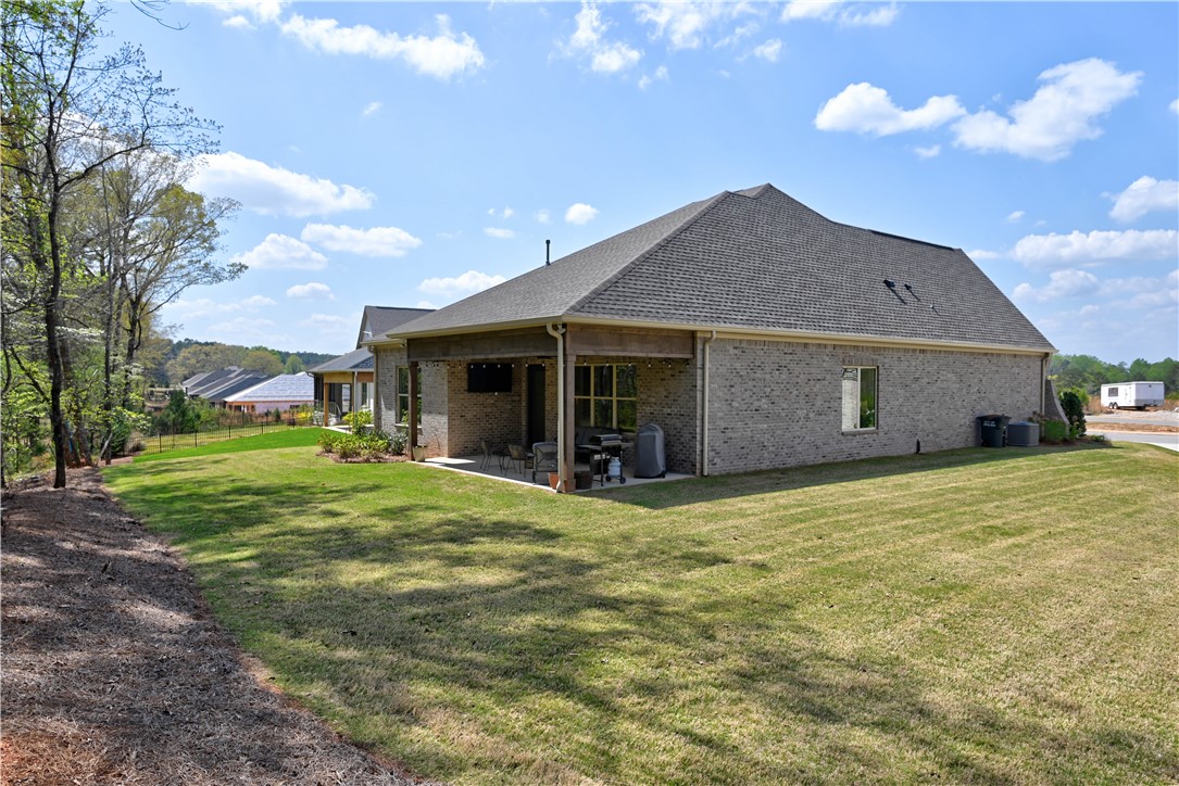 Welcome to 585 Windsor Drive, perfectly situated on a quiet cul-de-sac lot & backing up to peaceful woodlands. This one-level 3 bed/2 bath home offers low-maintenance living with lawn care & landscaping handled by the HOA, so you can spend more time enjoying the neighborhood amenities (which include pickleball courts, two scenic ponds, & a preserved wooded park) or relaxing on the breezy covered porch! Inside, gorgeous hardwoods flow from the inviting foyer throughout the spacious open-concept living area as well as all bedrooms. The great room features expansive windows overlooking the private backyard & seamlessly connects to the dining area & kitchen, creating an ideal layout for both everyday living & entertaining. The kitchen is definitely the star of the show, though, with its quartz countertops & backsplash, stainless steel appliances, custom cabinetry with underlighting, oversized island, 5-burner gas cook top, & huge walk-in pantry. The primary suite offers a relaxing retreat with a spa-inspired bath featuring a curbless tile/glass shower with seating, dual vanities, & generous walk-in closet. Two additional bedrooms provide flexibility for guests, office space, or hobbies. Additional highlights include 10' ceilings, 8' doors, windows & natural light galore, & a 2-car garage. Conveniently located near RTJ Golf Trail, Tigertown, & downtown Opelika with easy access to Highway 280, I-85, AU campus, & downtown Auburn, this home offers a perfect blend of comfort, style, & convenience!