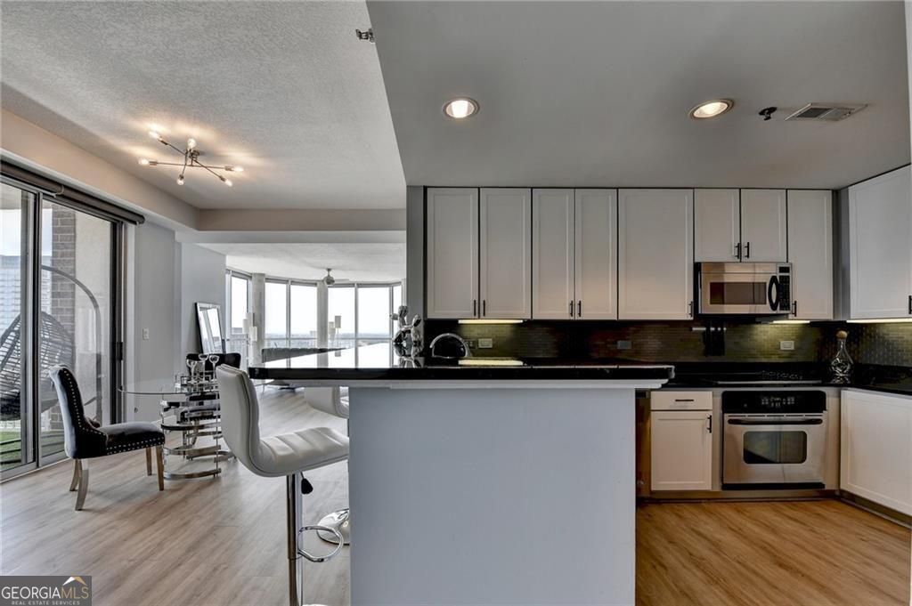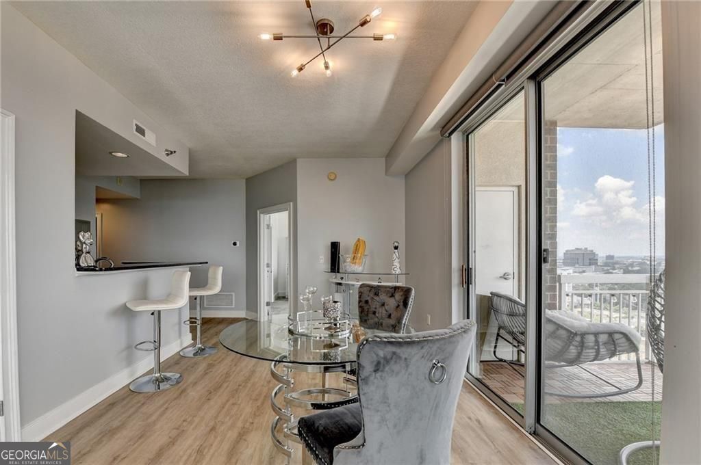 Experience elevated high-rise living in this stunning 2-bedroom, 2-bath condo with panoramic Atlanta skyline views from every window. Enjoy breathtaking sunrises and sparkling city lights daily from this exceptional residence in Museum Tower. The sleek, modern kitchen features white cabinetry, granite countertops, and stainless steel appliances-perfect for everyday living and entertaining. A spacious dining area easily accommodates gatherings both large and small. The primary suite offers a custom closet and a spa-like bath with double vanity, oversized shower, and soaking tub. Step onto your private balcony with custom decking and artificial turf-your own "city park in the sky." This move-in ready home blends luxury, comfort, and an unbeatable location. Museum Tower, perched above Centennial Olympic Park, offers resort-style amenities including a rooftop pool, fitness center, clubroom, guest suite, and 24/7 concierge. Enjoy outdoor spaces with grilling areas, fire pit, and dog walk-all in the heart of Atlanta. Don't miss this incredible opportunity to own a piece of the skyline.