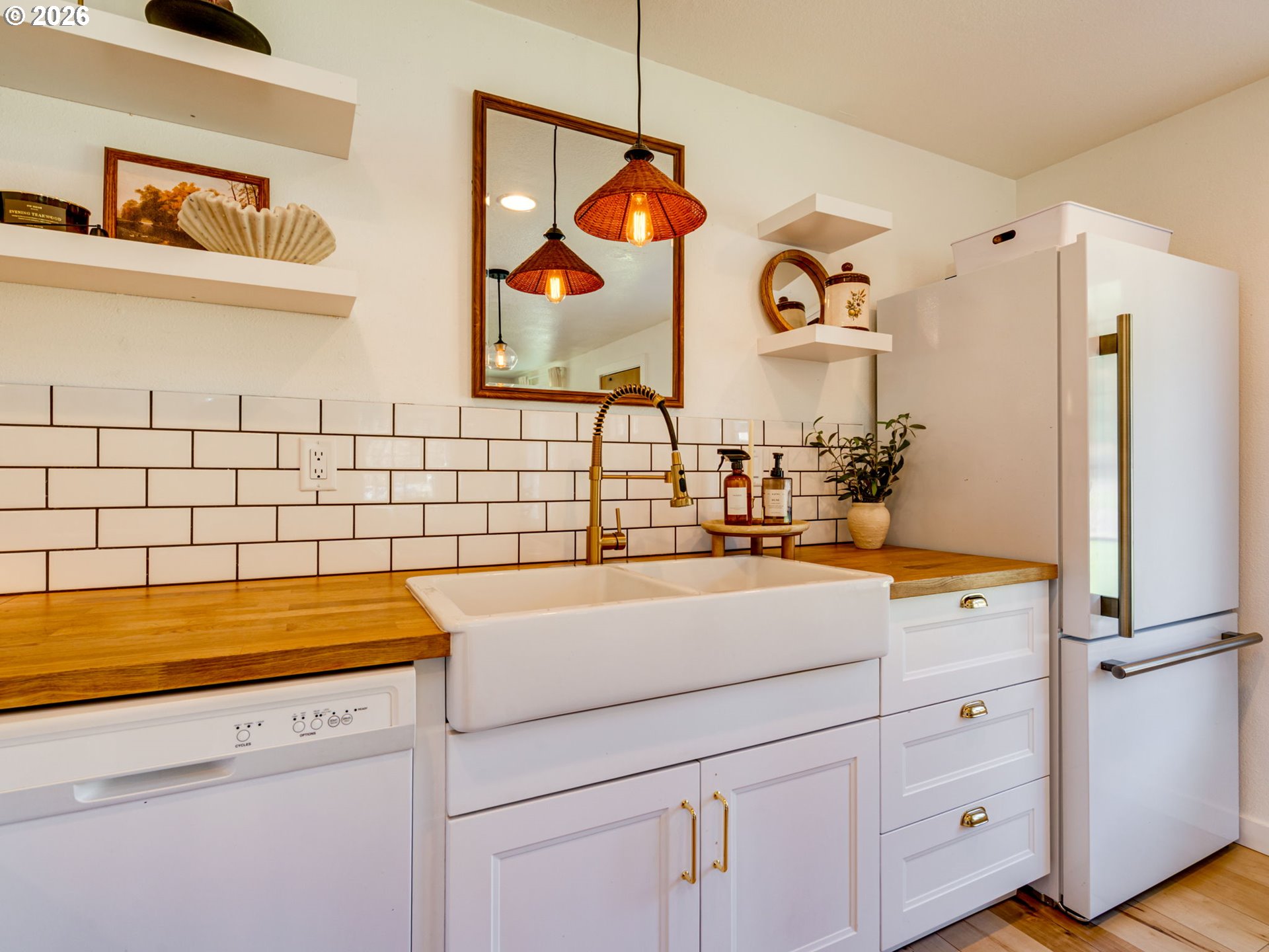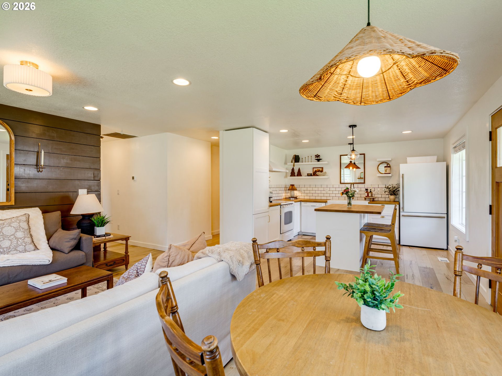 WOW! Just WOW! Fall in love the moment you step inside this beautifully updated ranch-style home, where comfort, charm, and easy one-level living come together in all the right ways.With 3 bedrooms, 2 bathrooms, and an easy-to-maintain layout, this home invites you to slow down, settle in, and imagine the life you've been craving. The welcoming entry flows naturally into a quaint dining area, cozy living room, and stunning kitchen designed to be the heart of the home. The kitchen is full of style and personality, featuring wood block countertops, a perfectly placed island, clean modern lines, an apron-front sink, and gorgeous gold finishes that bring a fresh, elevated feel. And just so we're clear... no, the d cor does not stay. Throughout the home, you'll find light, airy flooring, warm paint tones, and thoughtful touches that make the space feel polished and personal. The guest bath is charming and conveniently located near the guest bedroom. The primary suite truly steals the show. Filled with natural light, it offers an oversized closet connected to the private bath, where you'll find a large tiled shower with two shower heads. Yes, really. Two. Step outside to the covered back patio, sip your morning coffee, and take in the possibilities of the fully fenced backyard - ready for garden beds, play space, gatherings, or a peaceful place to unwind. The third bedroom adds flexibility for real life, perfect as a bedroom, office, playroom, or creative space, with convenient access from both the house and garage. All of this is tucked into the charming Yacolt community, close to the dog park, skate park, city park, pizza, and coffee - small-town touches that make this house feel like home.