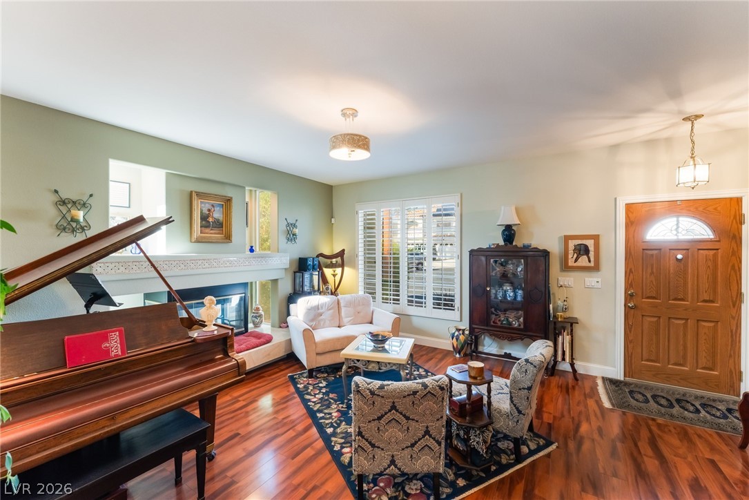 Amazing two-story home located in the heart of Centennial Hills within a gated community. This property features a spacious three-car garage including one bay converted into a functional workshop, plus RV parking on a cul-de-sac lot! Hardwood and tile flooring downstairs with an open floor plan filled with natural light. The home includes an intercom system and a spacious family room with a cozy fireplace. The kitchen offers granite countertops, garden window, custom cabinetry. Upstairs offers a large open primary bedroom with a luxurious en-suite bathroom featuring double sinks, a separate tub and shower, and a large walk-in closet. Additional bedrooms are generously sized, along with a spacious den and loft - perfect for entertaining. Step outside to a beautiful, private backyard w/ salt water pool & spa, covered patio w ceiling fans & synthetic grass. Custom built work shed/storage area on side of backyard. Additional highlights, all appliances stay and two new HVAC Train Units.
