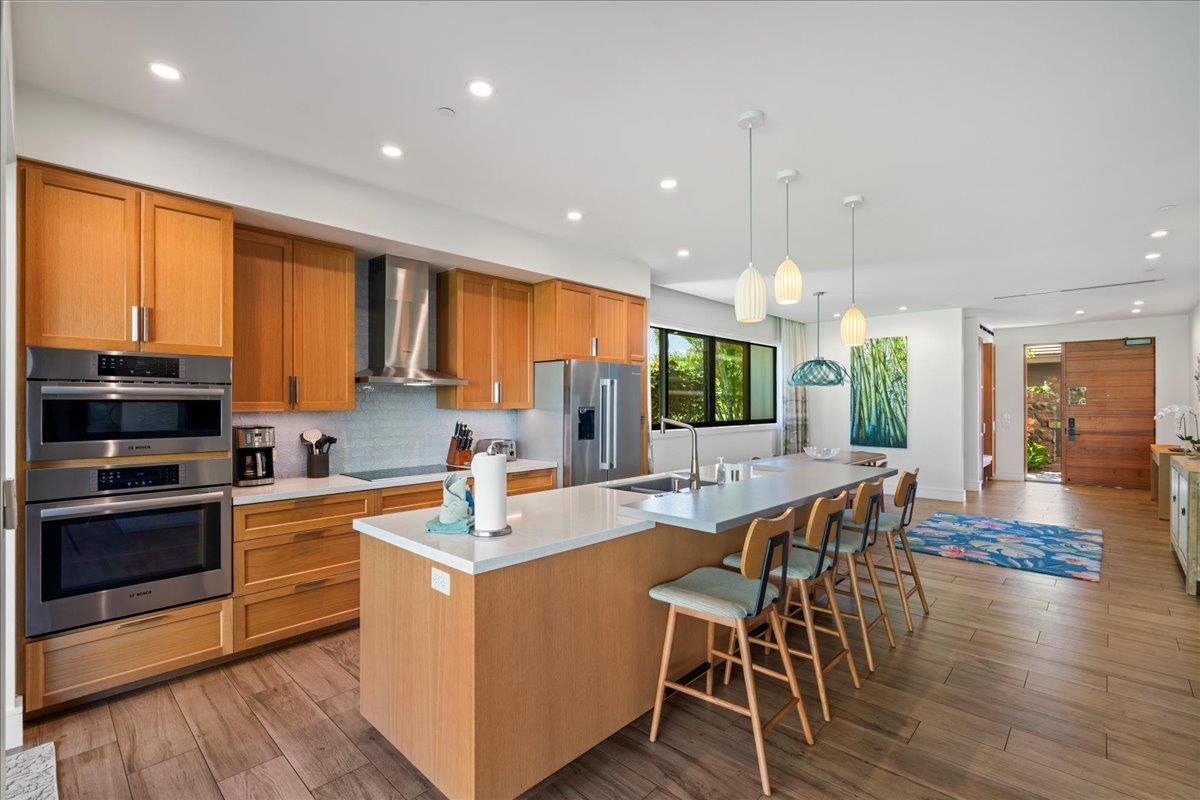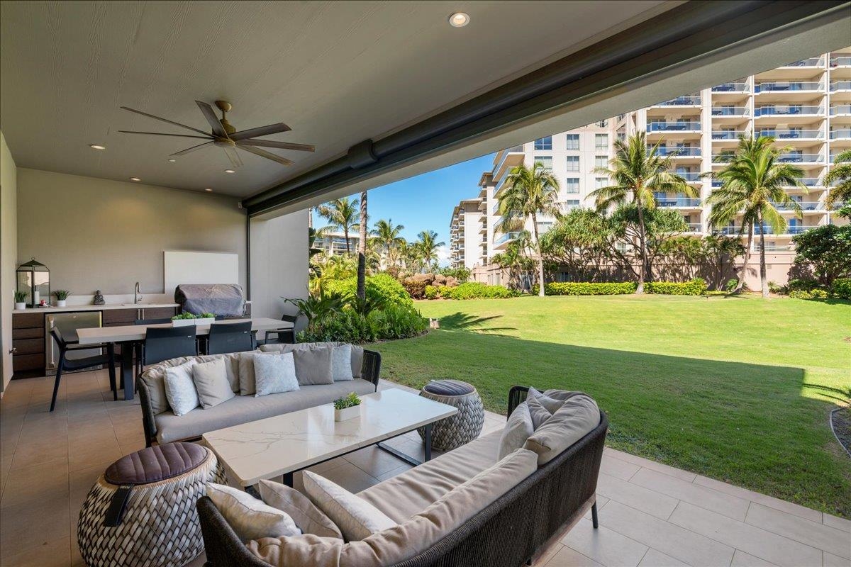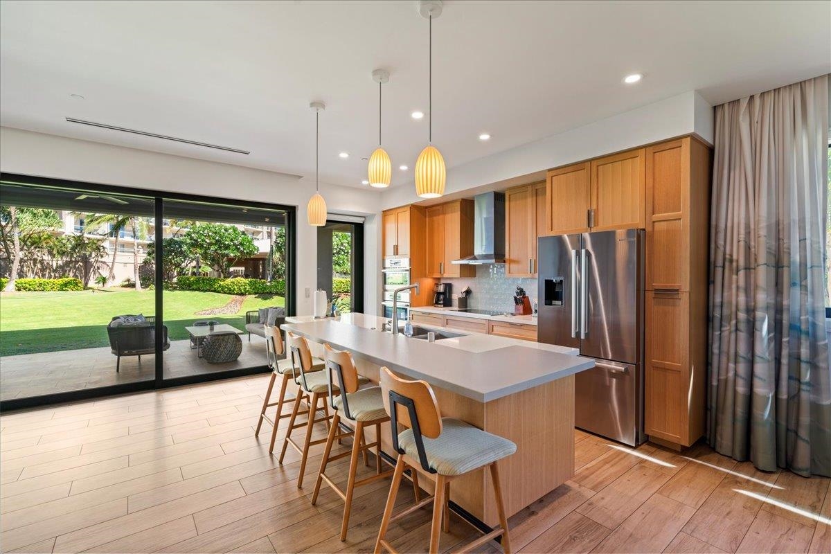 Introducing an exceptional opportunity at Luana Gardens, the newest enclave within the highly sought-after Honua Kai Resort on iconic Ka'anapali Beach. This newly constructed three-bedroom, three-bath residence with an attached one-car garage offers a rare blend of modern design, resort convenience, and approved vacation rental flexibility. Designed for both comfort and connection, the home features an open-concept layout complemented by premium finishes throughout. The kitchen is outfitted with sleek quartz countertops, high-end stainless appliances, and contemporary cabinetry, seamlessly flowing into the main living space and out to multiple private lanais. The largest lanai is thoughtfully equipped with an outdoor kitchen - complete with BBQ, sink, and refrigerator - creating an ideal setting for entertaining or unwinding in Maui's year-round climate. Central air conditioning and an in-unit washer and dryer provide everyday ease. Ownership includes full access to Honua Kai's expansive resort amenities, highlighted by its renowned aquatic area featuring pools, waterfalls, and waterslides, as well as on-site dining, market, and spa services. Luana Gardens itself offers a more private residential atmosphere with its own pools, spas, fire pits, and lush landscaped grounds. Conveniently located just moments from Ka'anapali's golf courses, beaches, shopping, and dining, and within a short drive to Kapalua's world-class golf and trail systems as well as the coastline of Honolua Bay. Historic Lahaina Town - known for its harbor, restaurants, and shopping - is also nearby. Offered fully furnished, this turnkey residence is ready for immediate enjoyment or income generation, presenting a compelling opportunity to own in one of West Maui's premier resort communities.