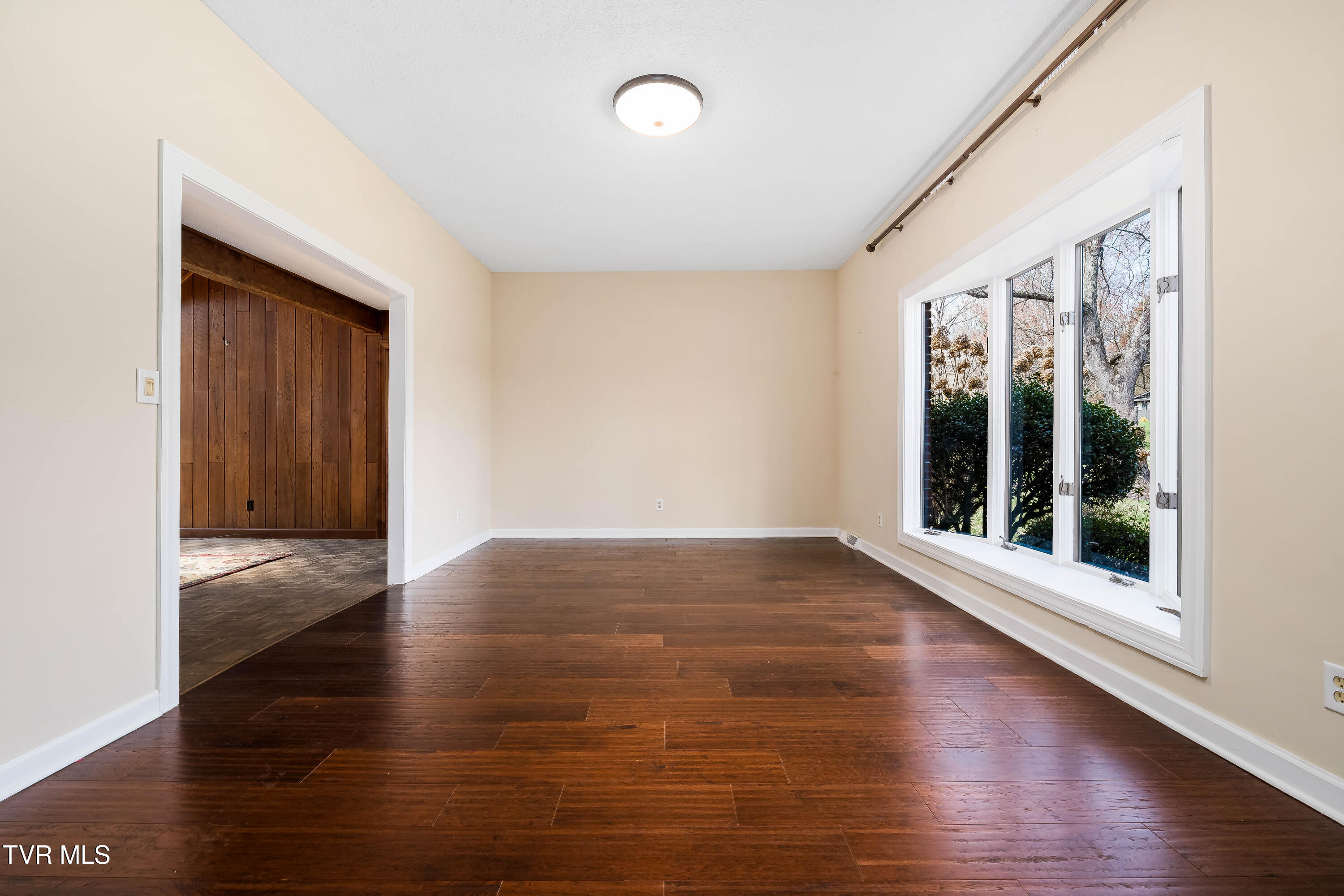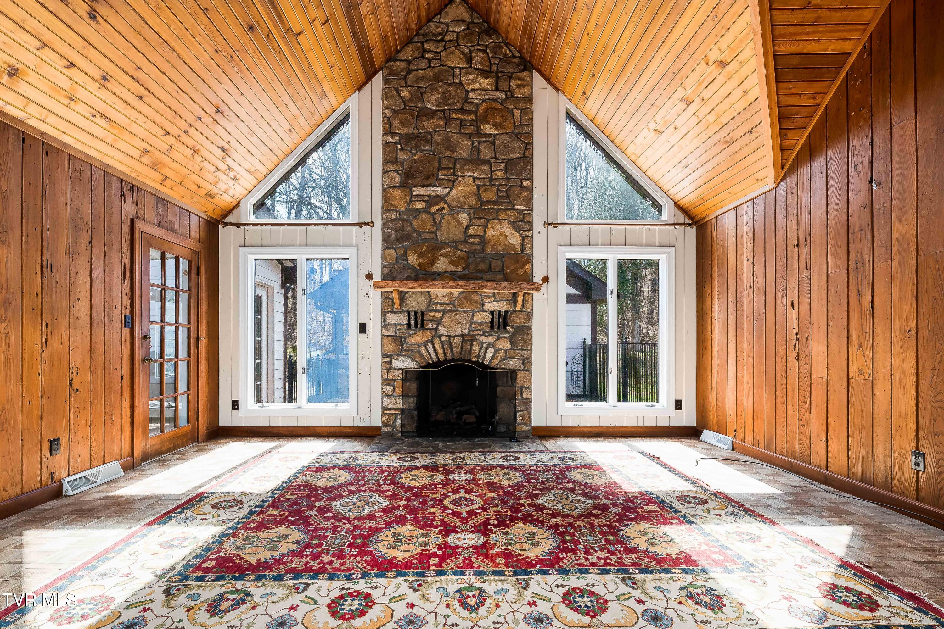 Welcome to Quail Hollow- one of the area's most desirable and established communities. Privately positioned on an oversized, partly wooded lot, this beautifully crafted Tudor-style residence offers timeless architecture, exceptional quality, and a serene style setting. Inside, you are welcomed through stately solid walnut doors into a home rich with character, showcasing beautiful stained woodwork and a warm, inviting ambiance. The main level offers an ideal flow for both everyday living and entertaining, with a formal living room that seamlessly opens into a spacious family room anchored by a stone fireplace and wormy chestnut walls. The dining room comfortably accommodates seating for 10, while the well-appointed kitchen features granite countertops, stainless steel appliances, and generous workspace. A private flex room on the main level is perfect for a study, music room, or home office. The primary suite is conveniently located on the main level, offering comfort and privacy with its own ensuite. Upstairs, the home features 3 generous sized bedrooms and/or a versatile loft area ideal for additional living or workspace. The outdoor living experience is truly exceptional-heart of the home designed for both relaxation and upscale entertaining. Enjoy the sparkling pool, tranquil Koi pond, and expansive backyard surrounded by mature trees for ultimate privacy. The poolside entertaining area is thoughtfully equipped for music and television, along with a well-appointed pool house featuring a bathroom-creating the perfect backdrop for gatherings that effortlessly transition from day to evening. Ideally located just minutes from Milligan University, ETSU, Sycamore Shoals,Johnson City Medical Center,