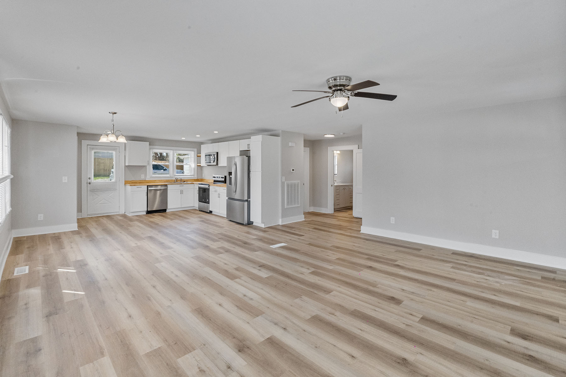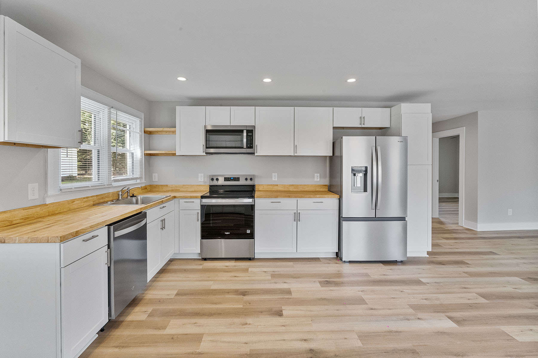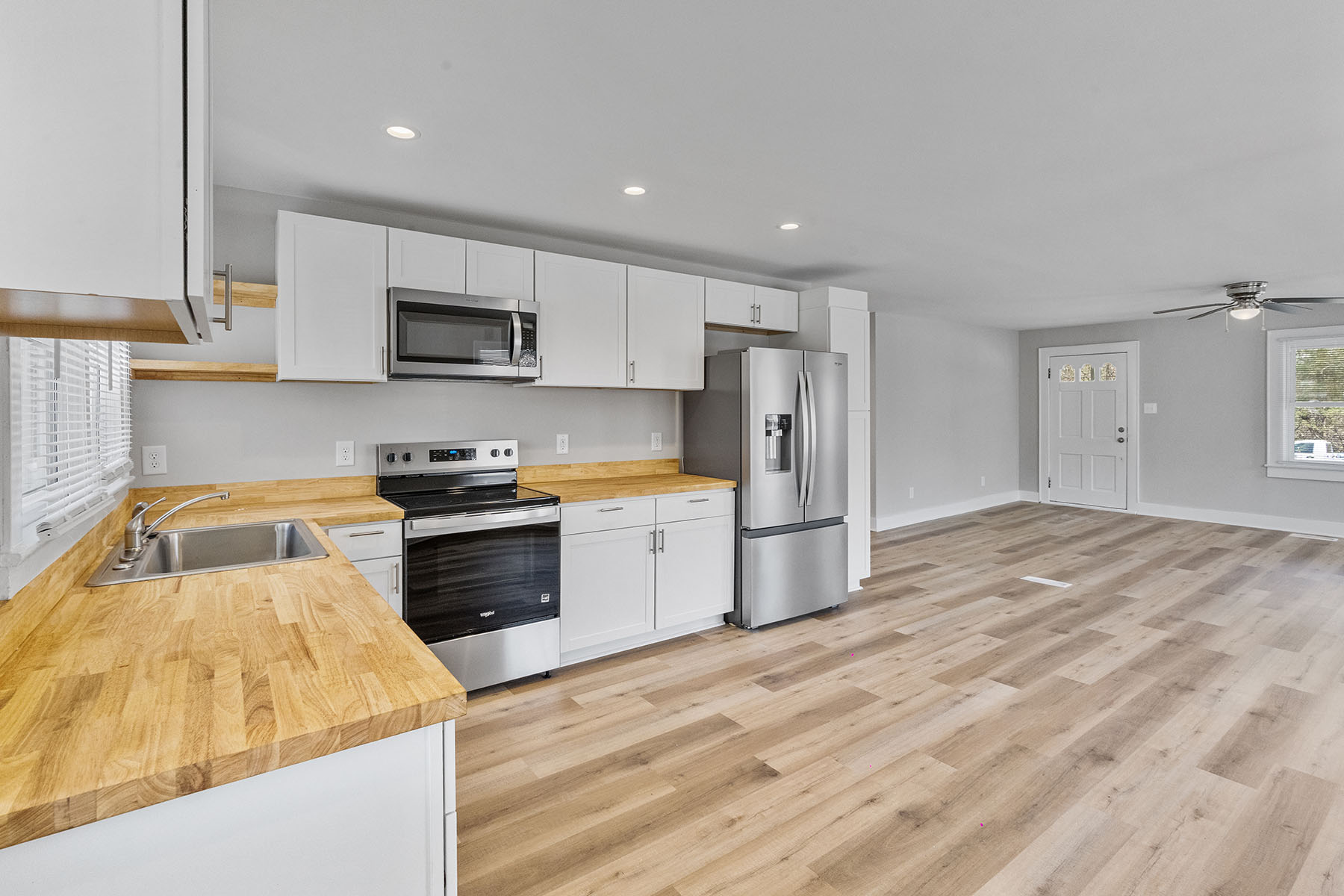 Fully renovated 2BR home with an oversized workshop on a high-visibility Statesville Hwy parcel — an ideal live/work opportunity, office conversion, investment property, or redevelopment site. Situated on approximately .52 acres, this rare property offers exceptional flexibility in a prime Mooresville location. Features include a beautifully updated kitchen with white cabinetry, butcher block countertops, stainless steel appliances, new flooring throughout, fresh interior and exterior paint, and a new roof. The spacious open layout is filled with abundant natural light and includes a charming fireplace. The detached 1,440 SF workshop/garage is a standout feature, complete with epoxy-style floors, bright overhead lighting, and an oversized garage door, making it ideal for business use, storage, hobbies, automotive work, or a true live/work setup. With excellent road frontage, strong visibility, and versatile CM zoning, this is a rare opportunity to own a beautifully renovated property that offers both residential comfort and commercial potential in the heart of Mooresville. Buyer to verify intended use.