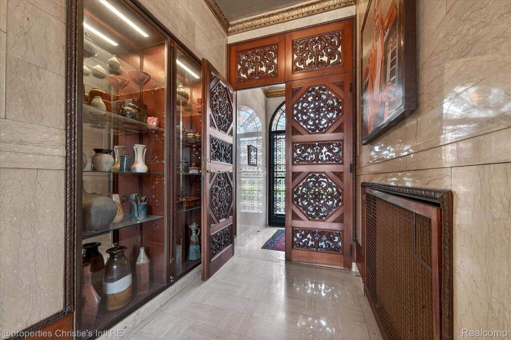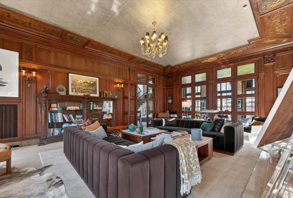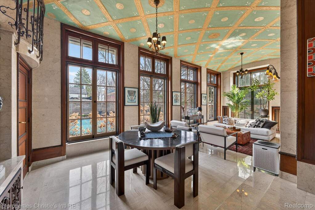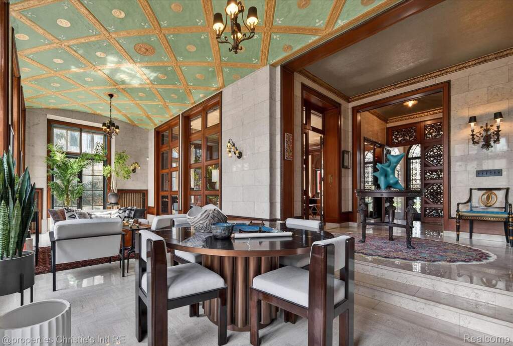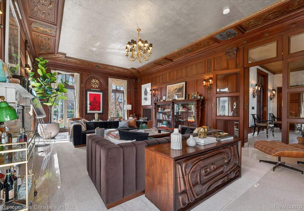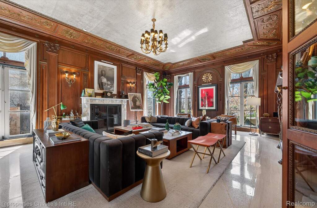 The personal residence of legendary architect Louis Kamper, designed and built between 1915 and 1917. One of Detroit's most significant private homes. Over 7,000 square feet of Neo-Renaissance architecture constructed with steel, limestone, and concrete. Inside, Kamper's artistry is on full display: mint-green Zodiac ceilings, a dramatic marble grand staircase, hand-carved walnut paneling, and a triple-layer entry of wrought iron, bronze-framed glass, and Chinese rosewood. The estate has received $866,000 in capital improvements since 2020, preserving every original detail while adding modern performance. The reimagined third floor features a refined library, office, and bourbon lounge with custom millwork, the ultimate private retreat. Additional highlights include full restoration of all windows and doors, 95% efficient Lochinvar boiler, high-efficiency central air and heat pump, whole-house generator, new copper gutters, roof restoration, EV charger, Viking appliances, Culligan water filtration, custom power driveway gate, and new garage doors. Outside, formal rose gardens and a private in-ground pool sit on nearly half an acre with new privacy fencing, outdoor lighting, and landscaping throughout.