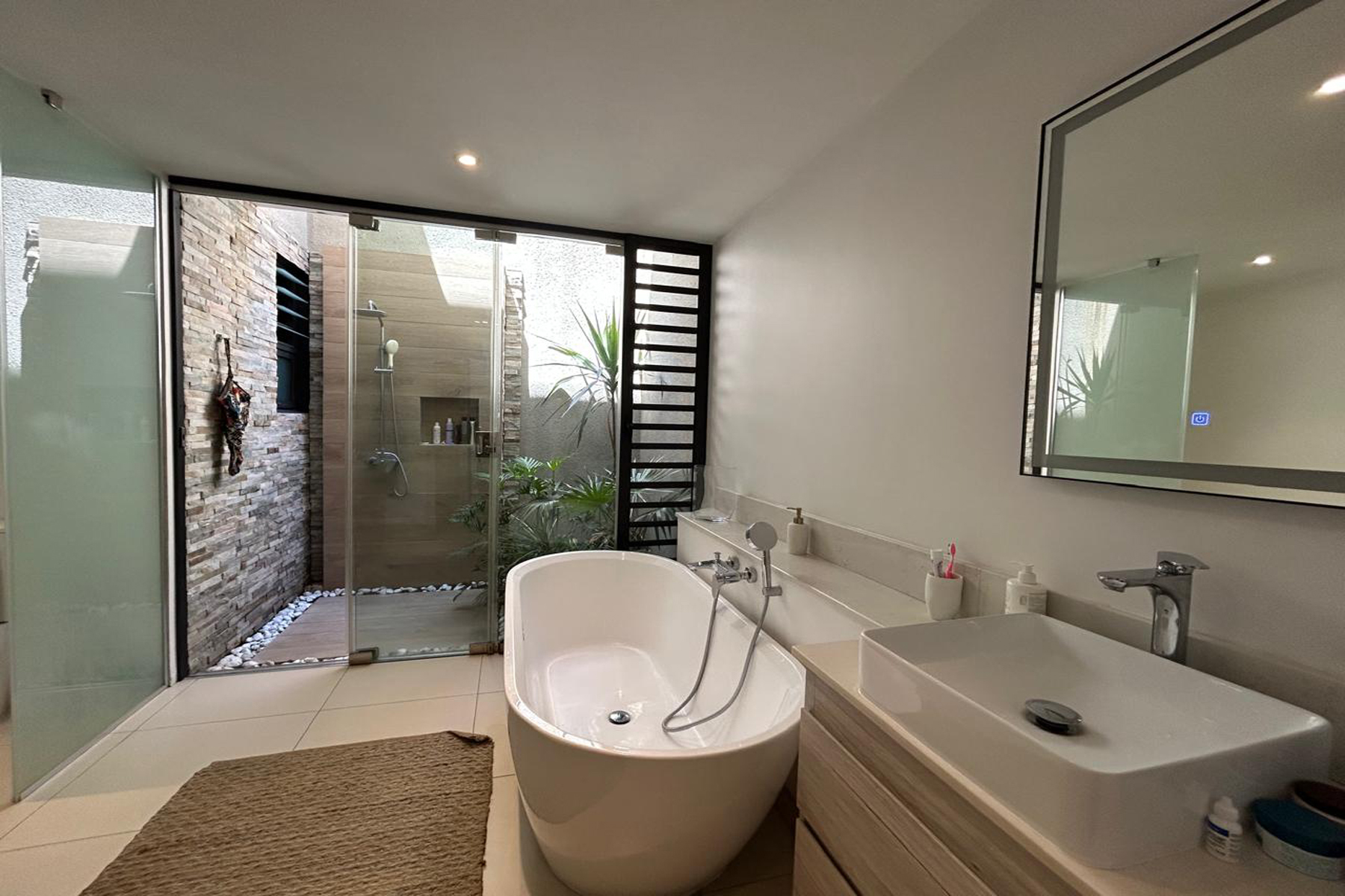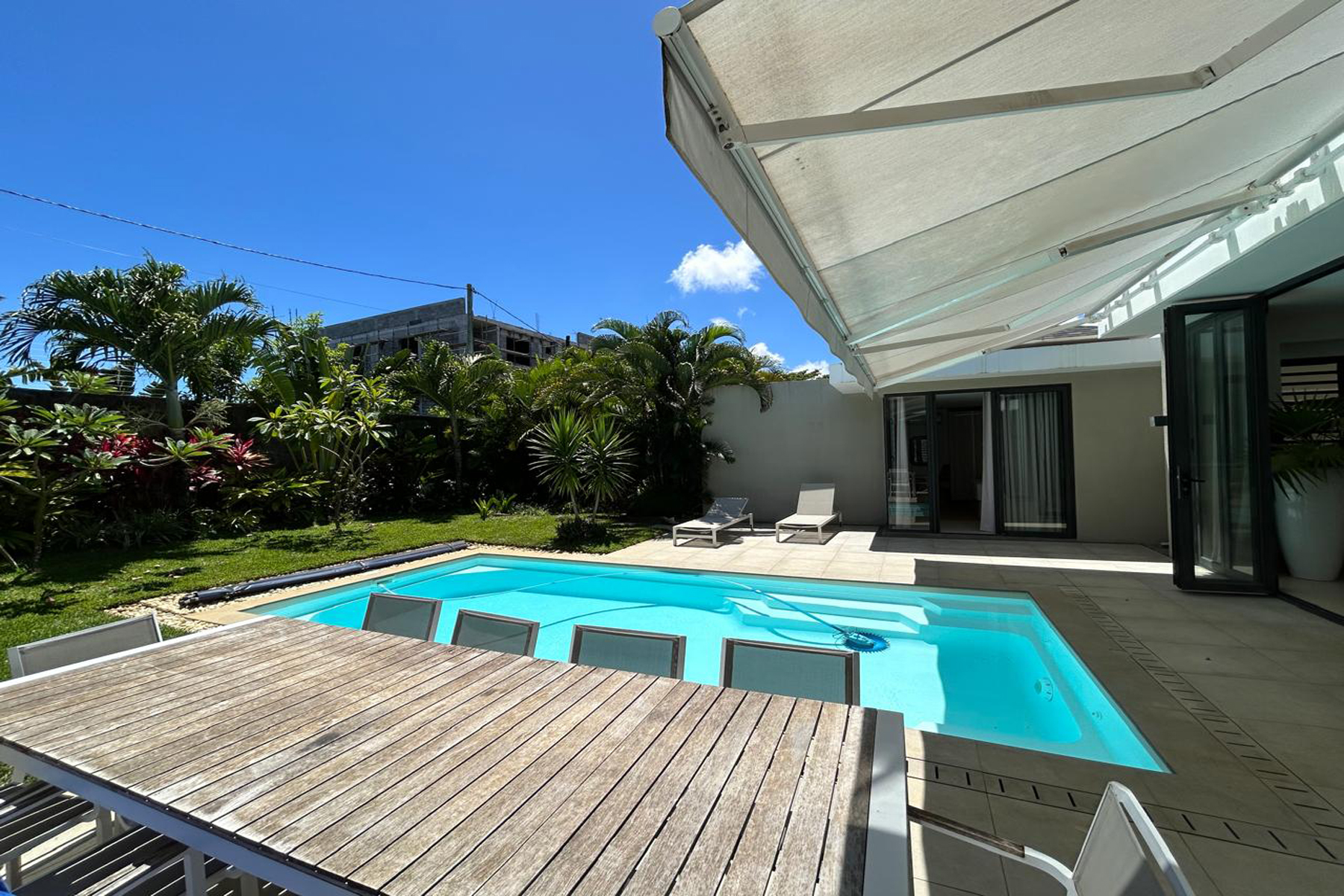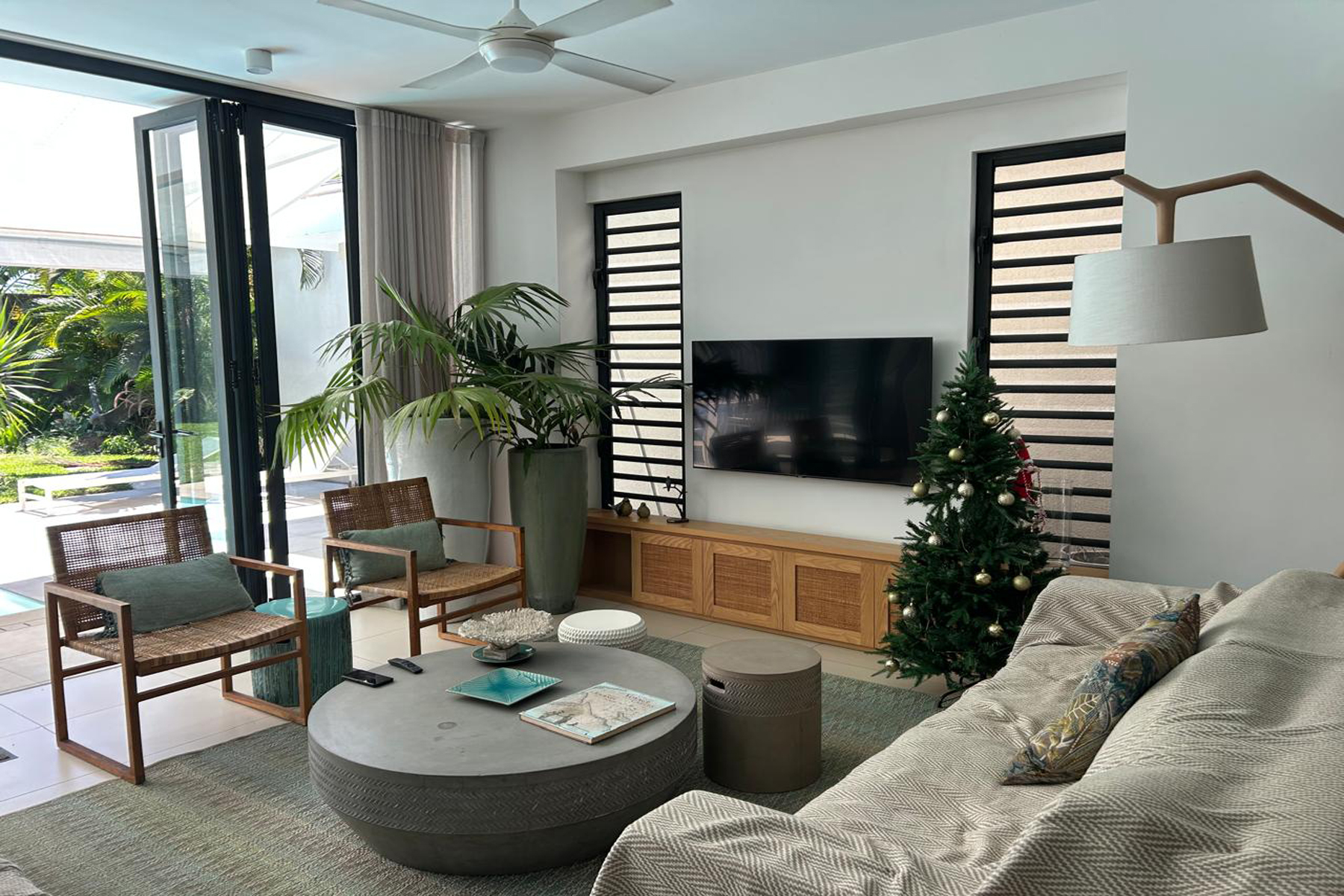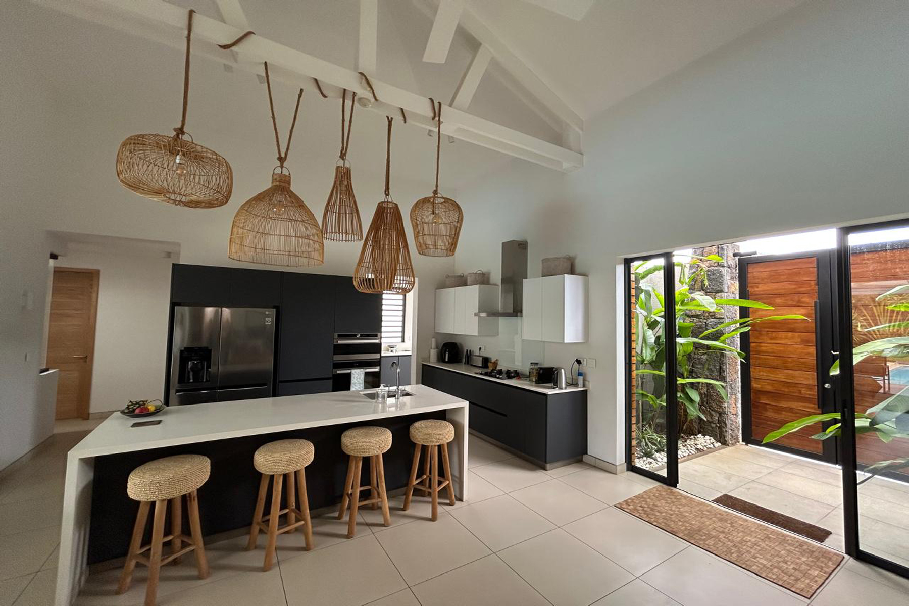 Inside, the villa offers a large open-plan living area and a fully equipped kitchen, a designer space opening on the exterior greenery, and maximising comfort for everyday living and easy entertaining.