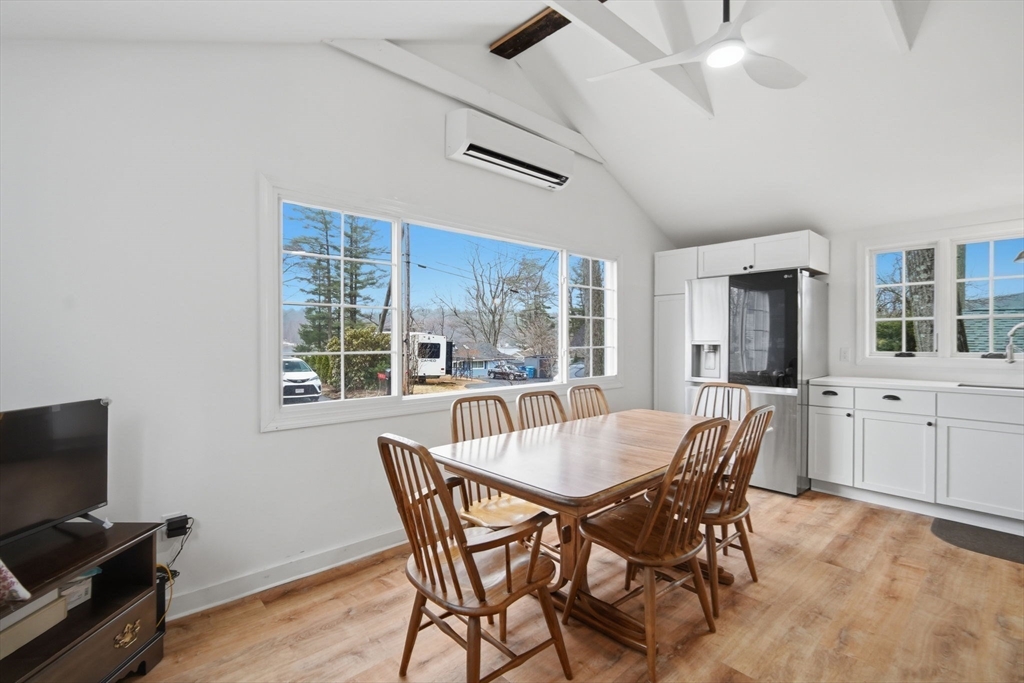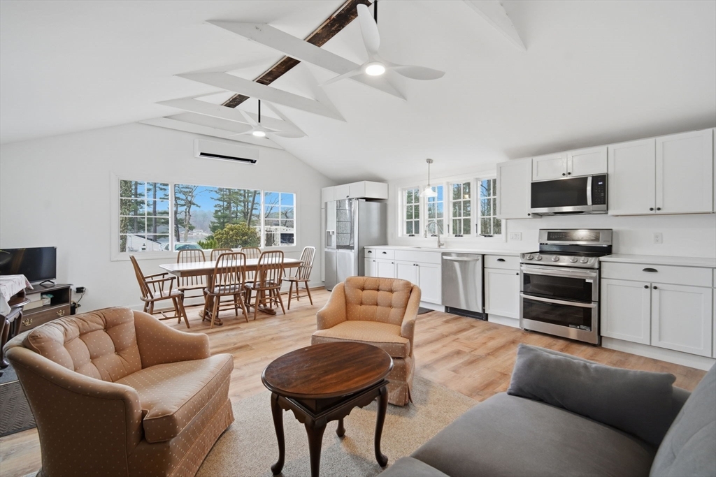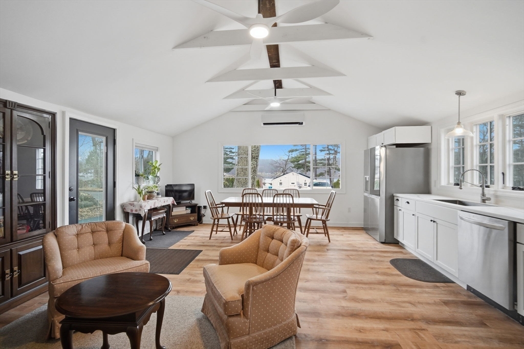 Completely renovated and move in ready, this inviting year round ranch offers lake views and a relaxed lifestyle just moments from Sherman Lake. The bright open floor plan features vaulted ceilings, abundant natural light, and a seamless flow designed for easy living and entertaining. The kitchen shines with quartz countertops, upgraded soft close cabinetry and drawers, and stainless steel appliances. Luxury vinyl plank flooring runs throughout. Two comfortable bedrooms and two beautifully updated baths provide flexible single level living. Energy efficient ductless mini split system offers heating and cooling. Enjoy your morning coffee with water views or unwind after a long day in this peaceful setting that feels like a getaway all year long. Convenient to local amenities, trails, and recreation and located within the Tantasqua Regional School District. First showings start at open house on Saturday, April 11th starting at 12pm