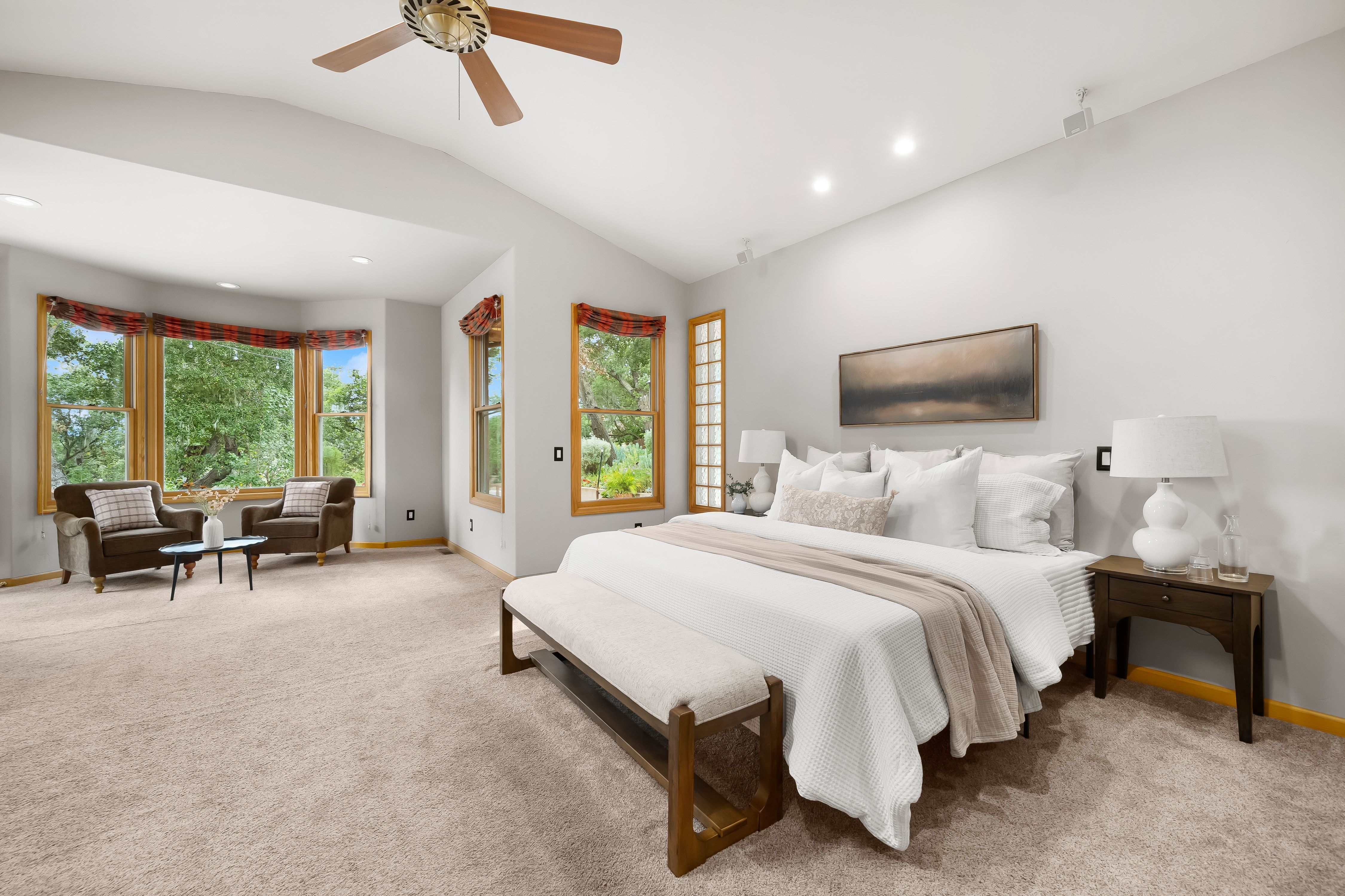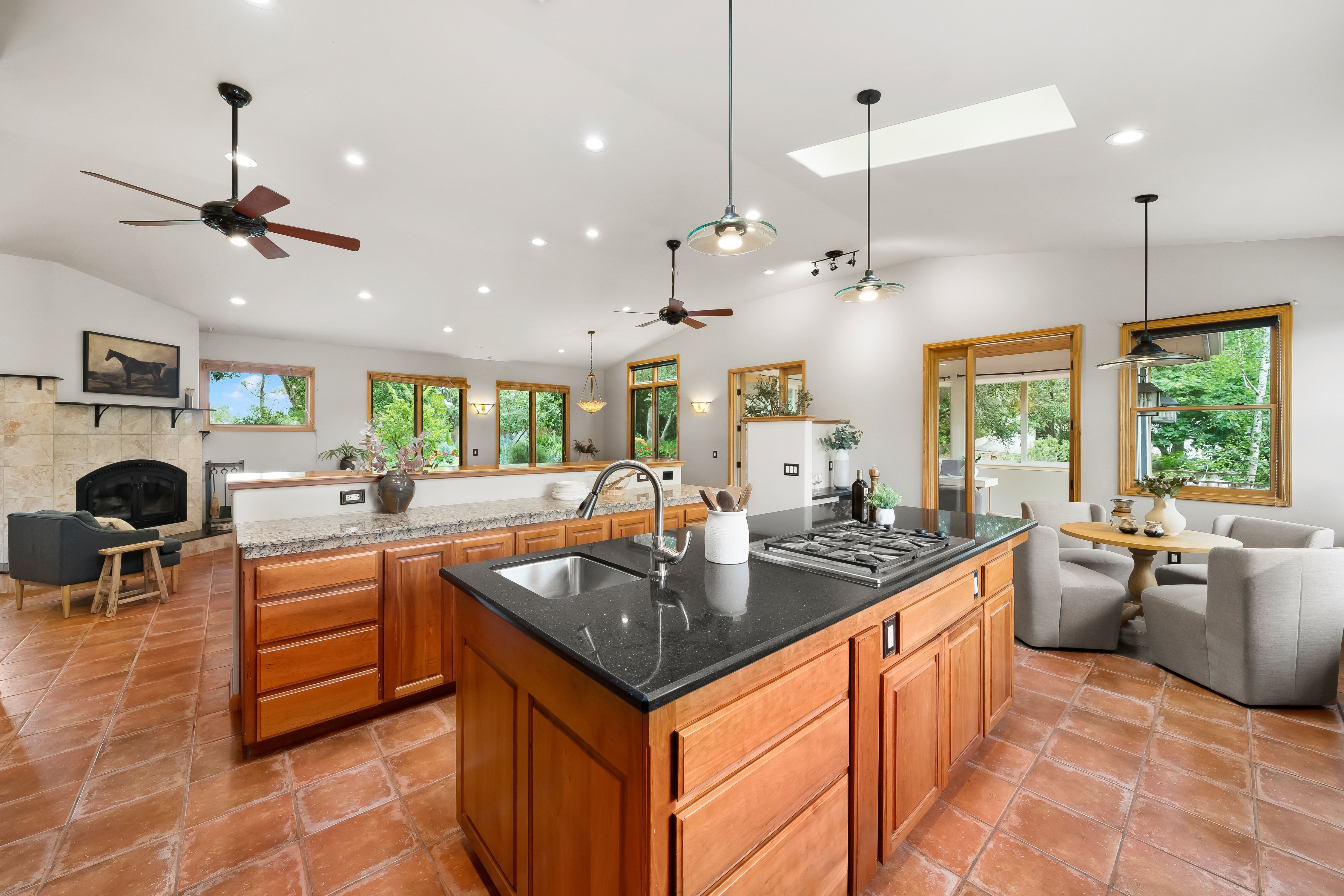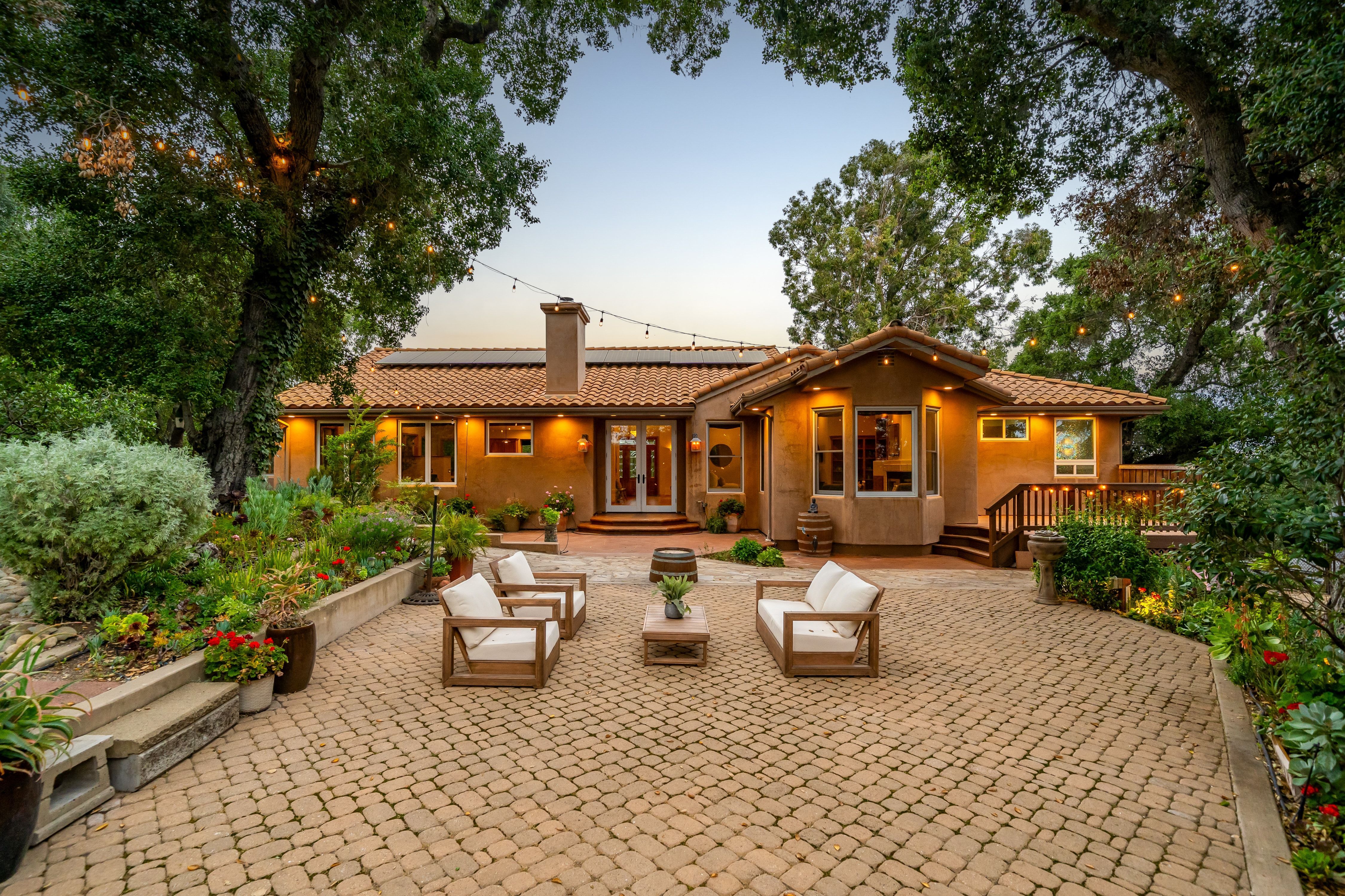 Beautifully maintained Mediterranean-style residence in Northwest Atascadero, offering exceptional privacy, space, and picturesque hill views. Built in 2001, this 3-bedroom, 2.5-bathroom home, plus a versatile office or flex room, spans approximately 2,957± square feet on nearly a half-acre parcel.The main living area is thoughtfully arranged on a single level, offering the ease and comfort of single-level living once inside, with the home originally designed to accommodate a future elevator. Vaulted ceilings, Spanish tile flooring, and two fireplaces create a warm yet sophisticated ambiance, while the light-filled open living spaces flow effortlessly into a generously sized kitchen featuring abundant custom cabinetry and storage.The primary suite serves as a private retreat, complete with its own fireplace, dual walk-in closets, and a secluded deck overlooking the serene backyard setting. Two additional bedrooms and bathrooms provide comfortable accommodations for family or guests.Outdoor living is equally inviting, highlighted by mature oak trees, multiple view decks, and a spacious hardscaped patio ideal for entertaining or quiet relaxation. Additional amenities include owned solar, a newer HVAC system, updated appliances, ample storage throughout, and an attached two-car garage with built-in cabinetry and workspace.Ideally located just minutes from downtown Atascadero, Atascadero Lake Park, local trails, and schools, this property offers a rare combination of tranquility and convenience in one of the area’s most desirable settings.