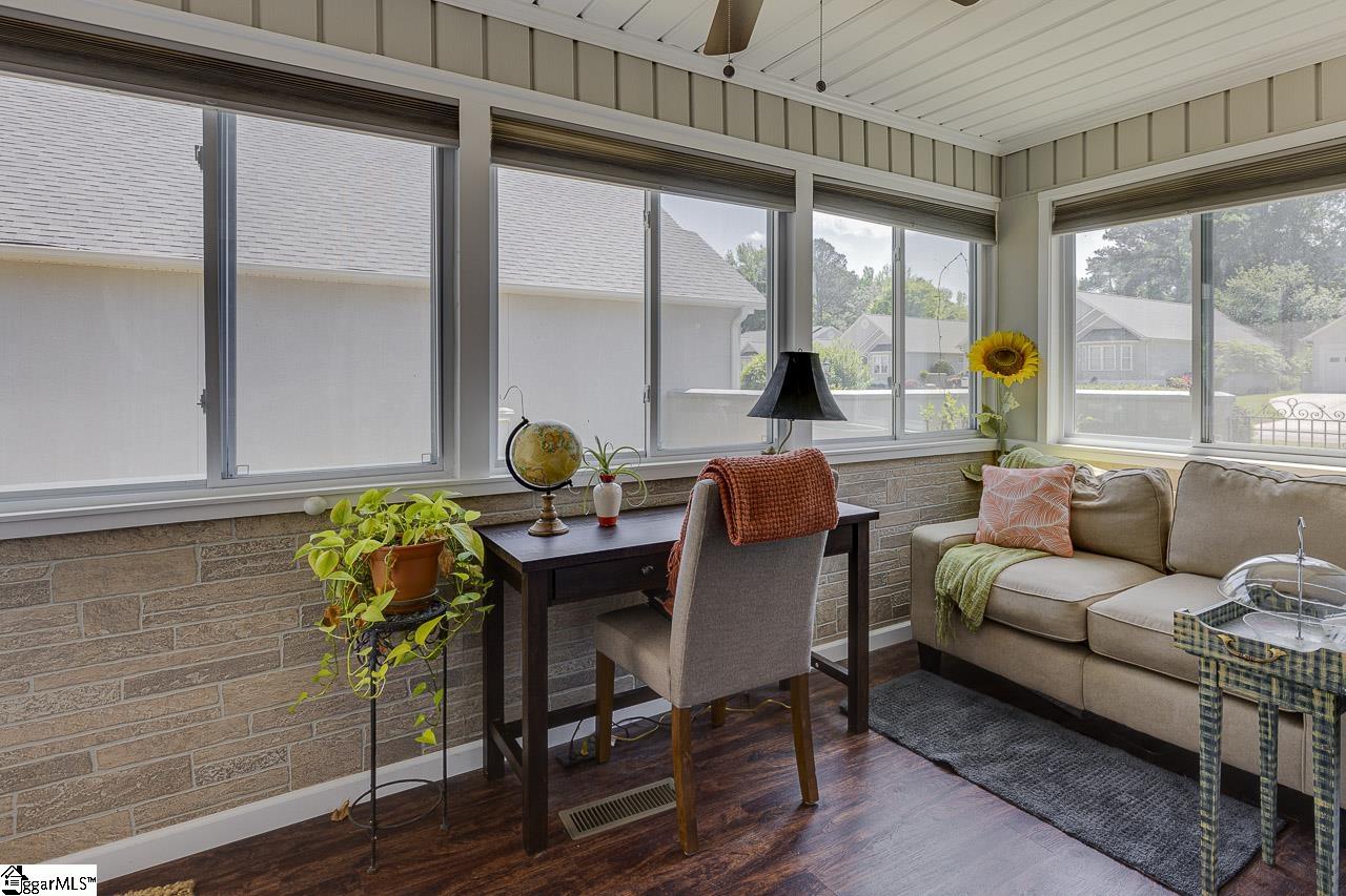 This home checks ALL the boxes for easy living! This 3 bedroom, 2 bathroom home is located in desirable Orchard Park - a quite one street cul-de-sac with level lots and front lawn maintenance included. This property is pristine and is move-in ready with a NEW 30 year architectural ROOF and 1.5 year old hot water heater. When you enter, you will appreciate the beautiful hardwood floors carried throughout the spacious living room with vaulted ceilings and a cozy gas fireplace open to the kitchen and eating area. The kitchen has NEW modern countertops, NEW modern white shaker cabinet fronts, new under-mount lighting, and new GE gas range (all not pictured). From the kitchen, is the owner's suite with tray ceilings, a walk-in closet, and spacious bathroom with double sinks, garden tub, and step in shower (new shower glass being installed). In the front of the house are two bedrooms, one with bay windows, and a full hallway bathroom. If you love a private backyard, you will fall in love with the sun room, which offers the perfect place to relax, deck with pergola, and flat, spacious fenced-in backyard. LOCATION!! This property is only 7 minutes to shopping on Clemson Blvd., 11 minutes to downtown Anderson or dining at Portman Marina on Lake Hartwell, 17 minutes from Boscobel Golf, and 23 minutes Clemson University.
