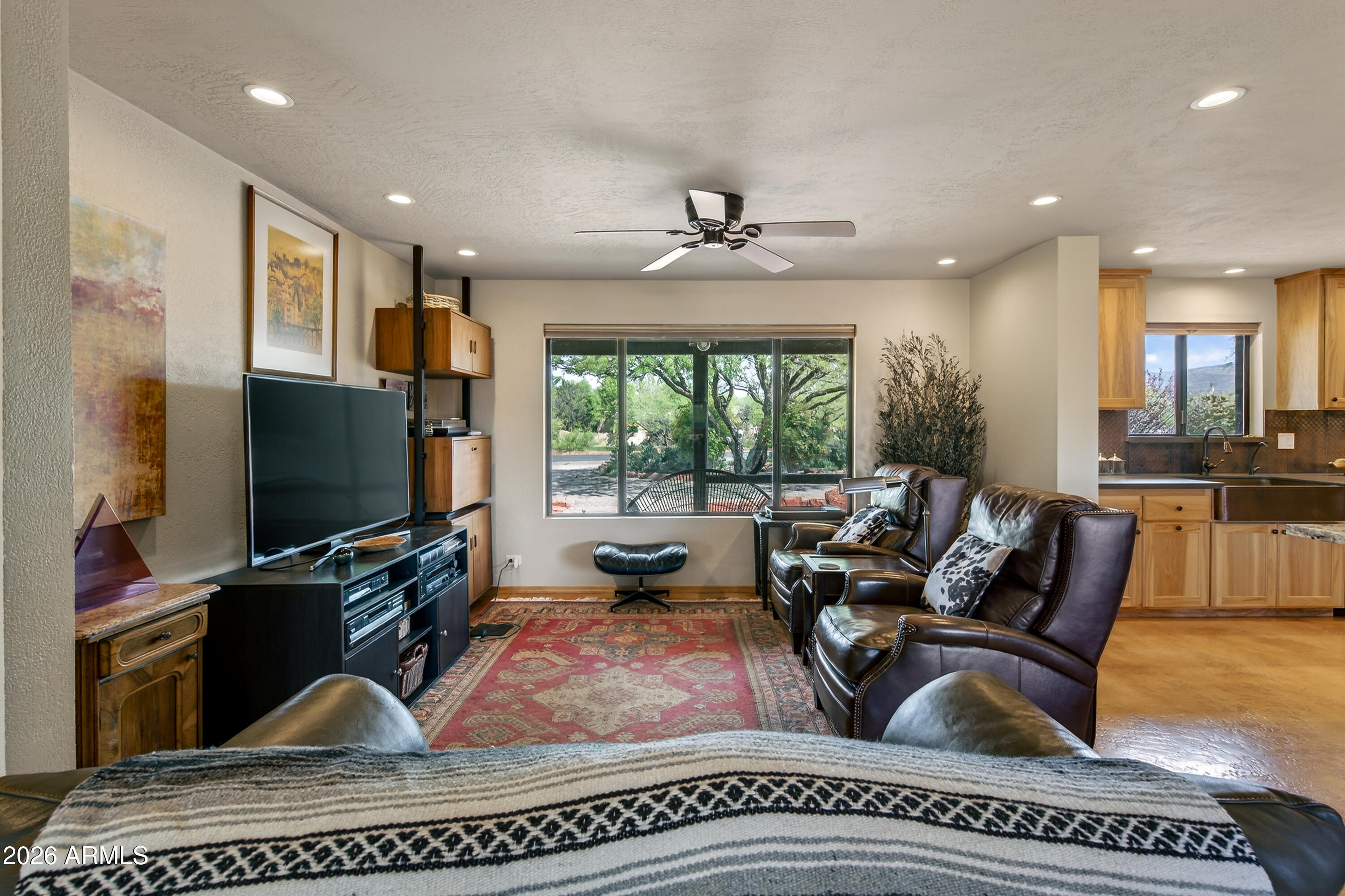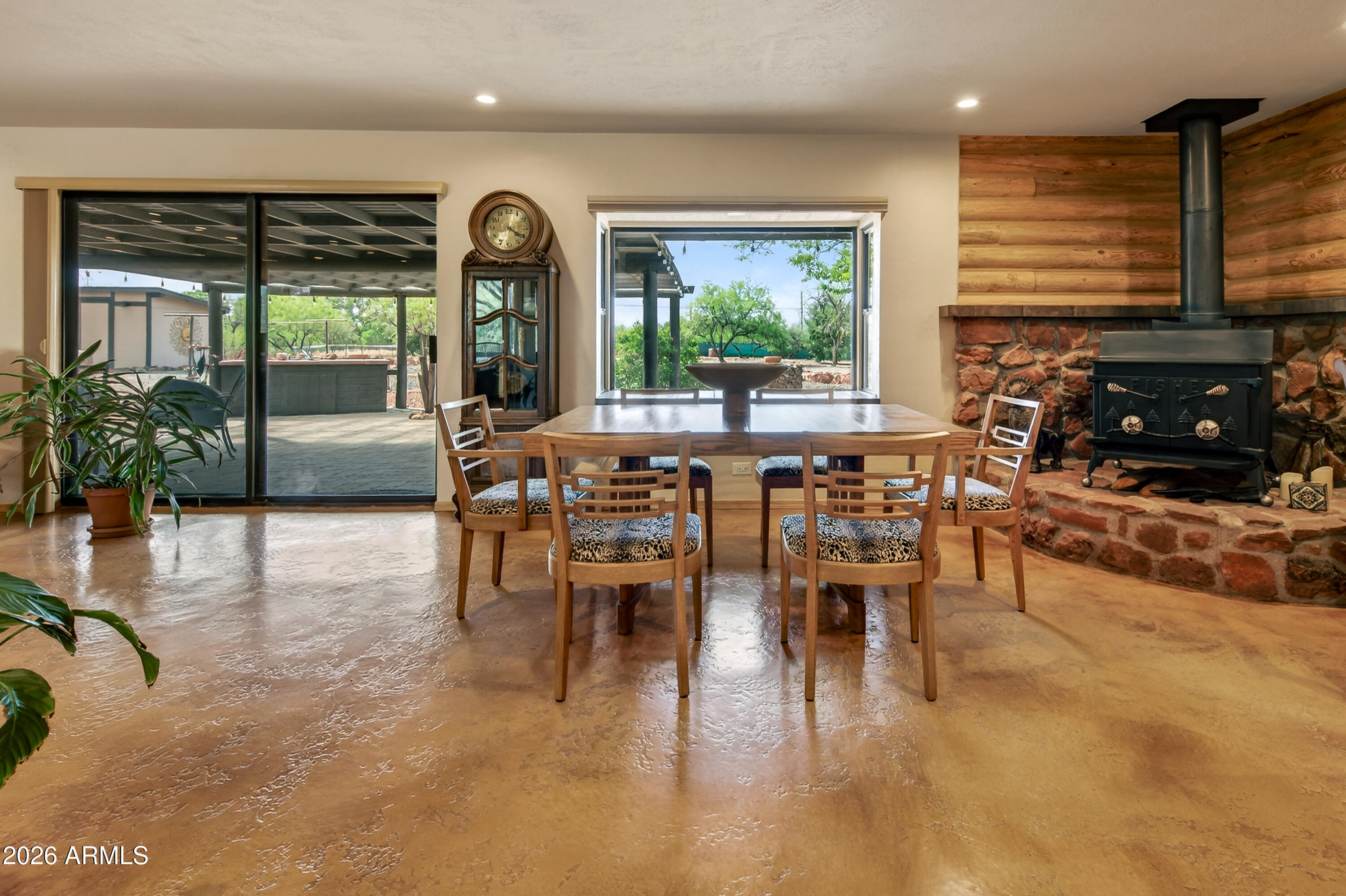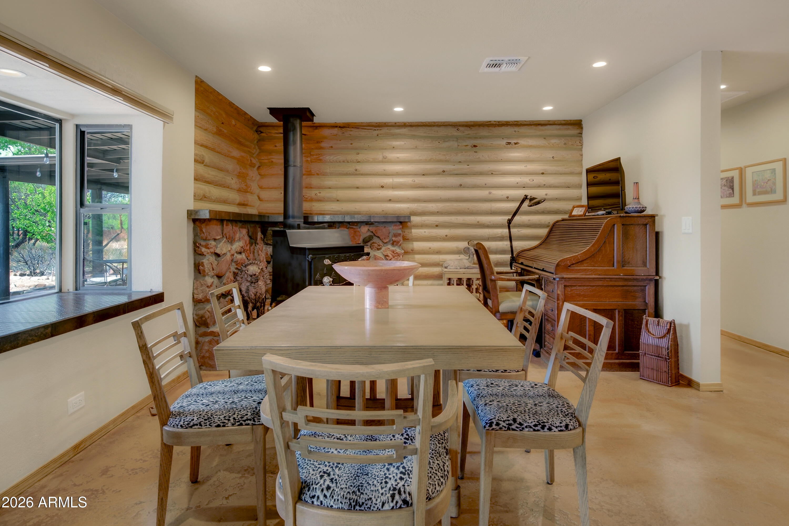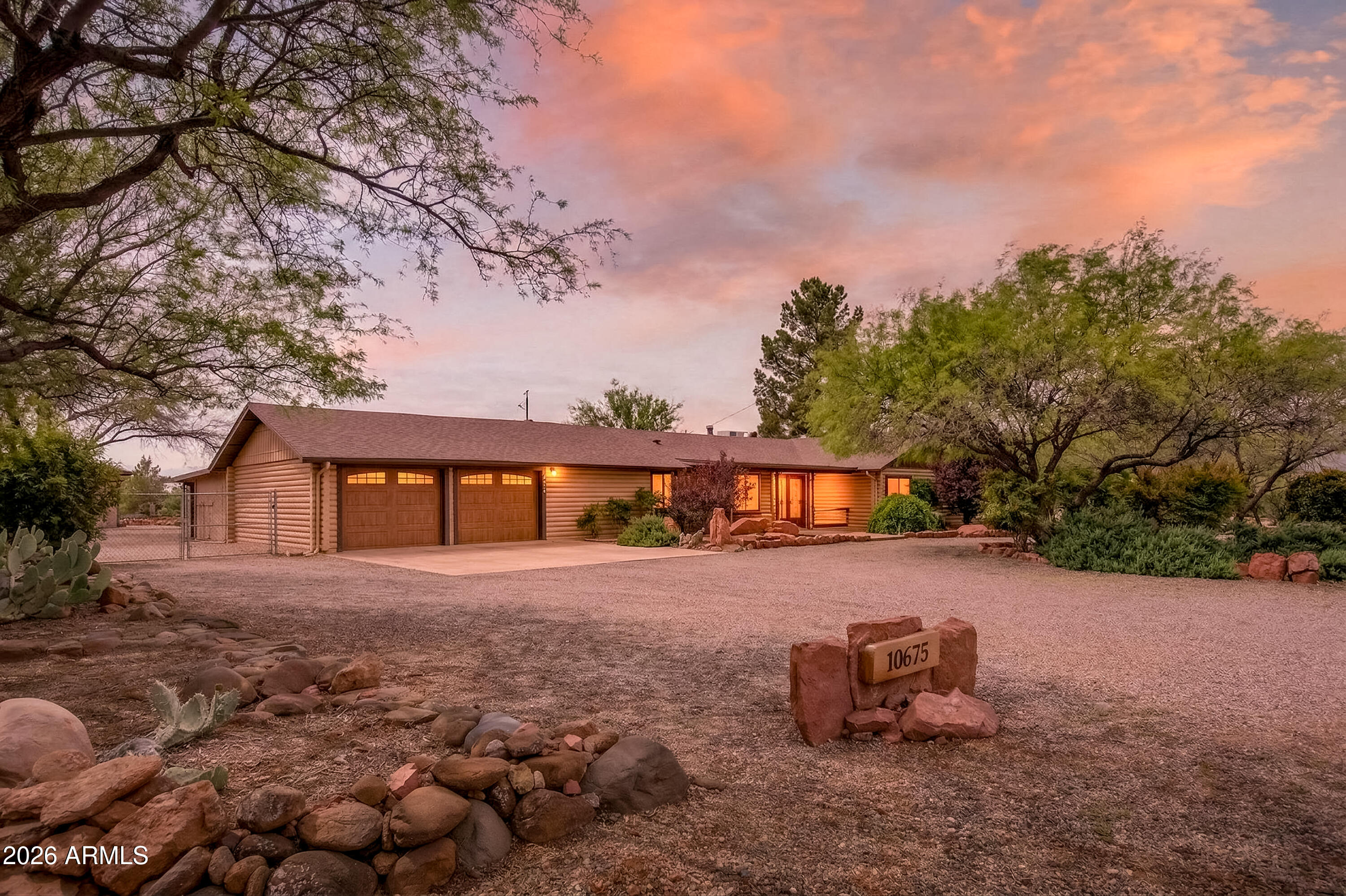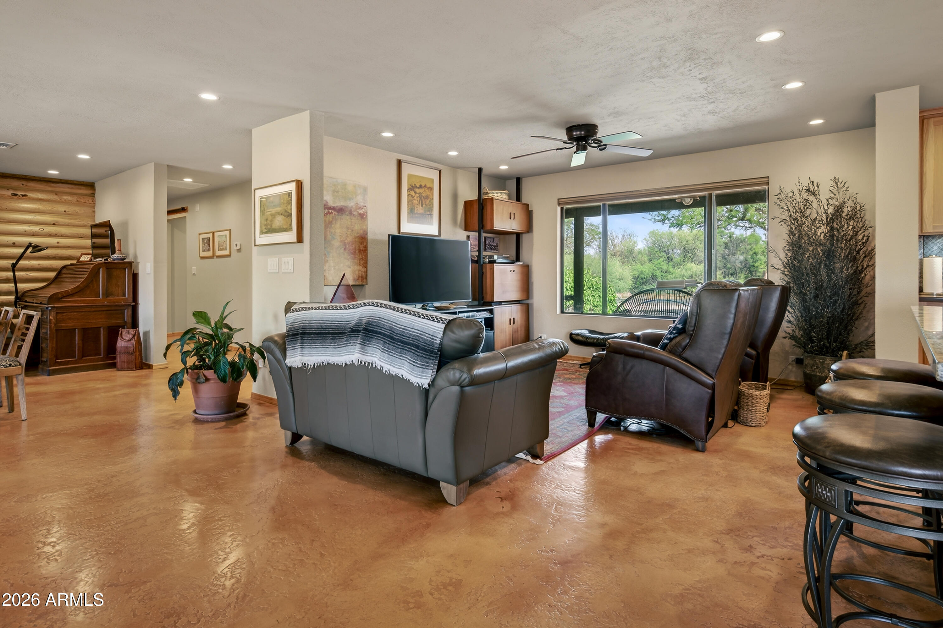 The charm you want. The upgrades you need! Set on a full acre in the peaceful landscape of Cornville, this beautifully renovated log home retreat offers a rare blend of rustic character, modern systems, and true lifestyle flexibility. Spanning 1,862 square feet, this 2-bedroom, 2.5-bath residence has undergone a comprehensive interior renovation, including new plumbing, electrical wiring, outlets, switches, and upgraded finishes throughout. The result is a seamless fusion of craftsmanship and comfort. Inside, you'll find concrete floors, knotty pine doors and trim, and thoughtfully designed living spaces enhanced by LED lighting with dimmers and a circulating hot water system. The kitchen is both functional and visually striking, featuring stone countertops, custom hickory cabinets, a large copper sink, and a statement piece, copper hood over the cooktop. The primary suite offers a spa-like retreat with a soaking tub. A versatile 374 sq ft bonus room (17' x 22') provides ideal space for a studio, office, or guest overflow. Outdoor living is equally compelling, with a large covered brick-paver patio, an outdoor island with sink, and an enclosed outdoor shower--perfect for enjoying Arizona's year-round climate. The property is equipped for both convenience and independence with a private well and septic, all-electric systems, and RV hookups for electric and septic. Additional highlights include: " New roof (2025) " New garage doors and openers (2025) " HVAC system replaced in 2018 " 3-zone perimeter irrigation system " Fully fenced rear acreage with unique gabion landscape features " Storage shed with electricity and built-in shelving " Circular driveway and spacious 2-car garage This is a rare opportunity to own a move-in ready log home with acreage, infrastructure, and thoughtful upgrades already in place--ideal as a full-time residence, second home, or investment property.