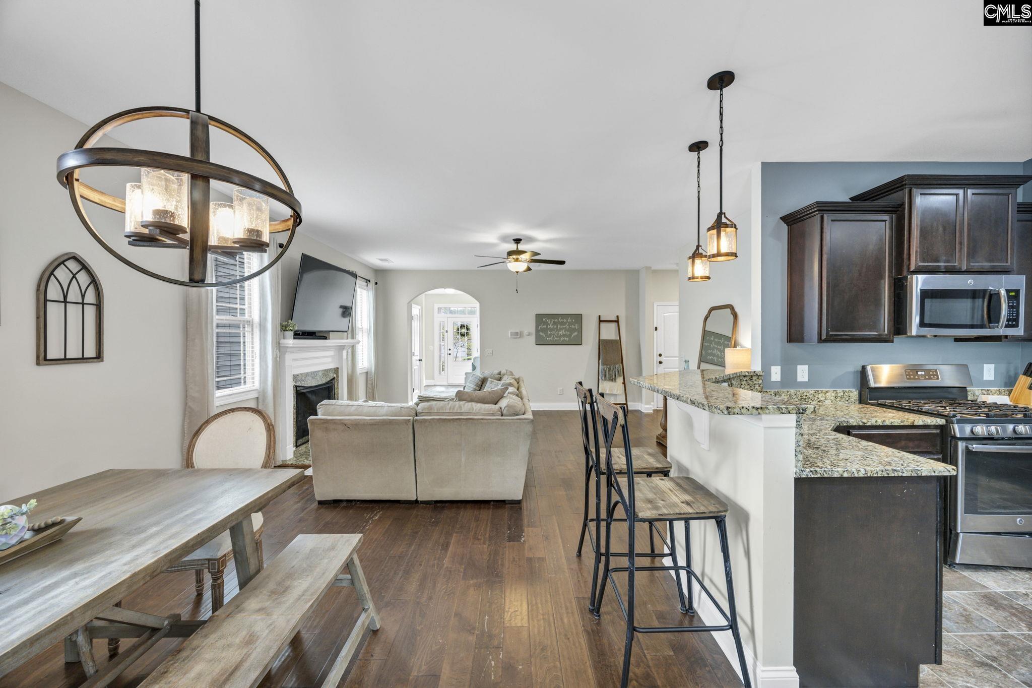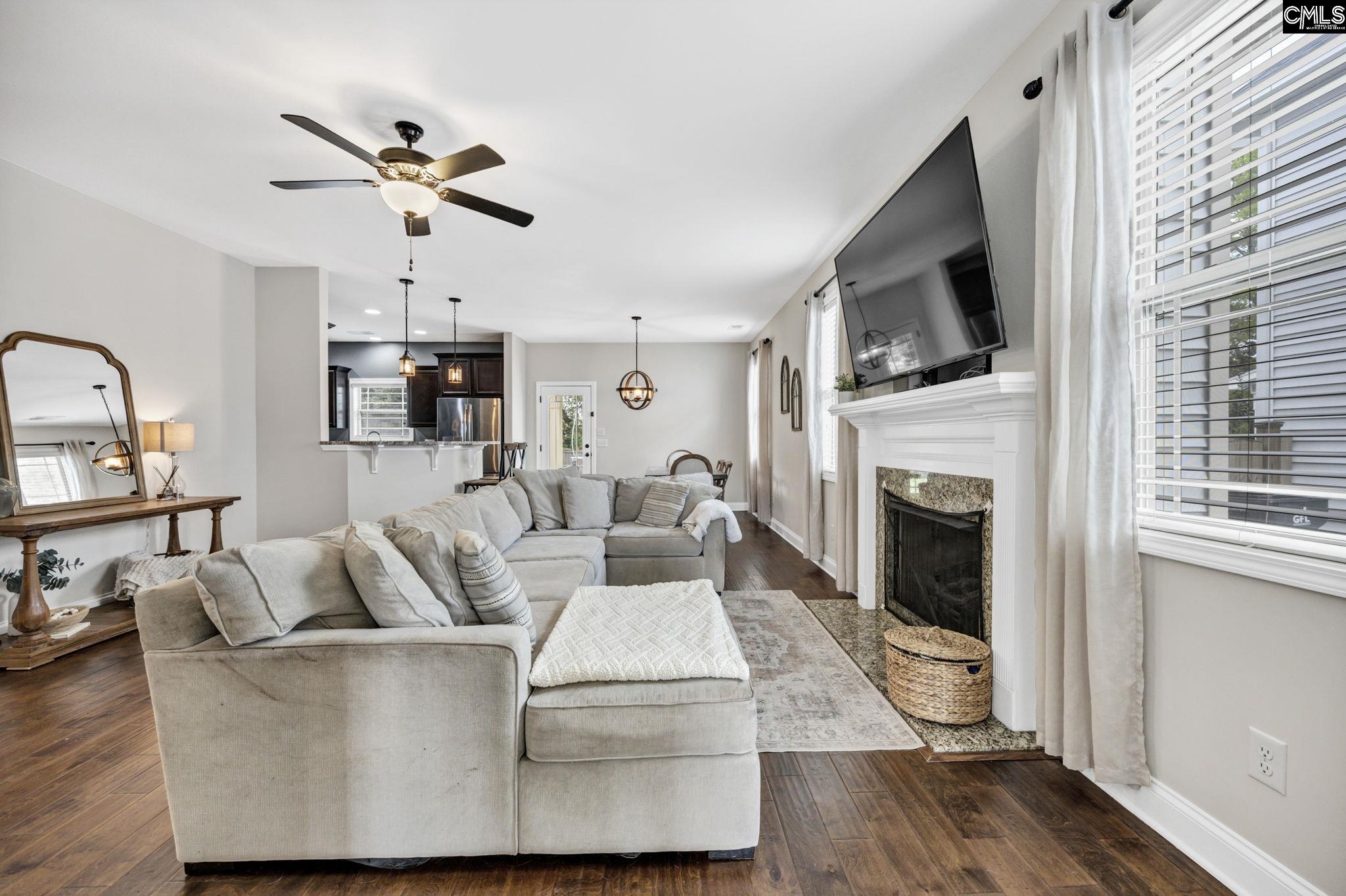 Perfectly positioned in one of Lexington's most desirable areas, just minutes from Lake Murray and zoned for Lexington One schools, this home offers four bedrooms, two-and-a-half bathrooms, and a floor plan designed for effortless everyday living. Upon entry, you're welcomed by engineered hardwood floors, a cozy gas fireplace in the living area, a charming breakfast nook, and a convenient eat-in bar. The kitchen features granite countertops and a spacious walk-in pantry. Upstairs, hardwood steps and elegant iron rod detailing lead to four well-appointed bedrooms and a walk-in laundry room. The primary suite is generously sized, complete with tray ceilings, a walk-in closet, and private access to an upstairs balcony. Outside, enjoy a fully fenced backyard and a covered porch - perfect for relaxing or entertaining. What truly sets this home apart is its location within a vibrant community featuring sidewalks and direct proximity to Lexington High School. Disclaimer: CMLS has not reviewed and, therefore, does not endorse vendors who may appear in listings.