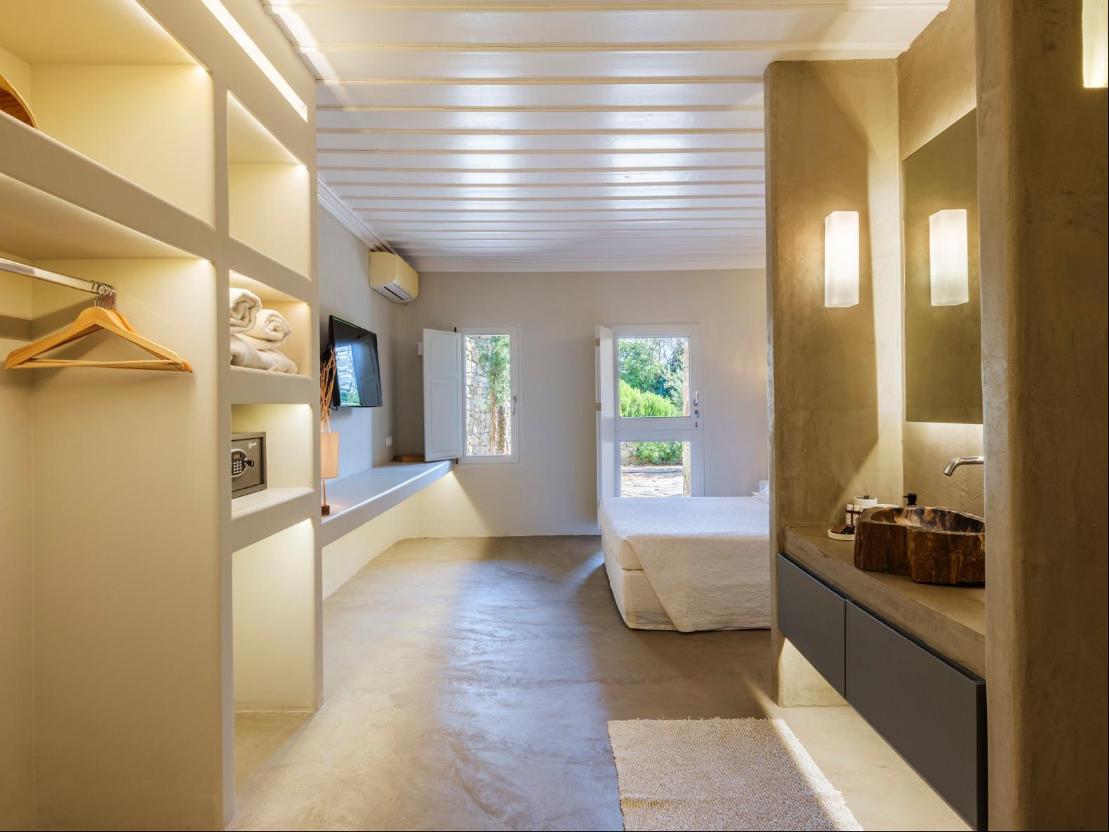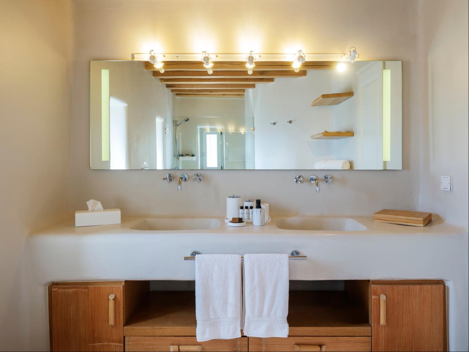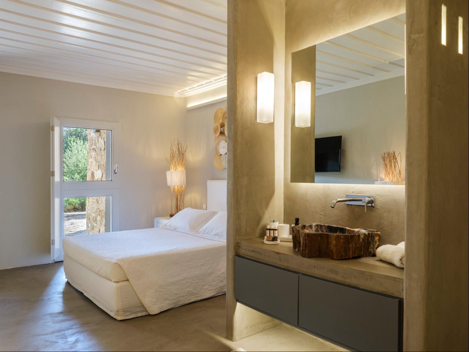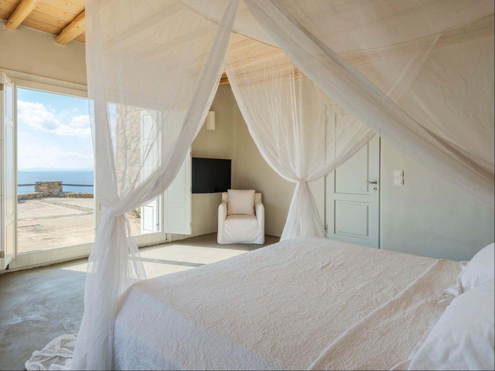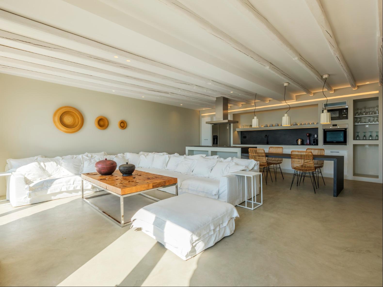 Exhale stress and soak in panoramic views from one of the ten luxurious bedrooms in this exceptional hillside residence. Nestled just minutes from Mykonos Town, this top-tier property features a huge infinity pool, perfect for moments of leisure and relaxation. Unwind while watching boats sail across the Aegean at sunset, all within the complete privacy this exclusive retreat provides, with the convenience of being close to Mykonos Town. The villa can comfortably accommodate 20 guests and includes the Main Villa and the Guest House. It features 7 Double Bedrooms in the main structure, all featuring sea views and en-suite bathrooms. It also features a Guest House, with private independent entrance, offering 2 double bedrooms. You can enjoy breathtaking sunset views from the infinity pool and the multiple outdoors lounging areas of the villa. Take advantage of the multiple modern features of this truly unique property, like the private gym and the home cinema and make your holidays memorable!