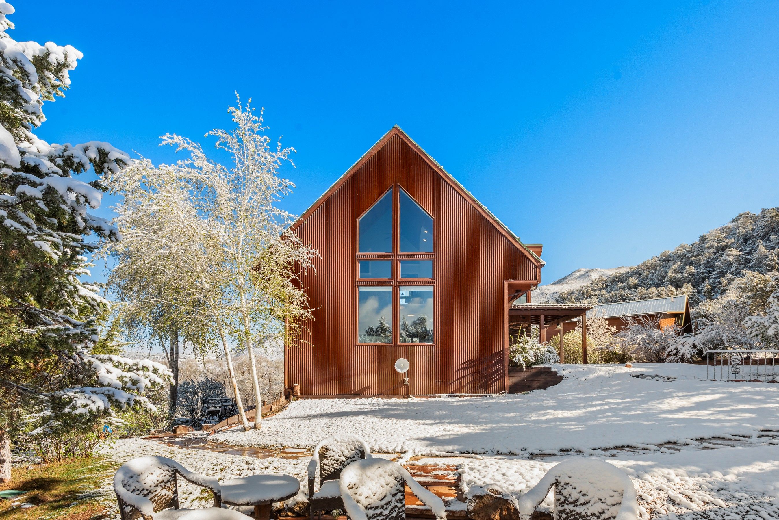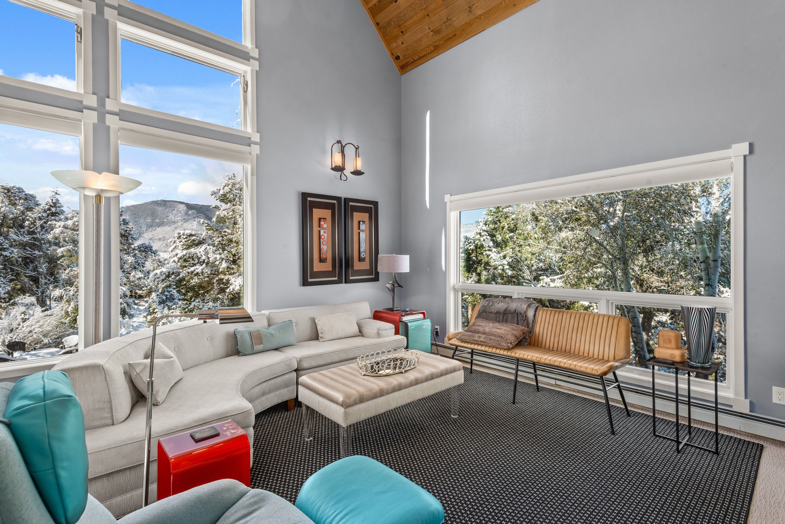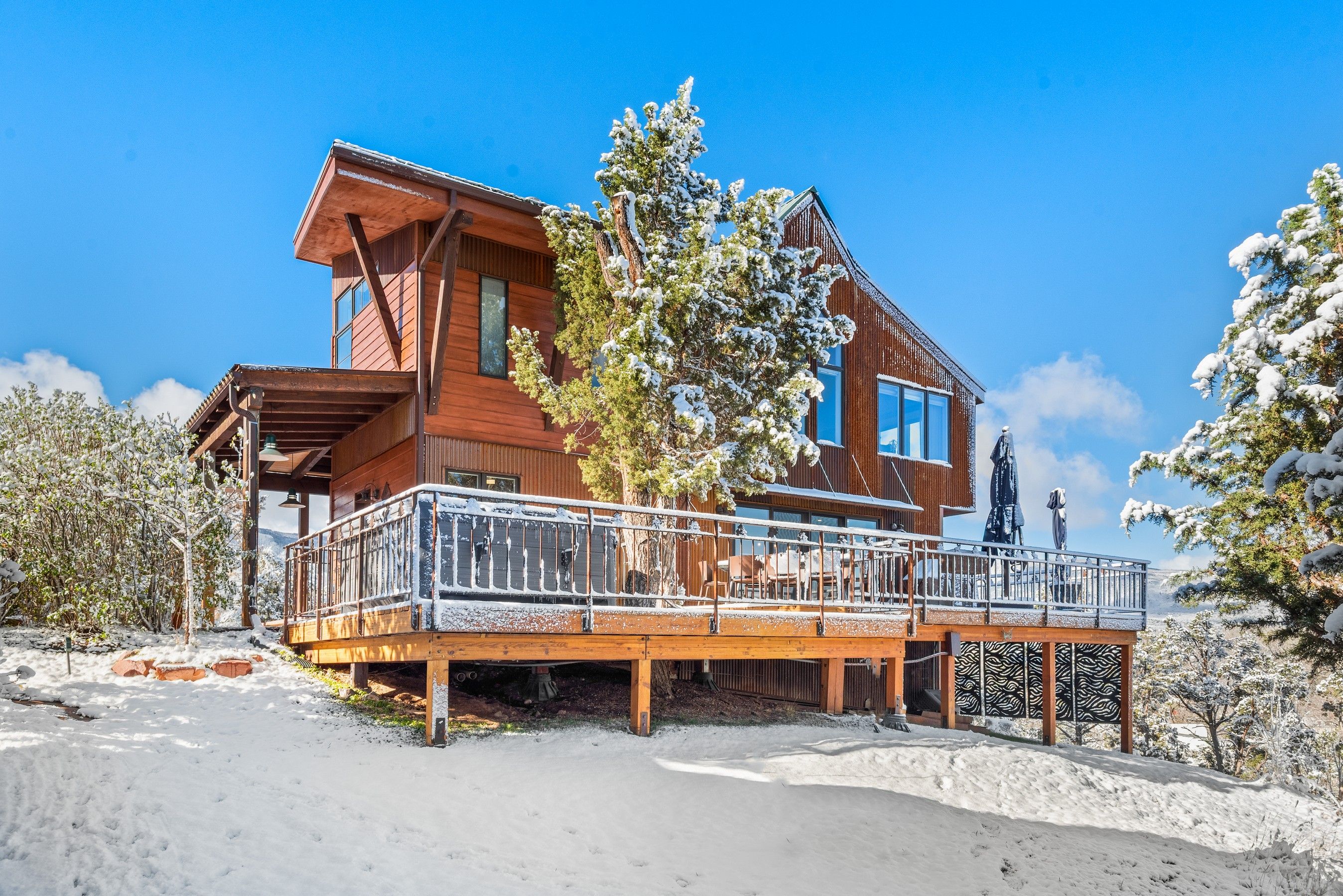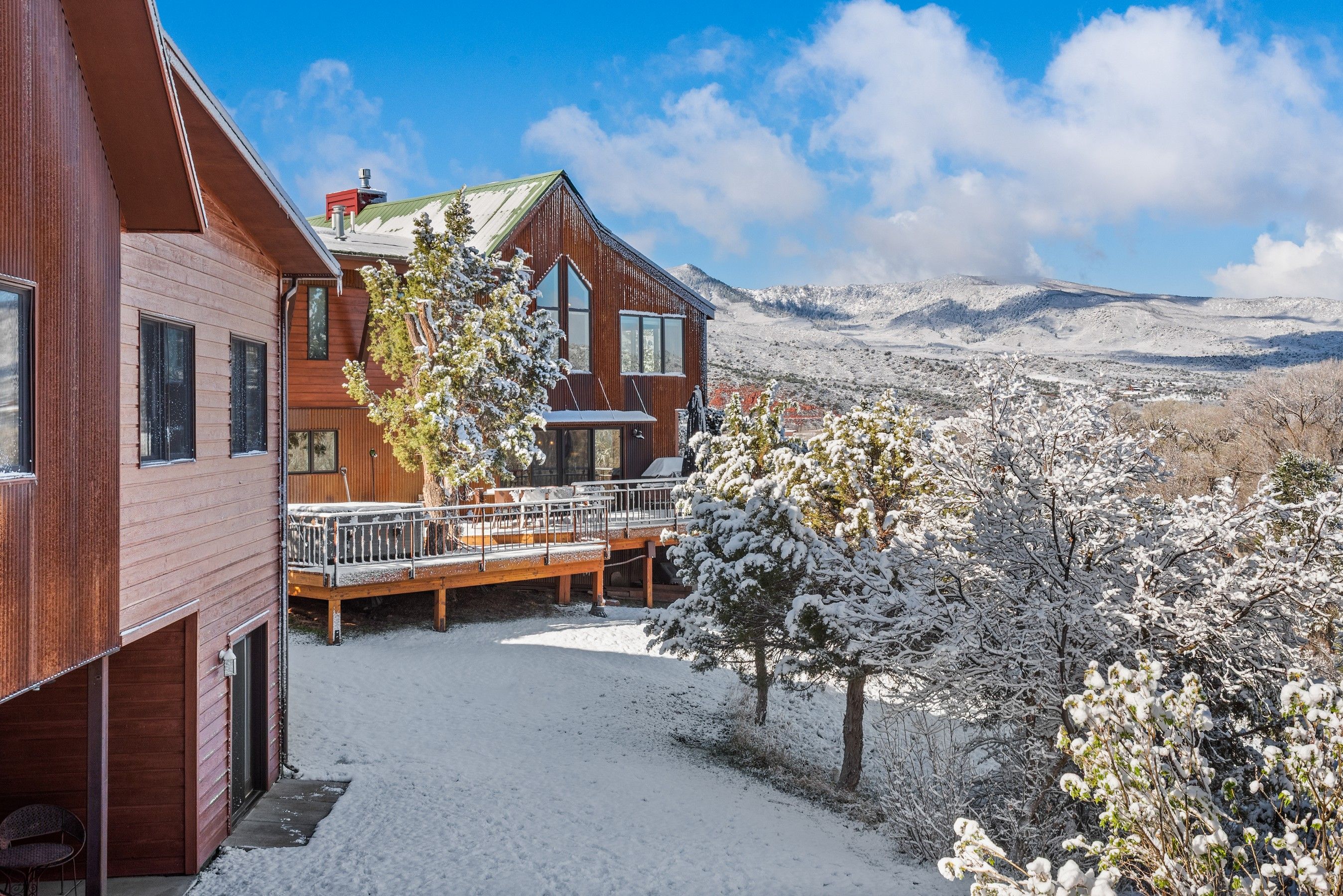 Experience the ultimate blend of privacy and proximity with this exceptional 2.3-acre estate. Nestled in a private setting with breathtaking mountain views, this home nevertheless offers just a 10-minute walk to bus stops, Whole Foods, and the amenities of Willits, including TACAW (The Arts Center at Willits). Access to the ever-popular Rio Grand trail is an easy walk or bike ride. The masterfully-remodeled interior boasts high-end finishes throughout. Expansive south-facing windows bathe the home in abundant sunlight while framing stunning views. Enjoy soaring ceilings and an open, airy floor plan, or move outside onto the expansive deck. Wander through beautifully landscaped gardens, replete with amenities such as a firepit, hot tub, and on-site water feature. A detached, oversized three-car garage ensures plenty of space for vehicles, gear, and mountain toys. It also contains a 2-bedroom apartment for overflow guests, or long-term rental income. In short, 255 Little Pinon Drive is the rarest of properties, offering the seclusion and luxury of a mountain retreat without sacrificing the convenience of town living.
